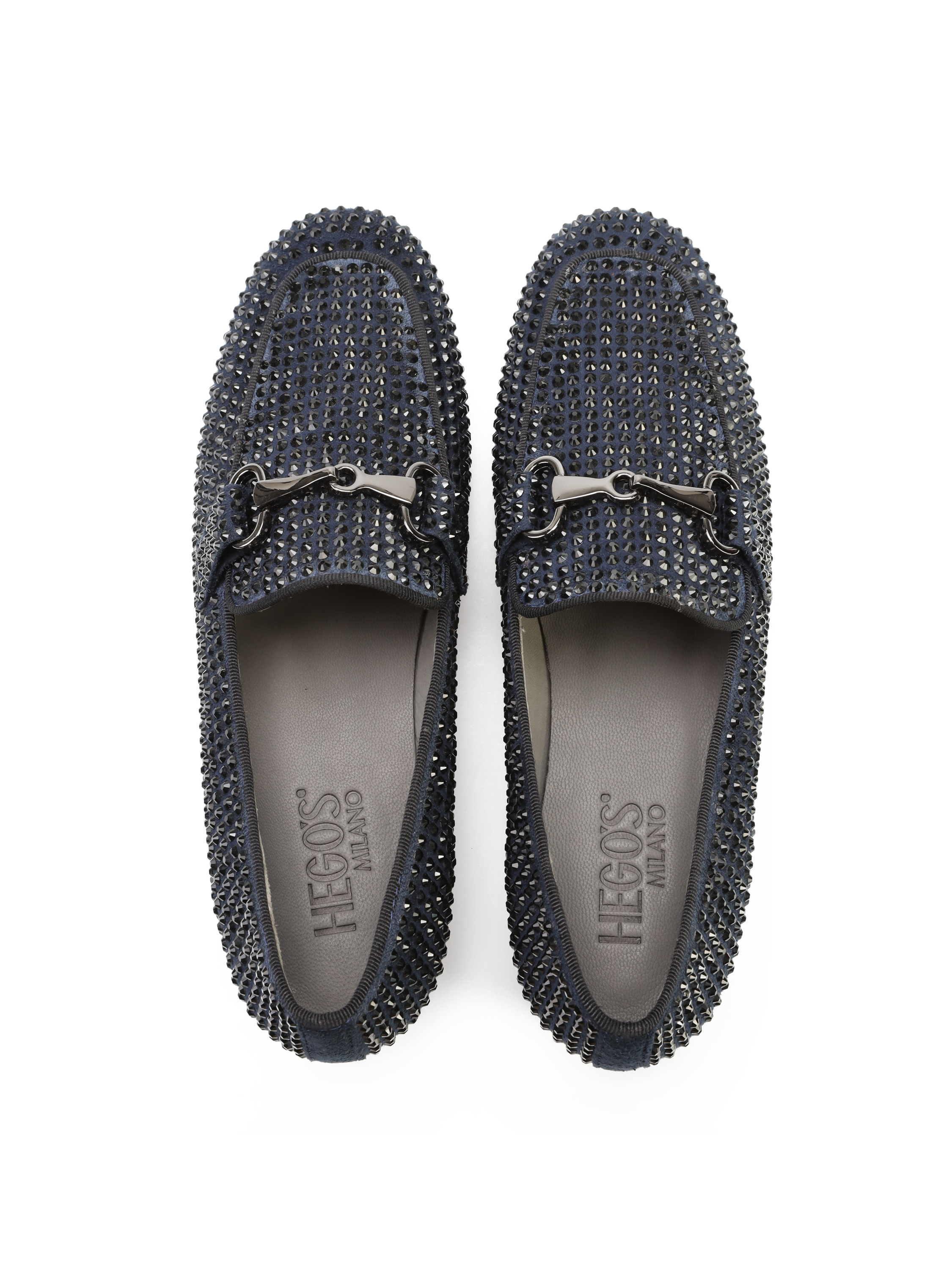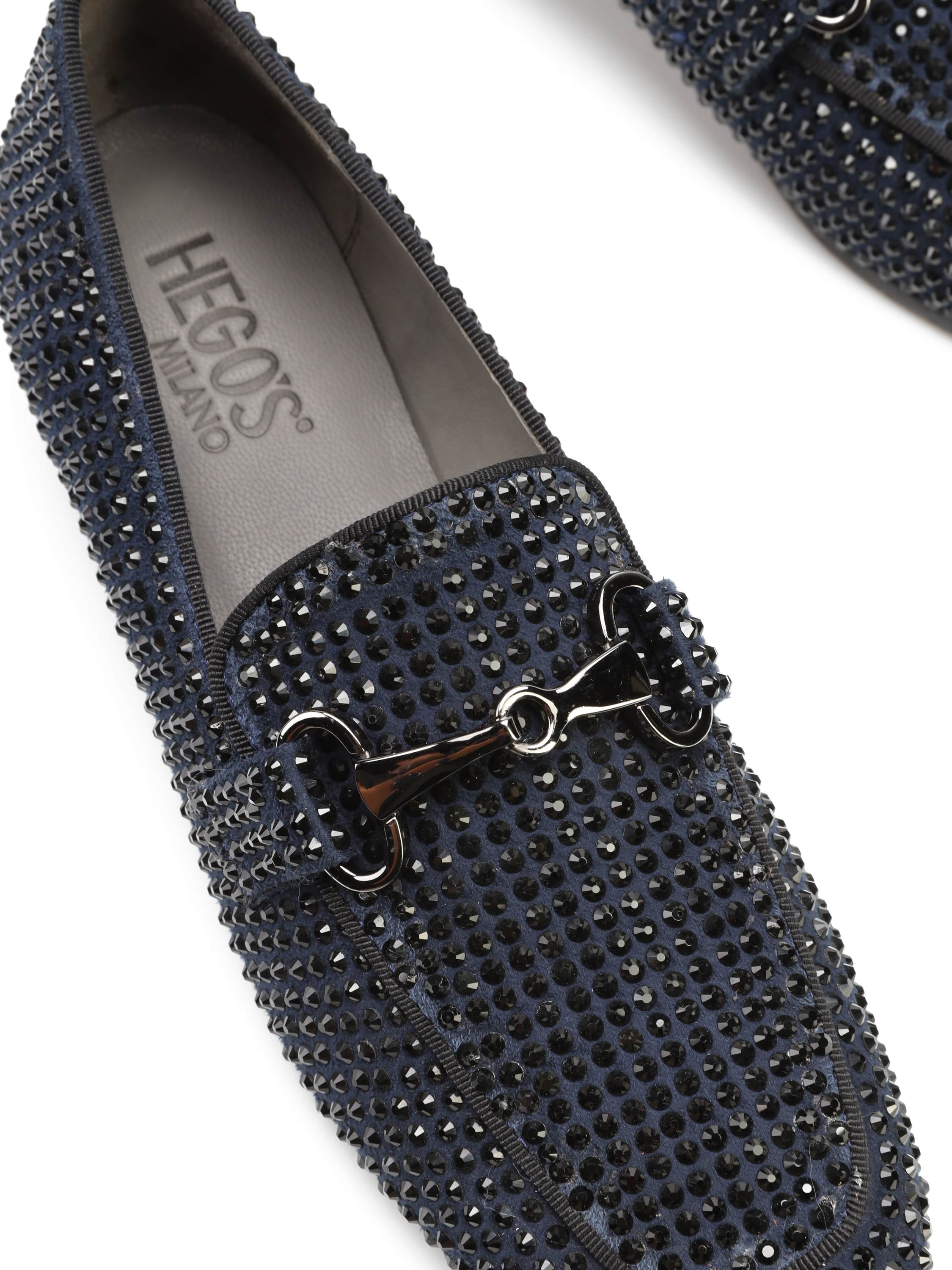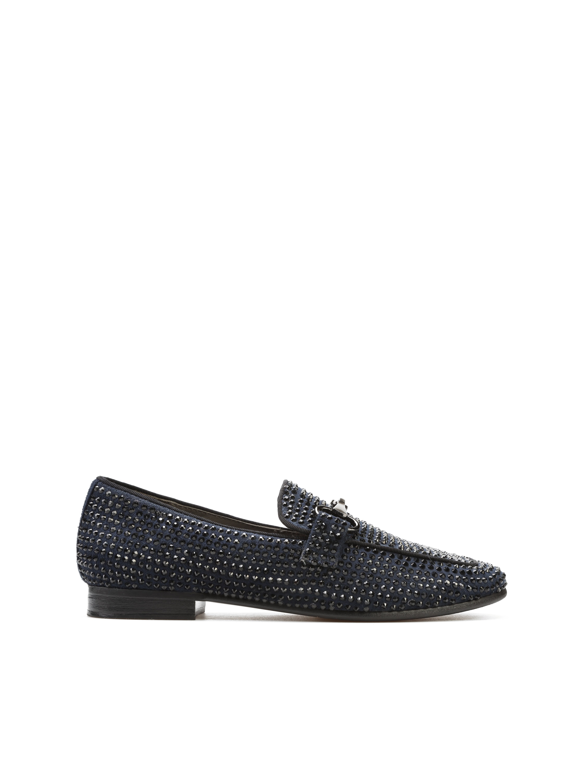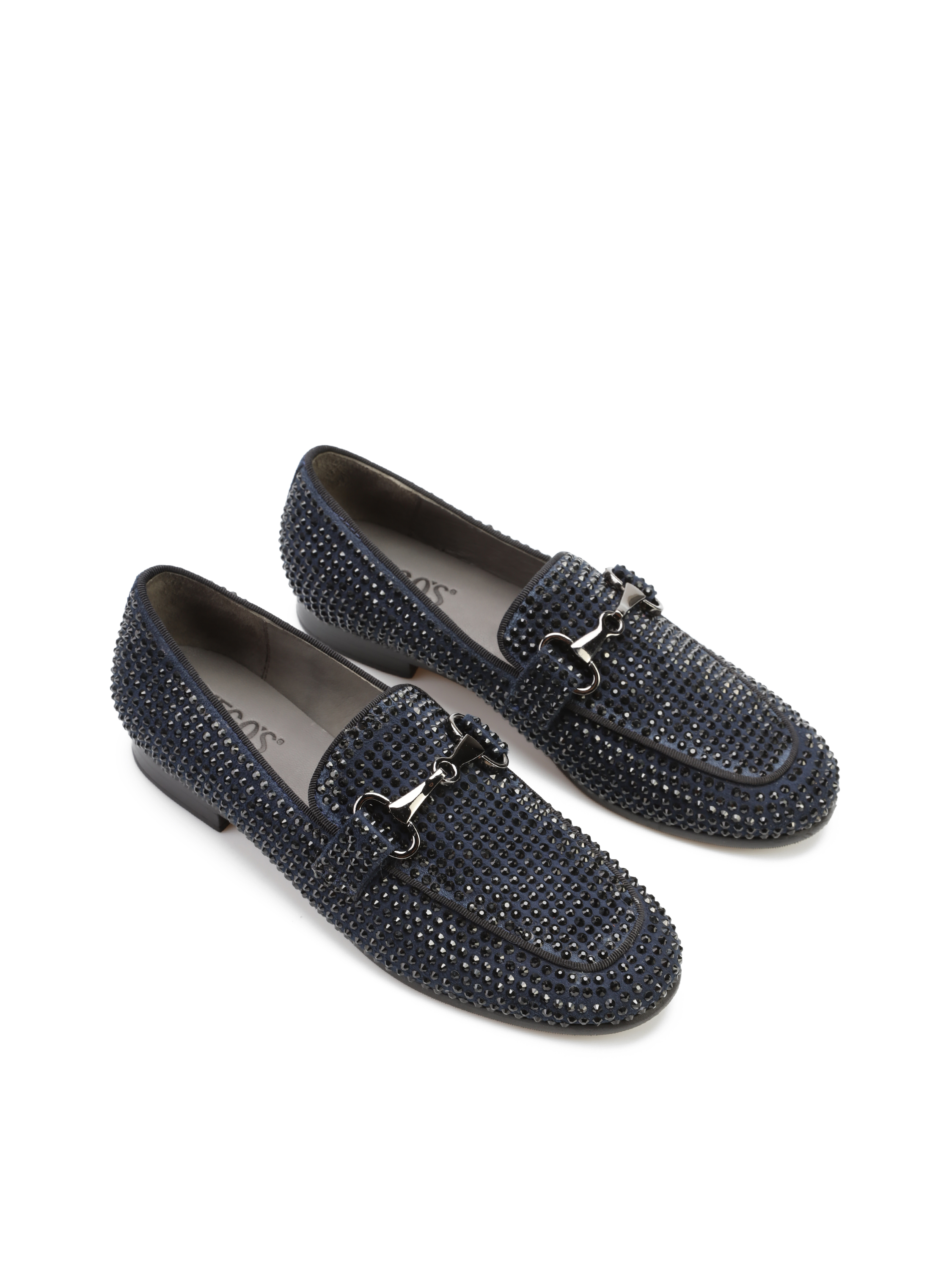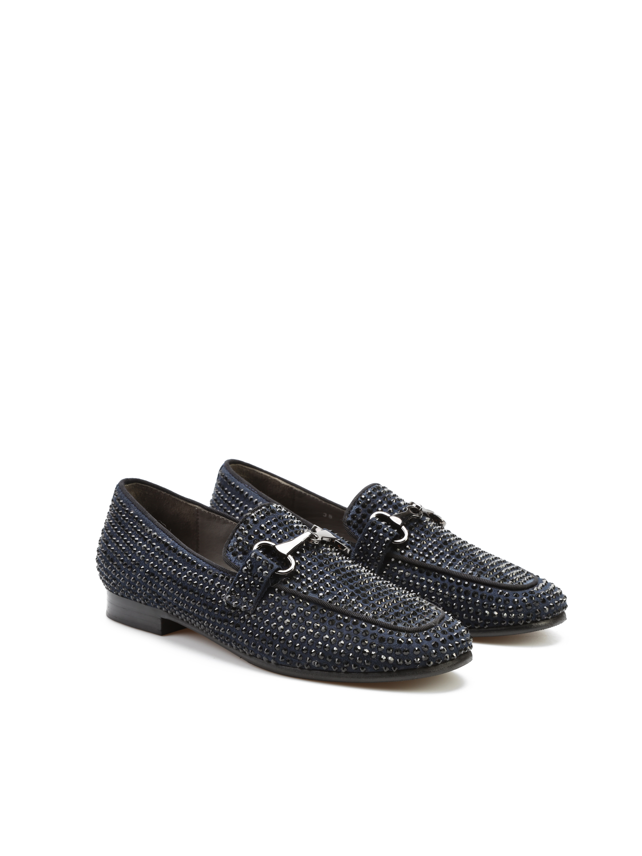 Mokasyny na płaskim obcasie to Trend, który nigdy nie wychodzi z mody. Włoskie mokasyny wykonane są z zamszowej skóry. Cholewka w granatowym kolorze ozdobiona została czarnymi dżetami i klamrą. Lekkie i wygodne, dopasują się do Twojej stopy.
