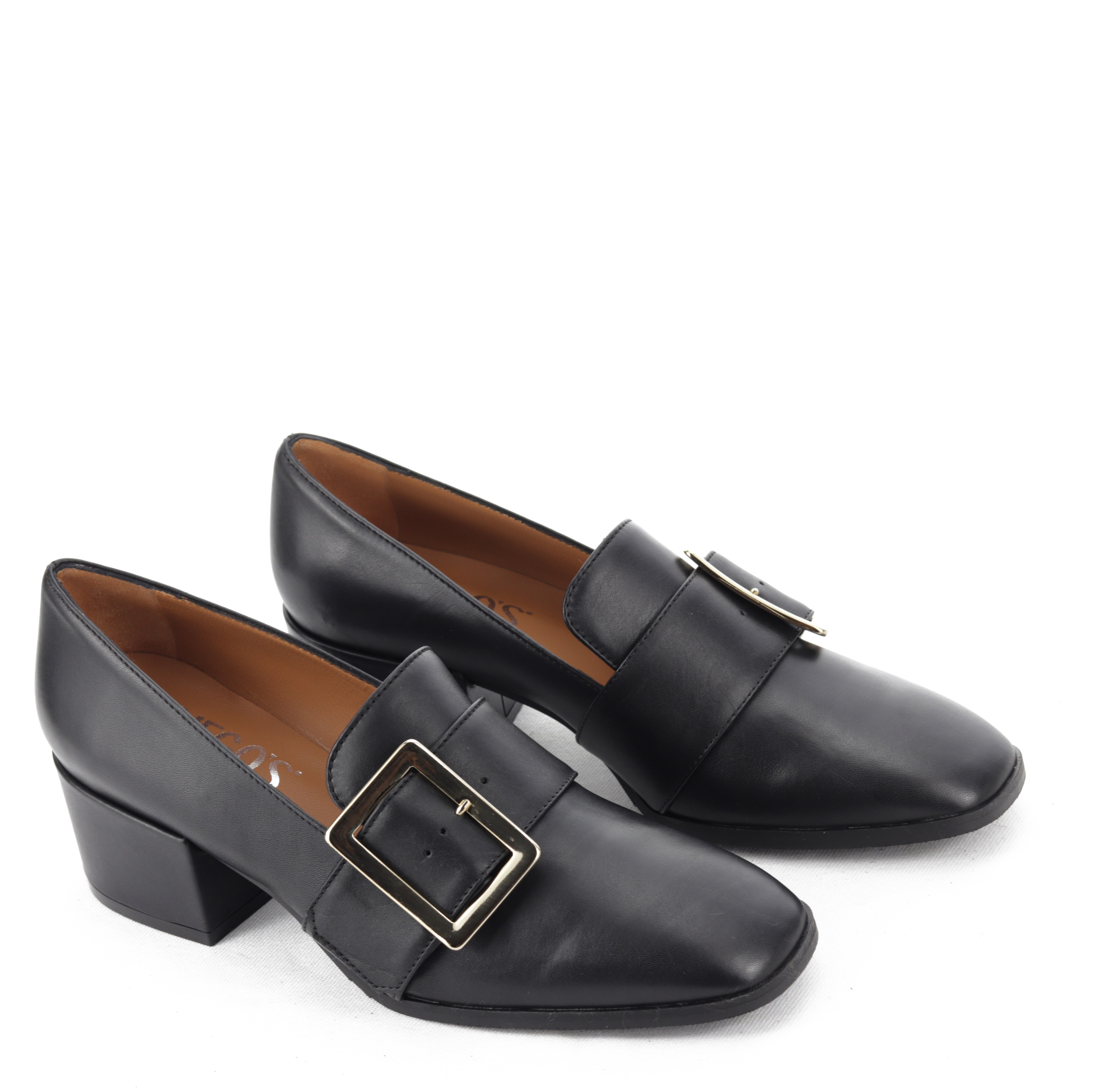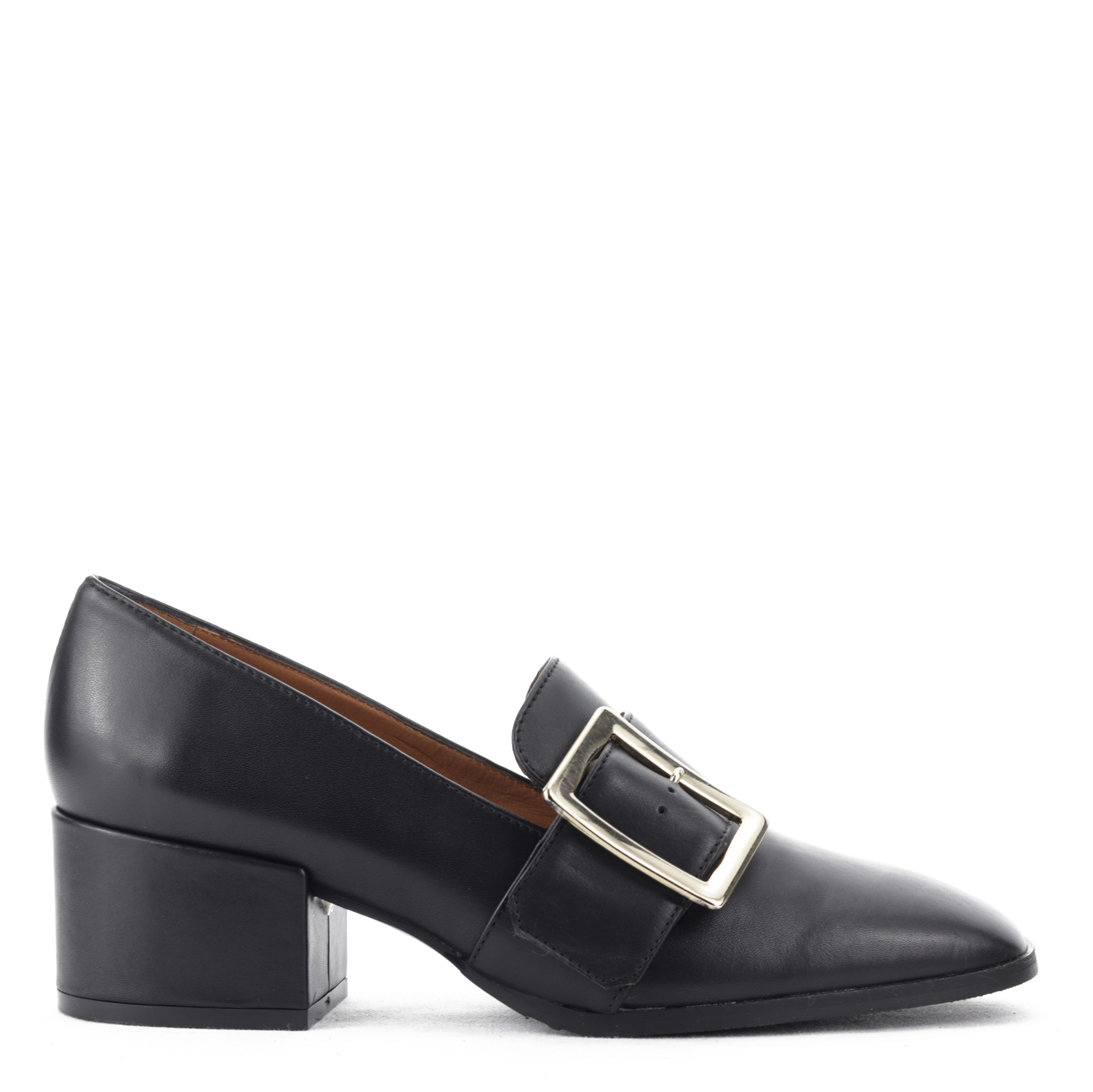 Unikatowe mokasyny w całości wykonane ze skóry to coś dla kobiet ceniących sobie wygodę oraz niebanalny design. Niski obcas oraz delikatnie zaokrąglony nosek w połączeniu z dużą, złotą klamrą sprawiają, że klasyka nabrała nowoczesnego charakteru. Świetnie prezentować się będą zarówno ze spodniami, jak i sukienkami.