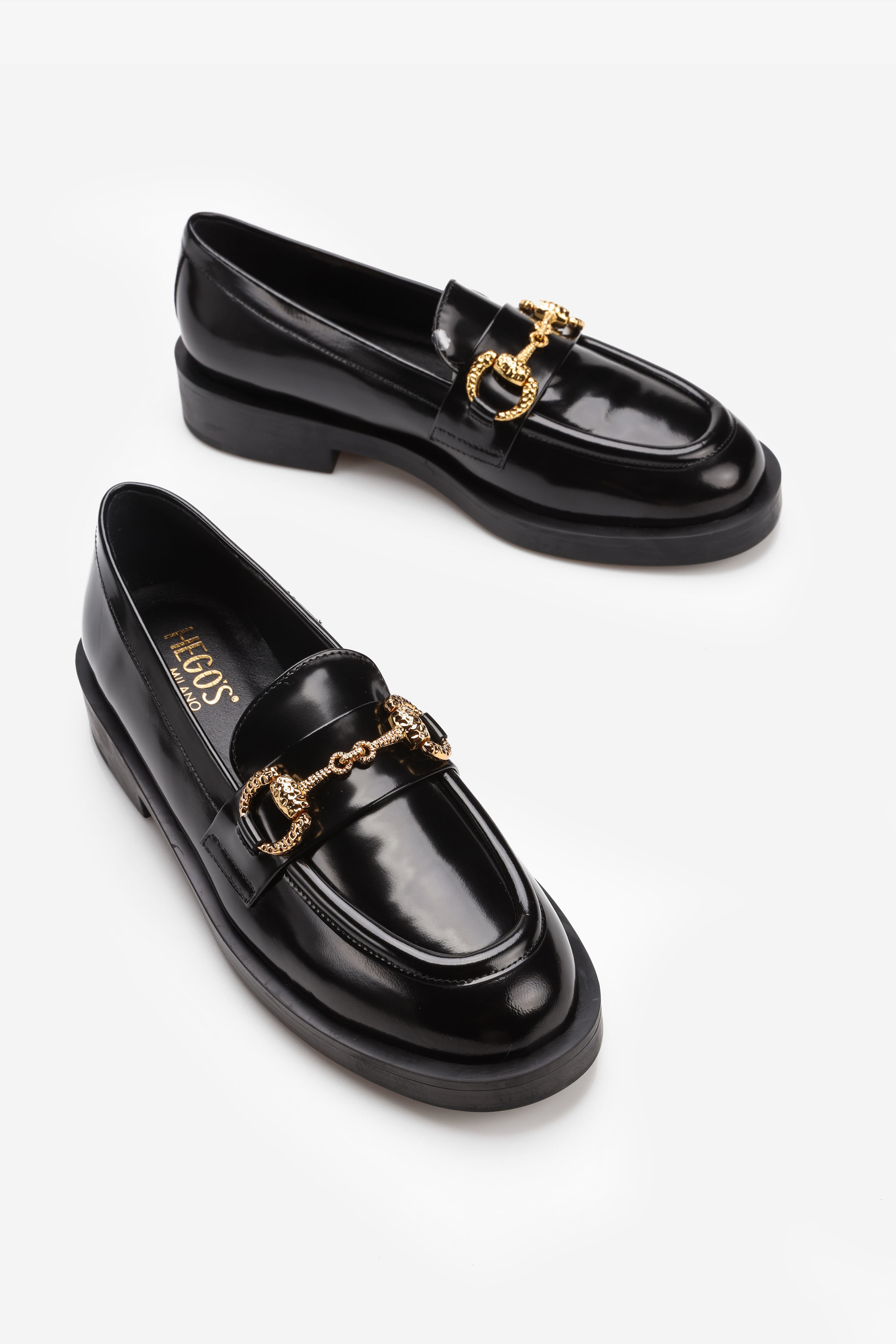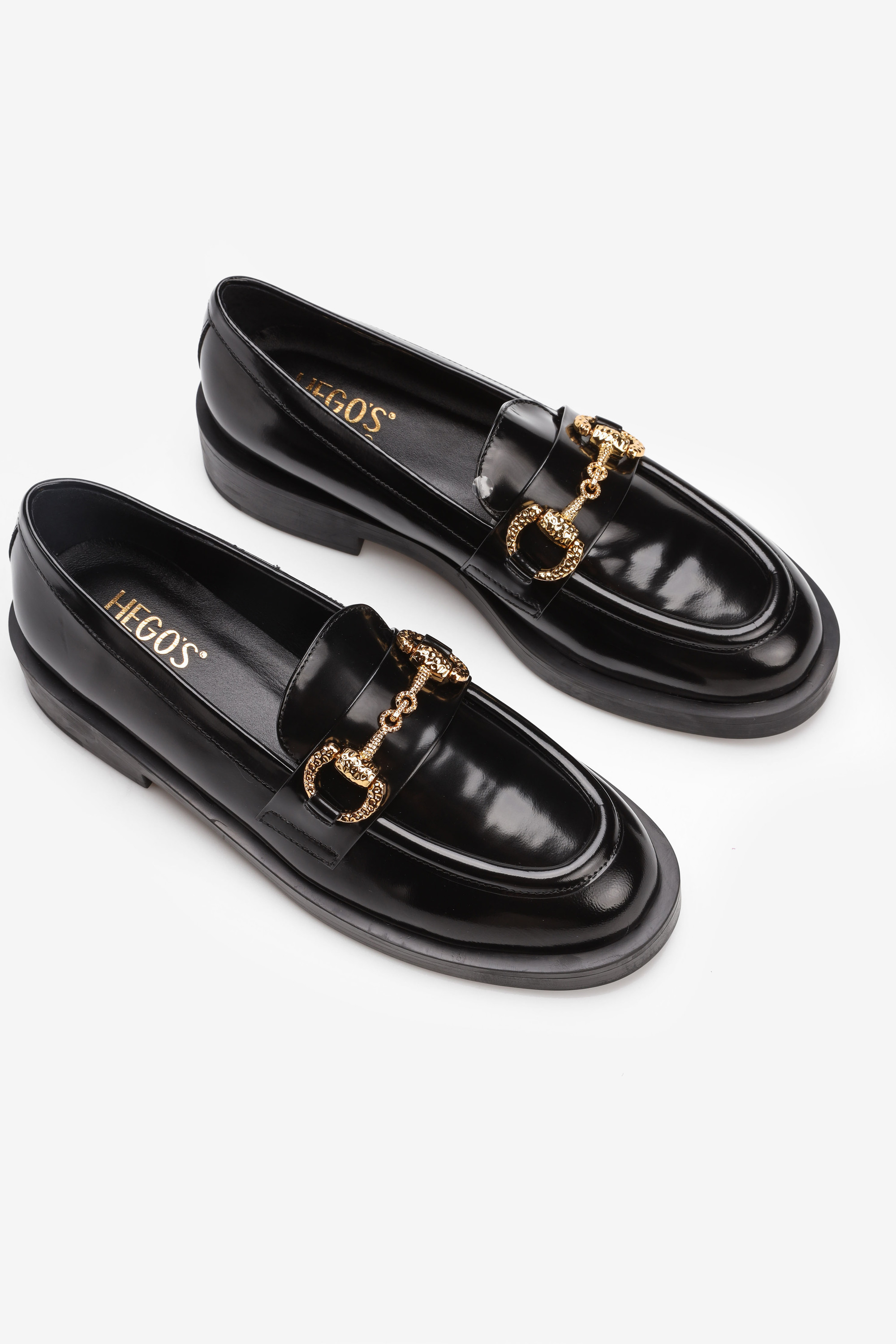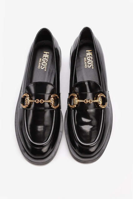 Lakierowane mokasyny łączą ze sobą elegancję oraz nienaganną prezencję. Mokasyny HEGO'S wykonane są z wysokiej jakościowo skóry lakierowanej, którą od wielu sezonów uznaje się za najmodniejszą. Klasyczny dla mokasyna krój wzbogacony został o biżuteryjny złoty łańcuch. Sprawdzą się jako idealne uzupełnienie stylizacji na każdą okazję.