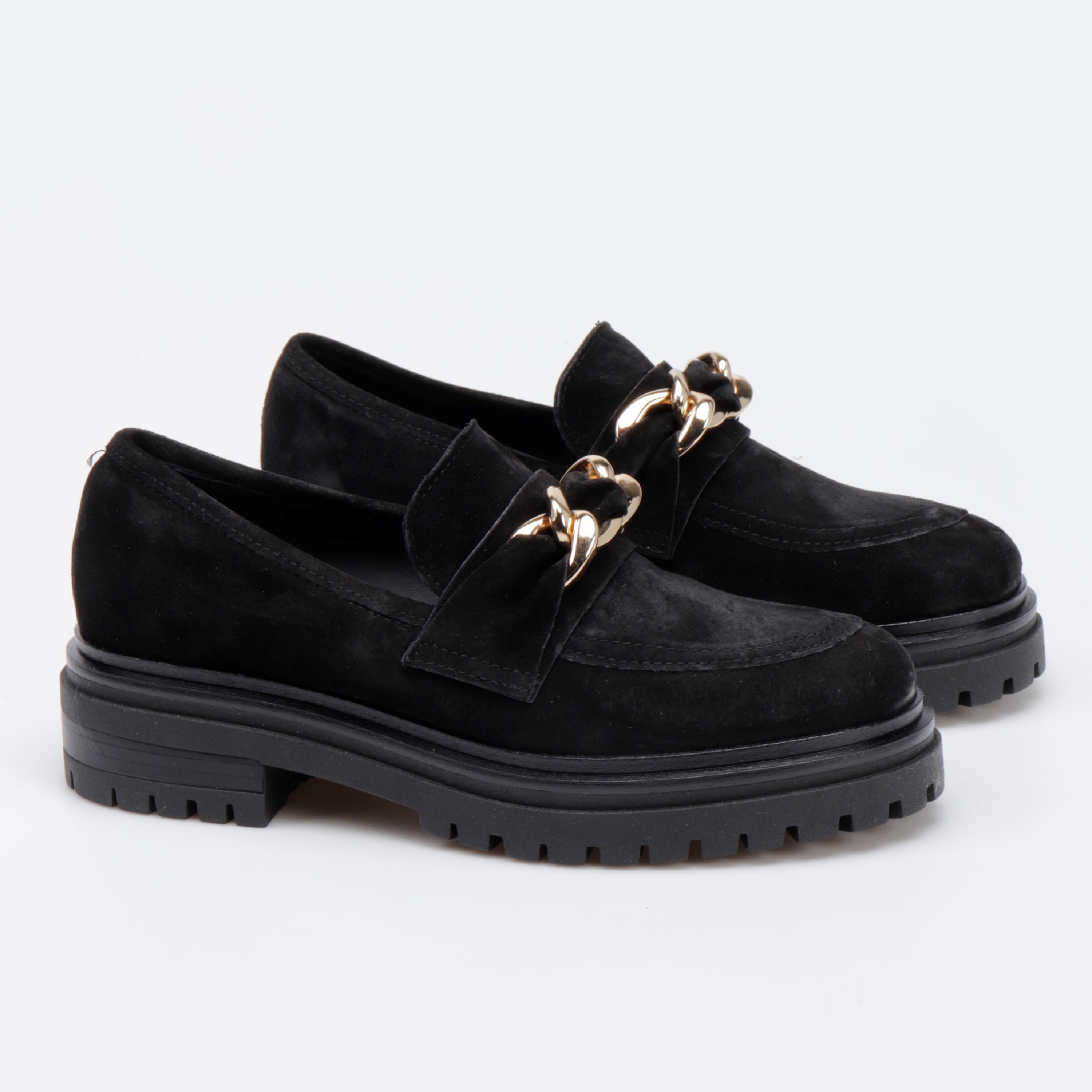 Unikatowe, przykuwające wzrok mokasyny na masywnej podeszwie stworzone zostały z myślą o odważnych, eleganckich kobietach chcących dodać stylu swoim stylizacjom.  Zamszowa cholewka w połączeniu z wykonanym z włoskiej skóry naturalnej wnętrzem i wkładką zapewnia dopasowanie do stopy i wysoki komfort użytkowania. Swoją wyjątkowość zawdzięczają starannie wykonanym przeszyciom i detalom w postaci charakterystycznej, metalowej ozdoby na przodzie.  Model ADRIEL to kwintesencja włoskiego designu i jakości.