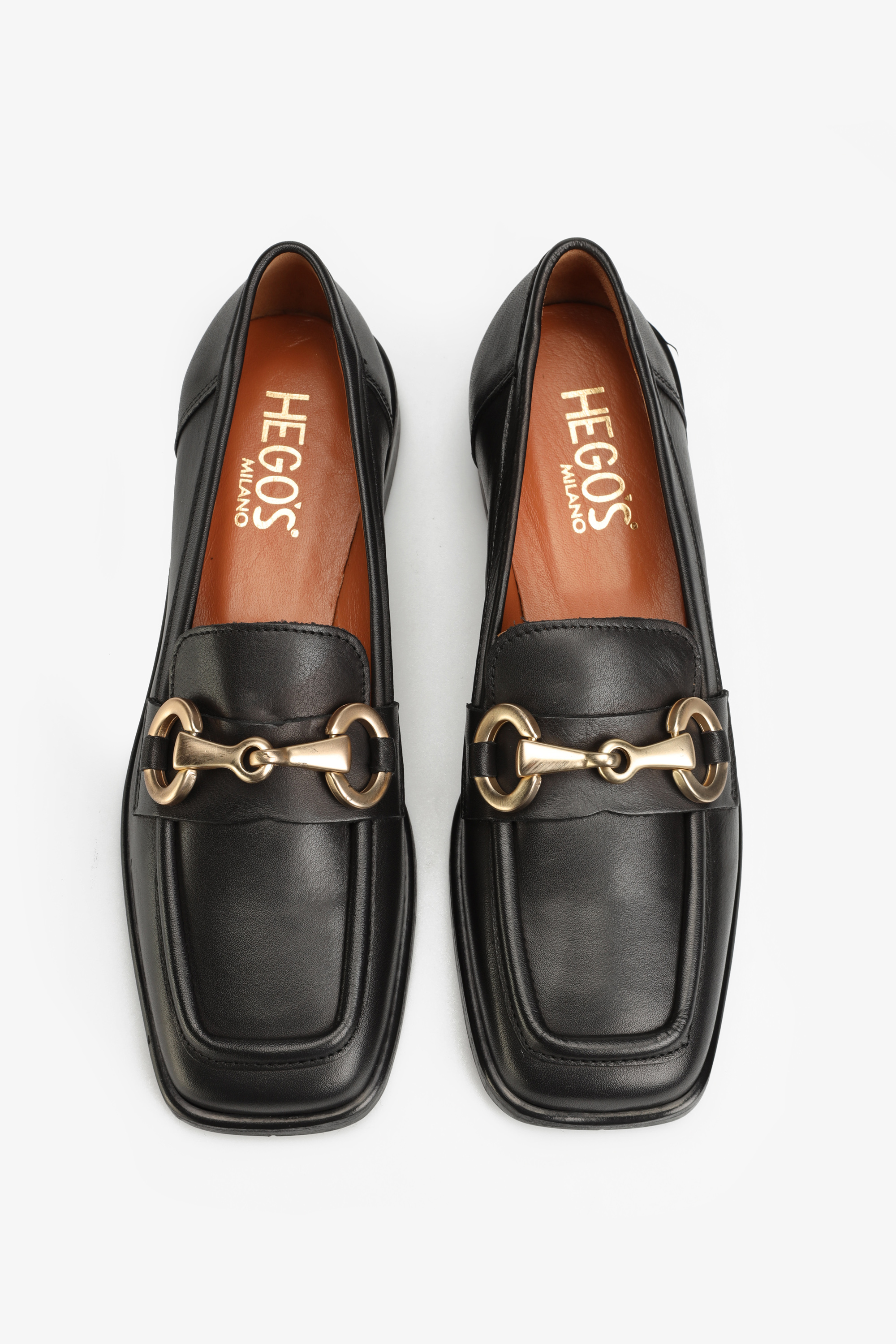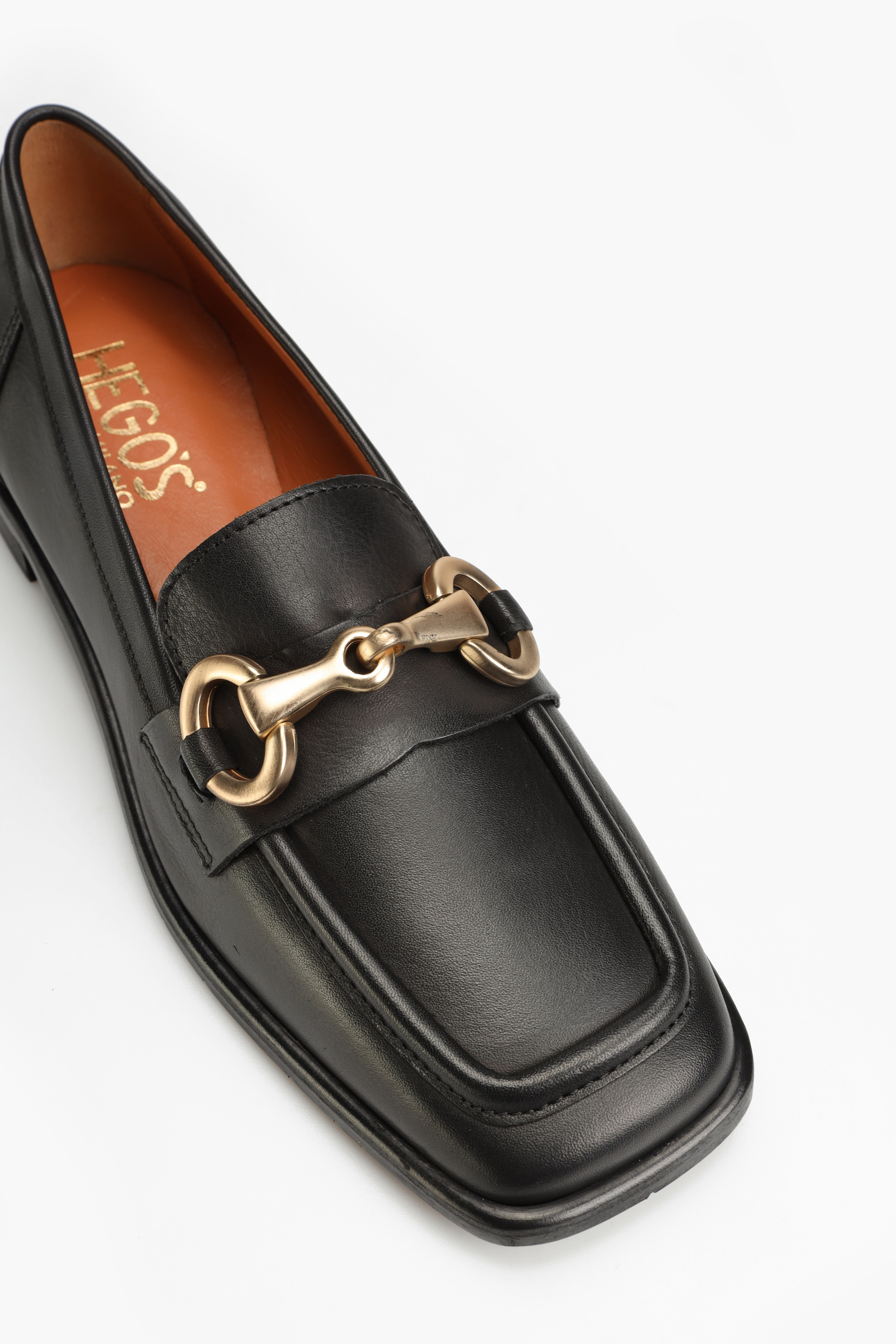 Mokasyny na płaskim obcasie HEGO'S Milano to HOT TREND sezonu. Włoskie mokasyny w ponadczasowym, czarnym kolorze w całości wykonane są z naturalnej skóry licowej. Wygodne, miękkie dopasują się do Twojej stopy. Wkładka z koziej skóry i skórzana podeszwa zapewnią komfort podczas codziennego użytkowania obuwia. Model uzupełniony został o charakterustyczne, złote wędzidło w stylu Gucci. Kwadratowy nosek wpisuje się w Trendy sezonu.