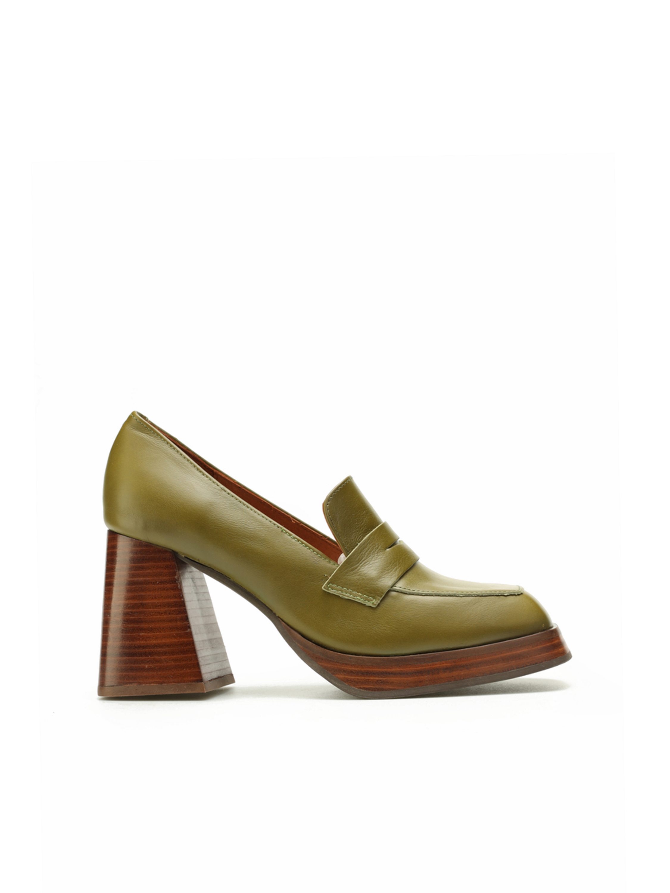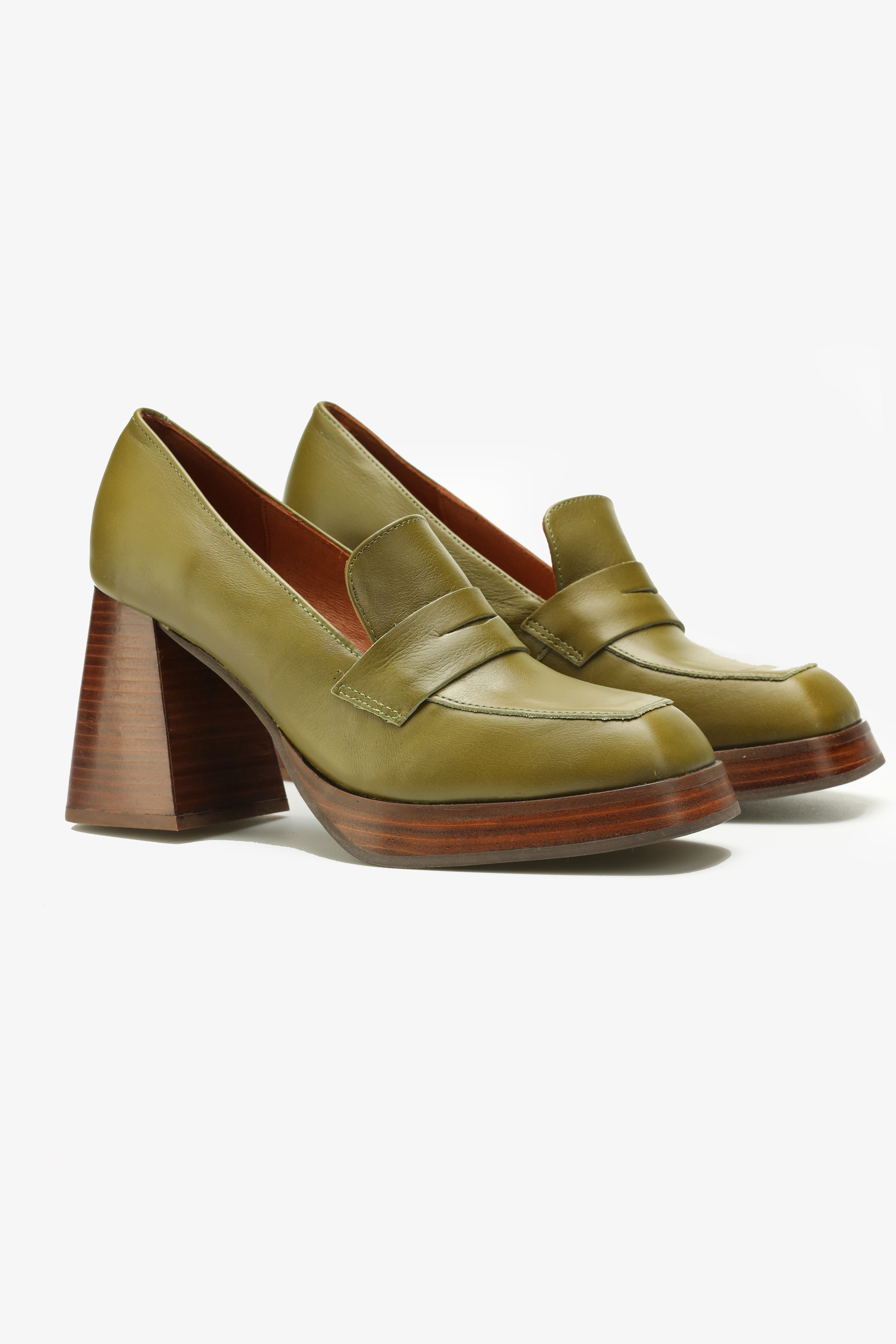 Włoskie mokasyny w modowym kolorze, wykonane są z naturalnej skóry licowej NAPPA. Fason w stylu lords z charakterystycznym wysokim językiem uzupełniony został o eleganckie przeszycia i kwadratowy nosek. Stabilny, geometryczny obcas na słupku w połączniu z podeszwą na platformie wpisuje się w najnowsze Trendy. Skórzana wkładka odpowiada za wygodę i komfort w noszeniu obuwia.
