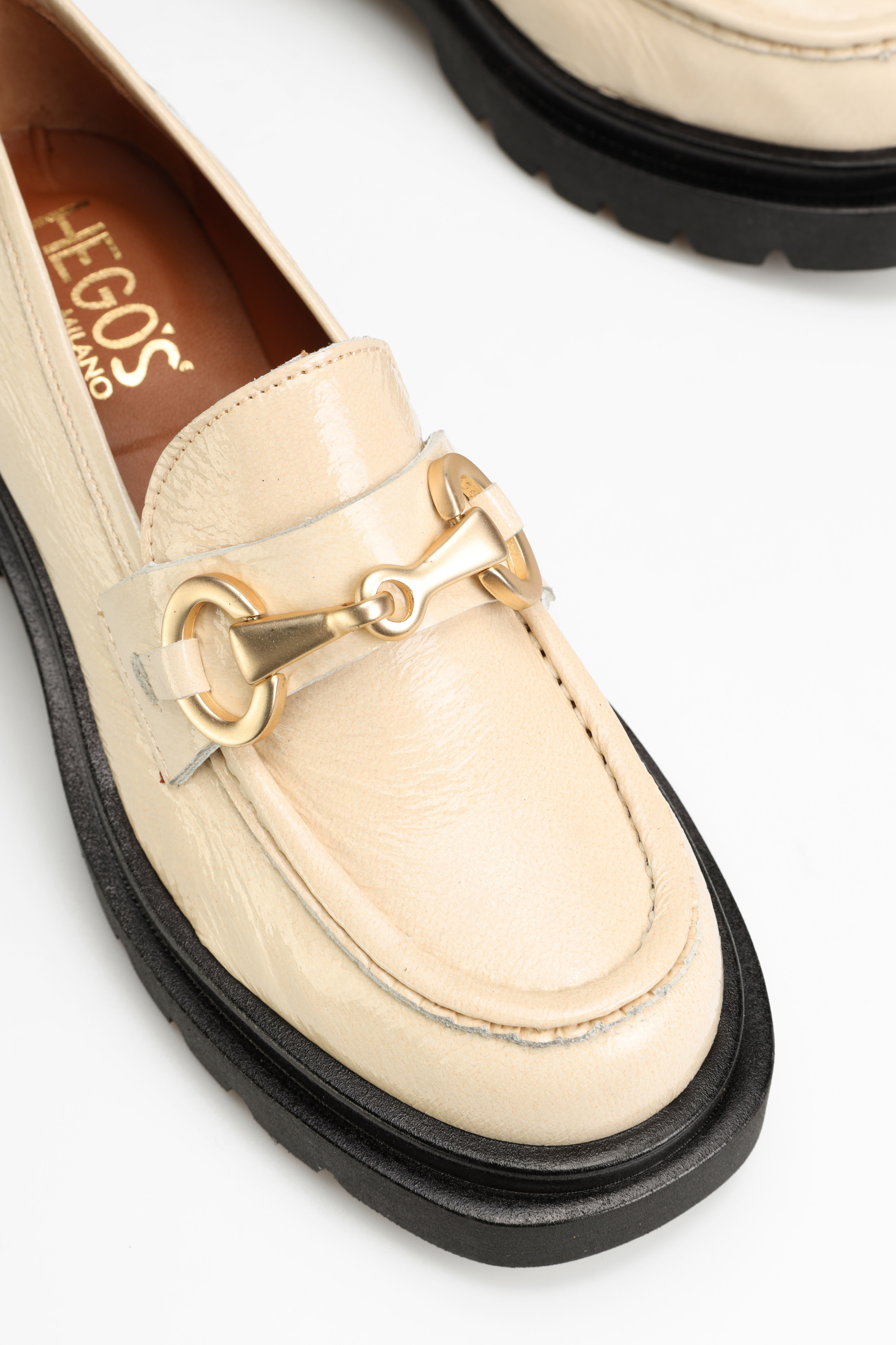 Projektanci HEGO'S Milano stworzyli model SUSA-5 z myślą o kobietach ceniących sobie najnowsze trendy i designerskie kroje. Cholewka oraz wkładka w całości wykonane zostały z wysokiej jakości włoskiej skóry naturalnej, która gwarantuje komfort i wygodę. Charakterystyczne przeszycia w towarzystwie złotego wędzidła na przodzie sprawiają, że prosty krój prezentuje się niezwykle nowocześnie.