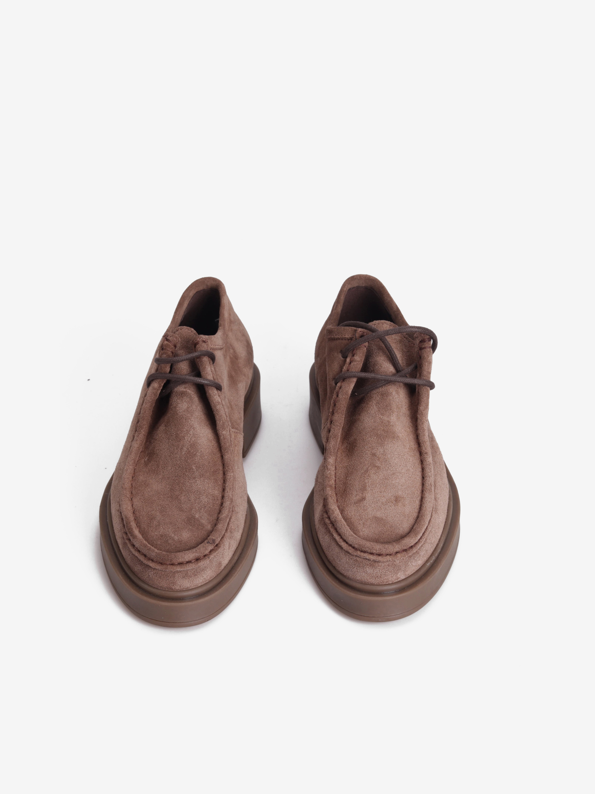 Piękne półbuty z grubym, charakterystycznym przeszyciem na przodzie to zdecydowany hit sezonu AW21. Połączenie zamszowej cholewki oraz skórzanej wkładki to gwarancja dopasowania do stopy i wysokiego komfortu użytkowania. Gumowa podeszwa zapewni należytą przyczepność i stabilny krok, a delikatne wiązanie sprawia, że prezentują się niezwykle nowocześnie i stylowo. Będą idealnym dopełnieniem każdej jesiennej stylizacji.