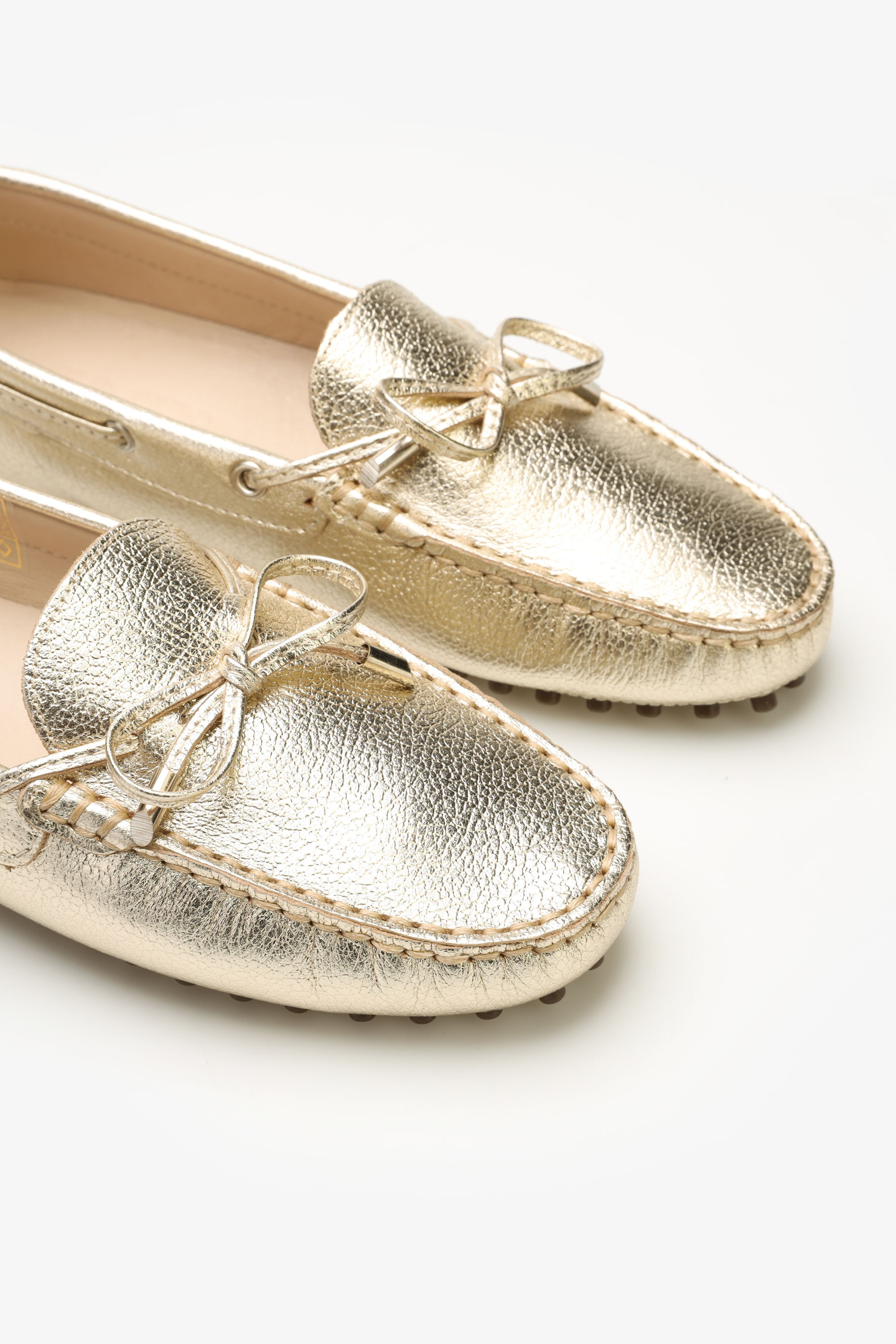 Klasyczne mokasyny w pięknym, złotym kolorze to ponadczasowa opcja dla każdej kobiety ceniącej sobie wygodę w sezonie wiosna/lato. Wykonana z wysokiej jakości skóry naturalnej cholewka i wkładka zapewnią komfort, a gumowa podeszwa odpowiednią amortyzację. Grube przeszycia oraz wiązana kokarda to elementy nadające im stylu i charakteru, dlatego też pasować będą zarówno do denimowych stylizacji jak i zwiewnych sukienek w stylu boho.