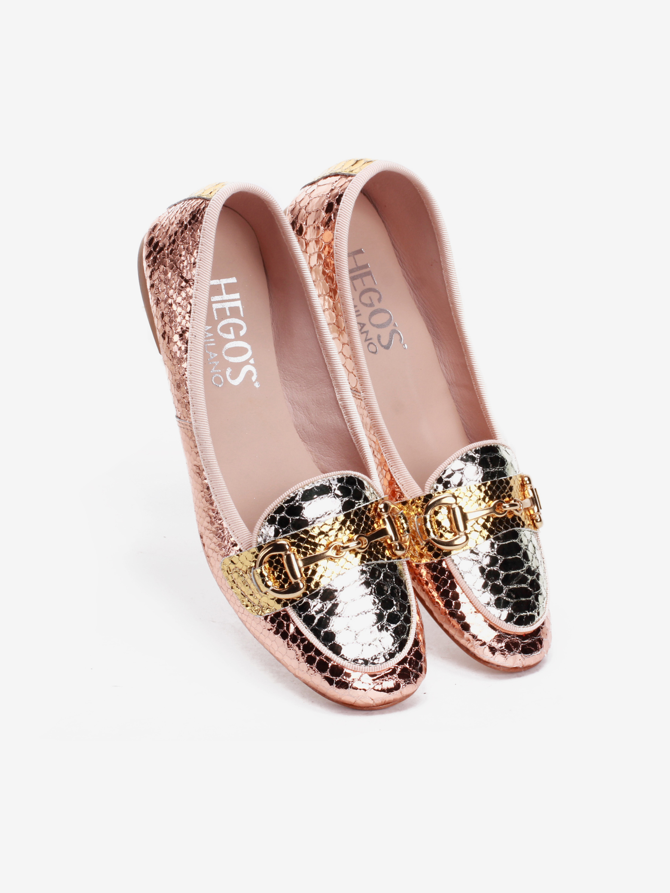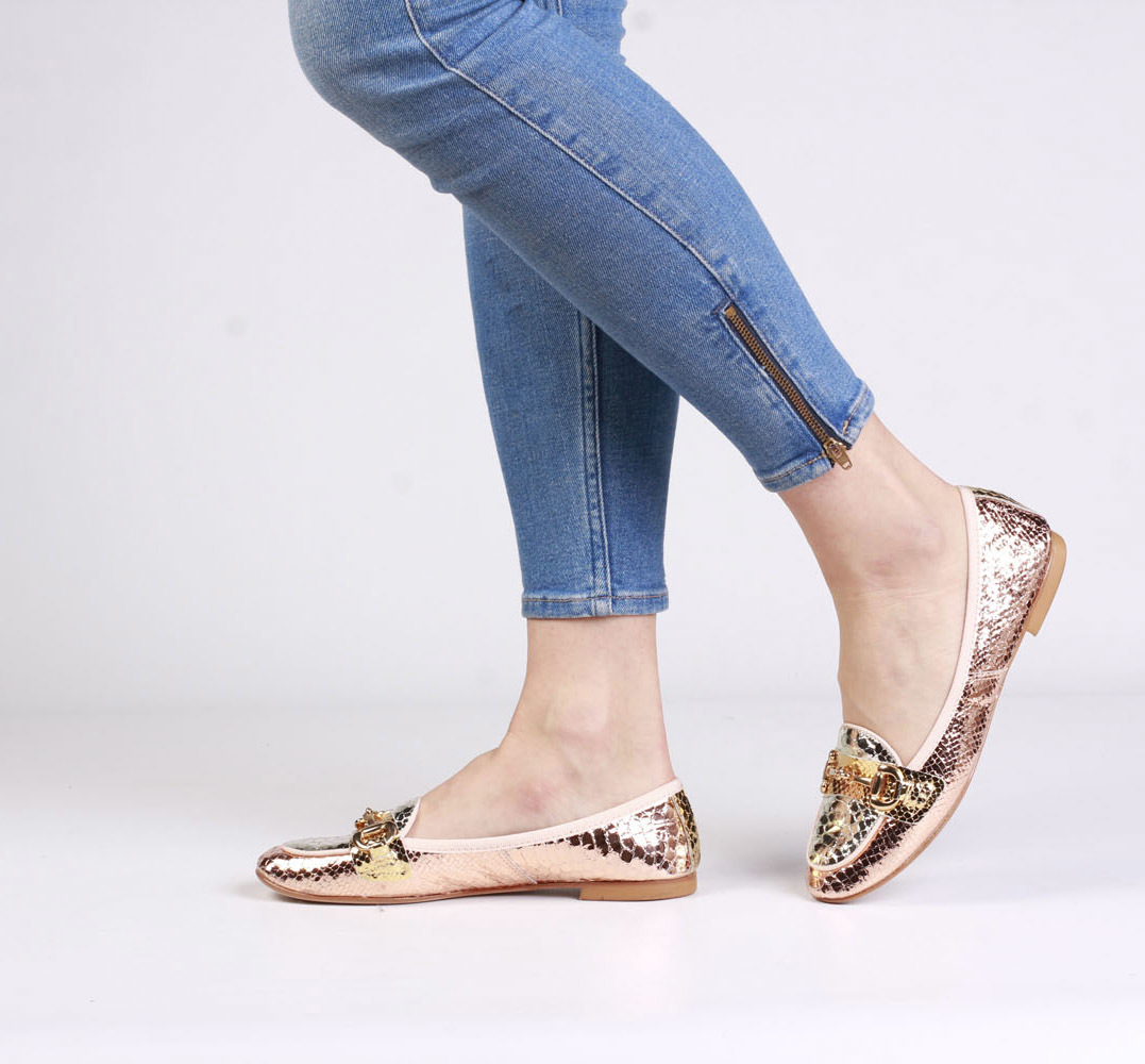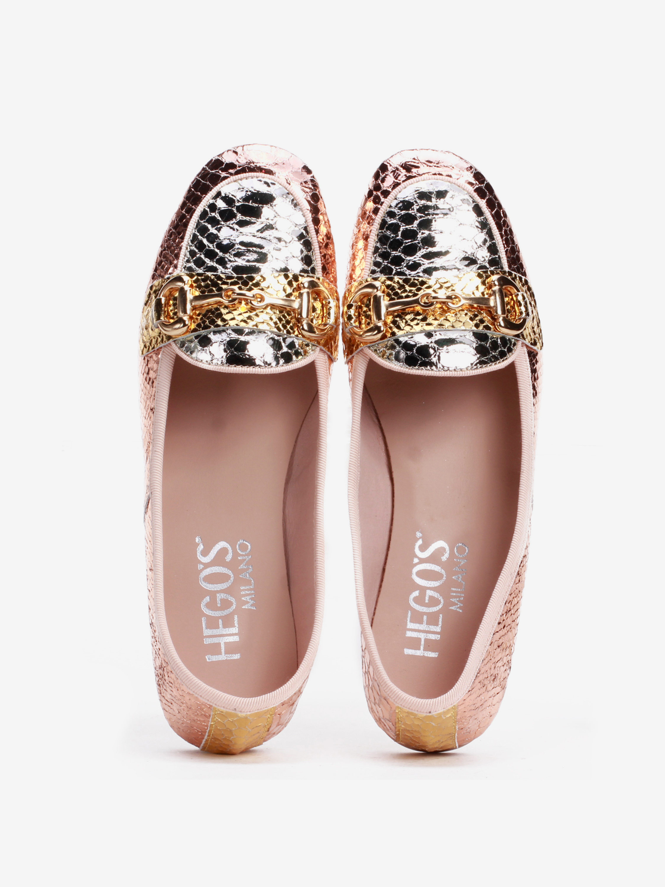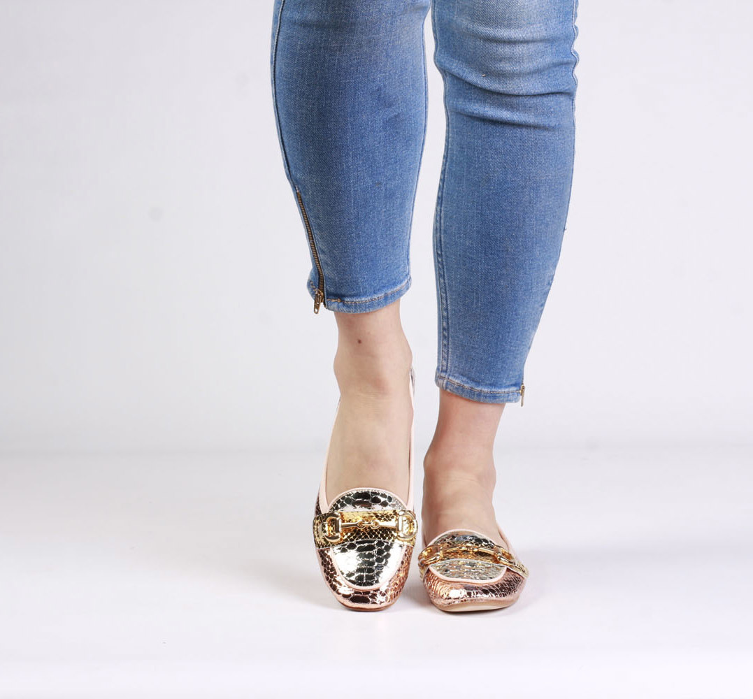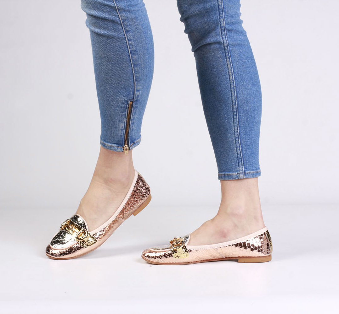 Piękne, błyszczące mokasyny z motywem wężowej skórki dodadzą blasku zarówno klasycznym jak i casualowym stylizacjom! W całości wykonane z wysokiej jakości skóry naturalnej gwarantują dopasowanie do stopy i komfort przez wiele godzin. W modelu 1480  nie mogło zabraknąć charakterystycznego dla mokasyn wędzidła na przodzie. Nie da się przejść obok nich obojętnie!