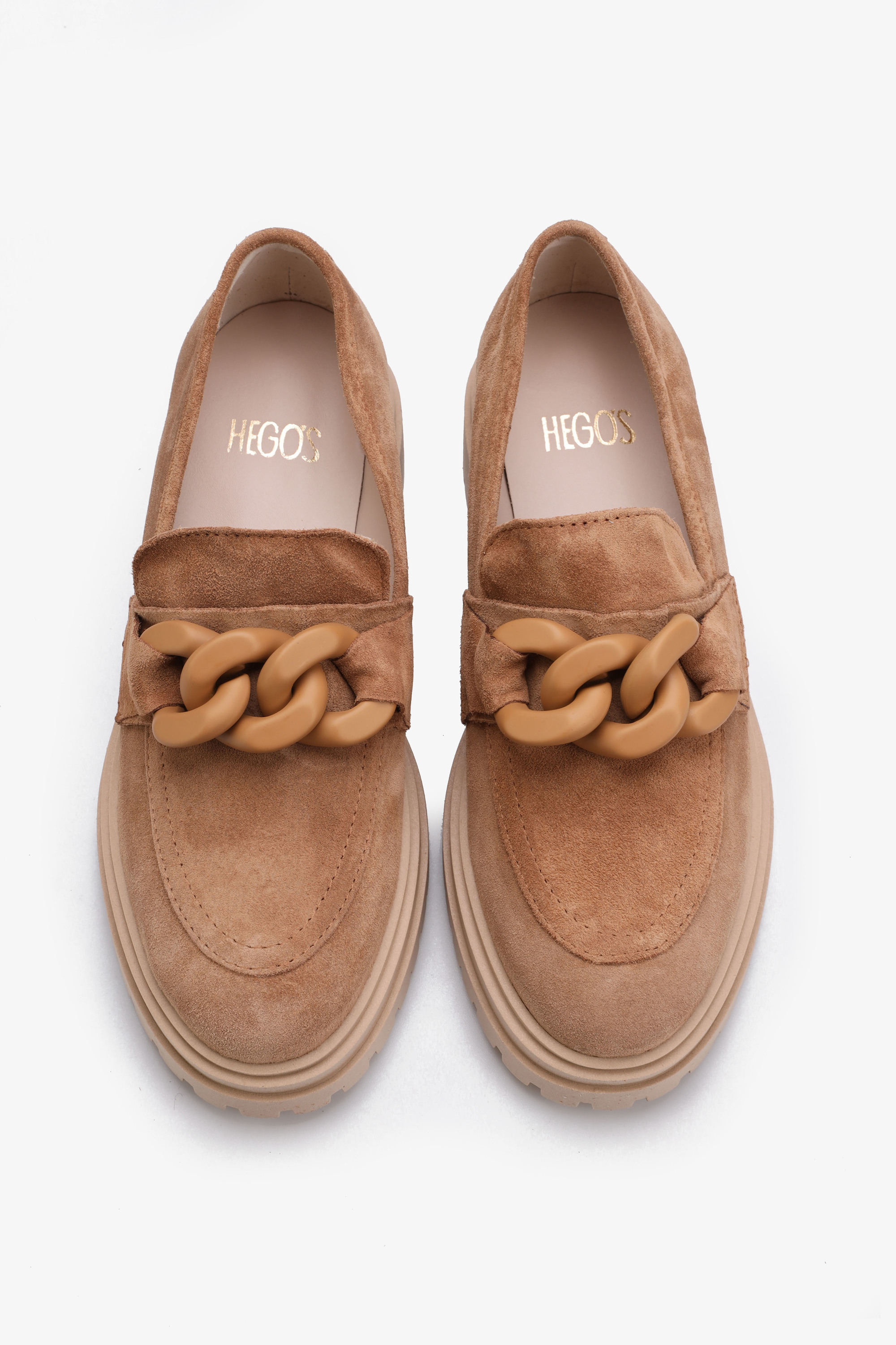 Mokasyny HEGO'S na masywnej podeszwie rozkochają w sobie każdą miłośniczkę butów. Cholewka z naturalnego zamszu szybko dopasuje się do stopy. Skórzane wnętrze oraz wkładka zapewnią ekstremalną wygodę. Na komfort użytkowania wpłynie również gruba podeszwa. Modowego wymiaru oraz włoskiego pazura zapewni im łańcuch na cholewie, który jest nieoczywisty przez neutralną barwę.