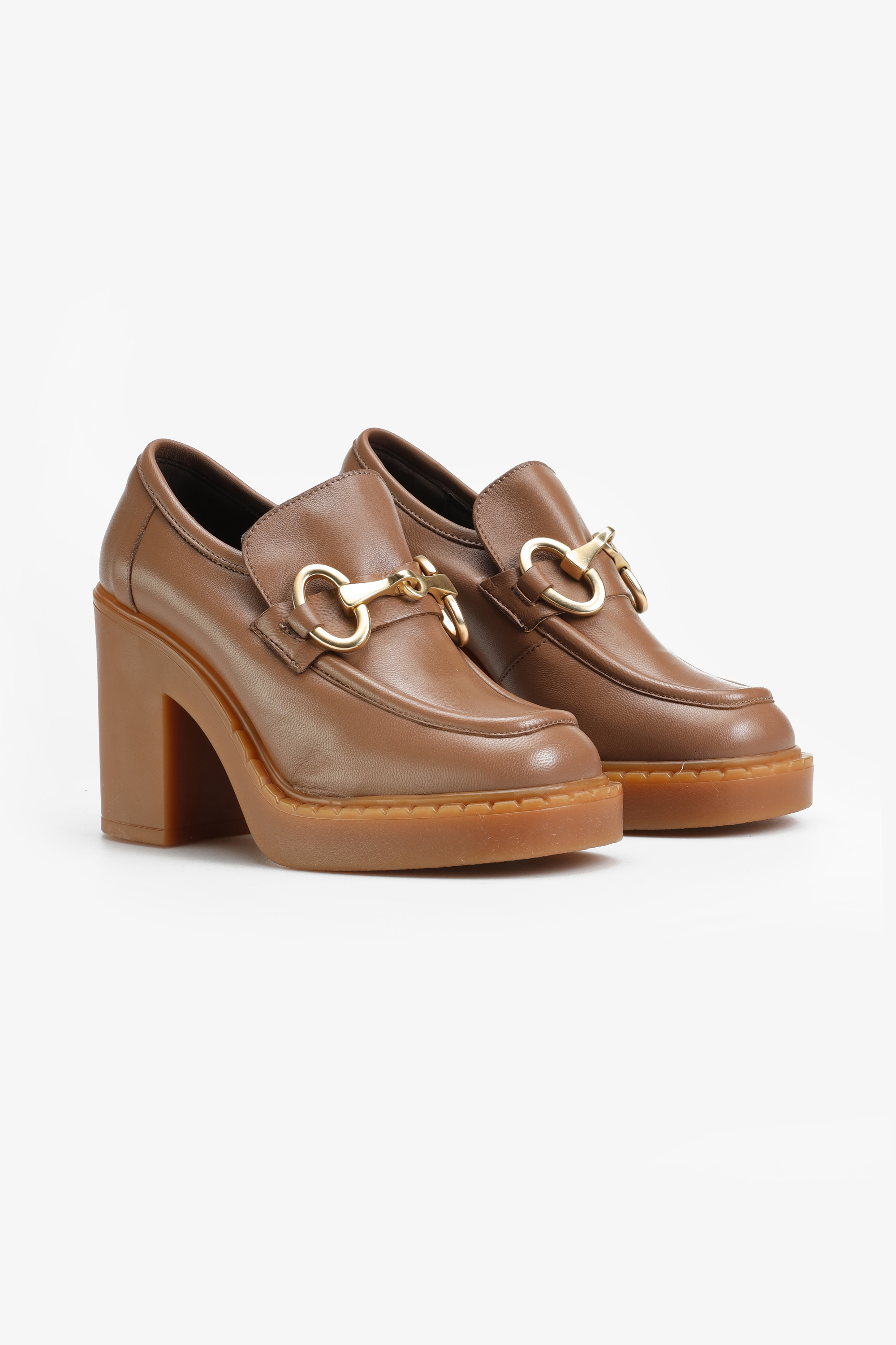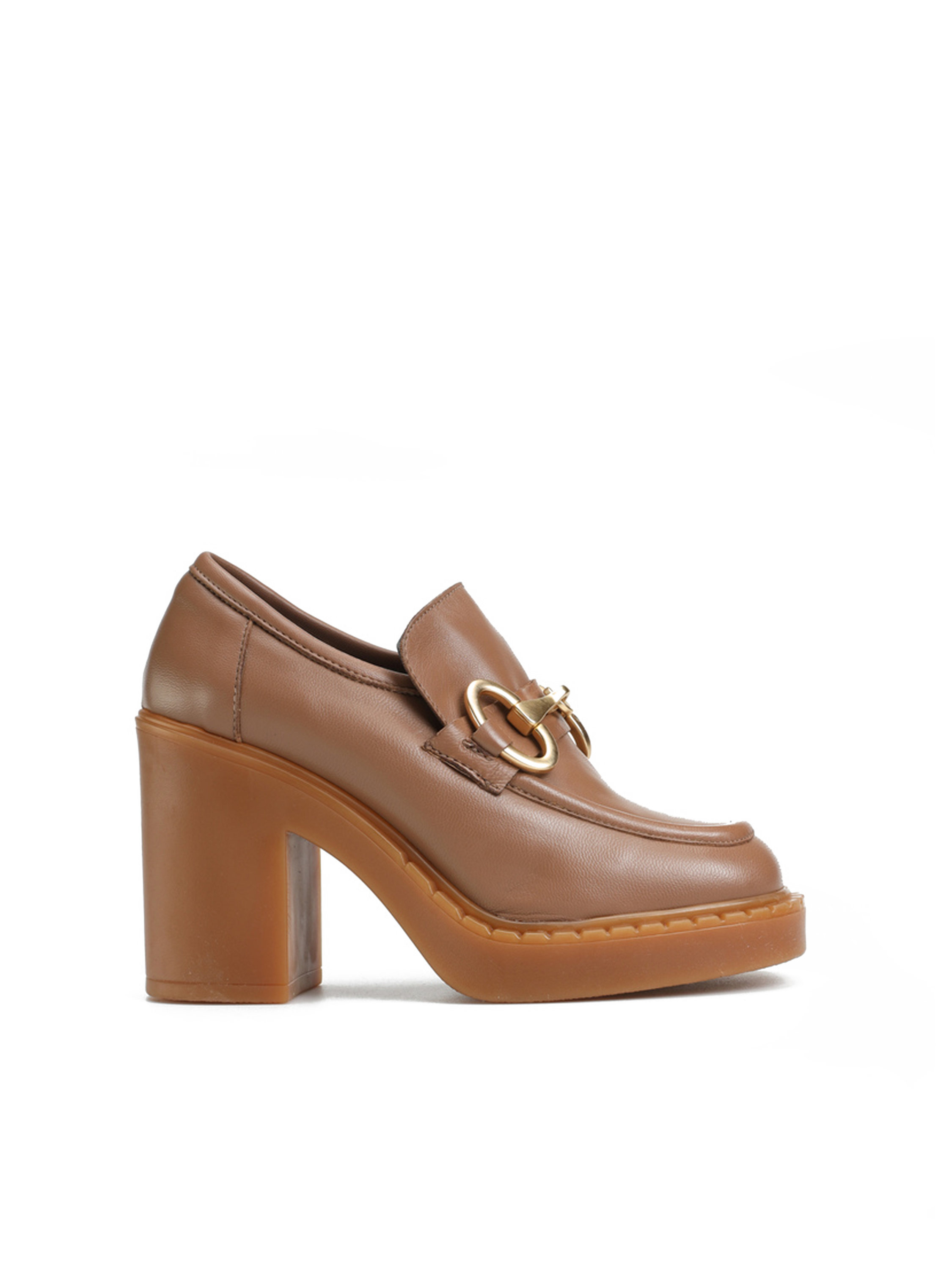 Mokasyny w beżowym kolorze natury w połączeniu z grubą, gumową podeszwą na platformie to tegoroczny must have. Włoska dbałość o detale w postaci przeszyć na cholewce, charakterystycznego wysokiego języka typowego dla fasonu lords oraz biżuteryjna, złota klamra to moda prosto z włoskich ulic. Stabilny, słupkowy obcas i kwadratowy nosek idealnie wpisują się w obecne trendy.