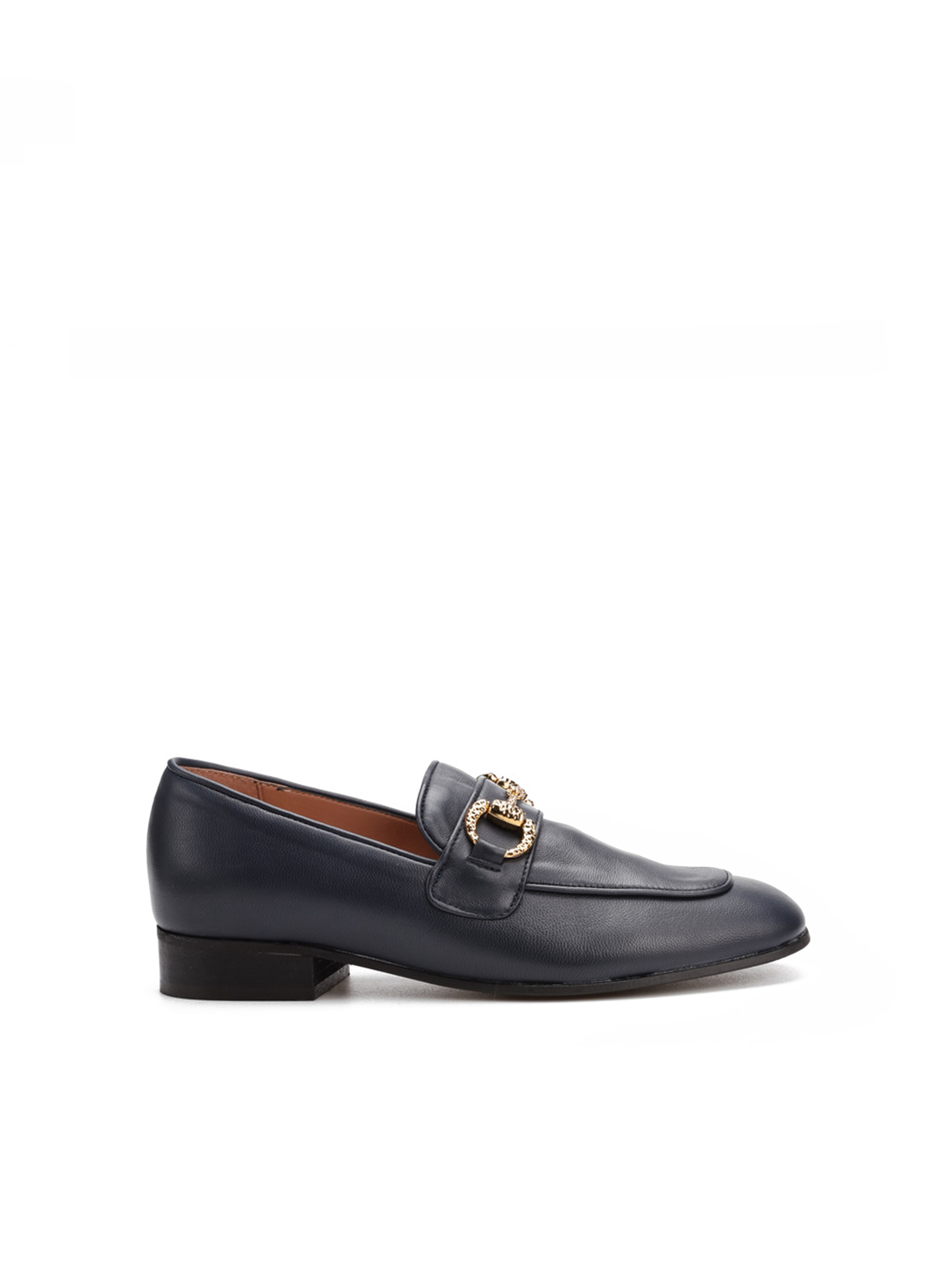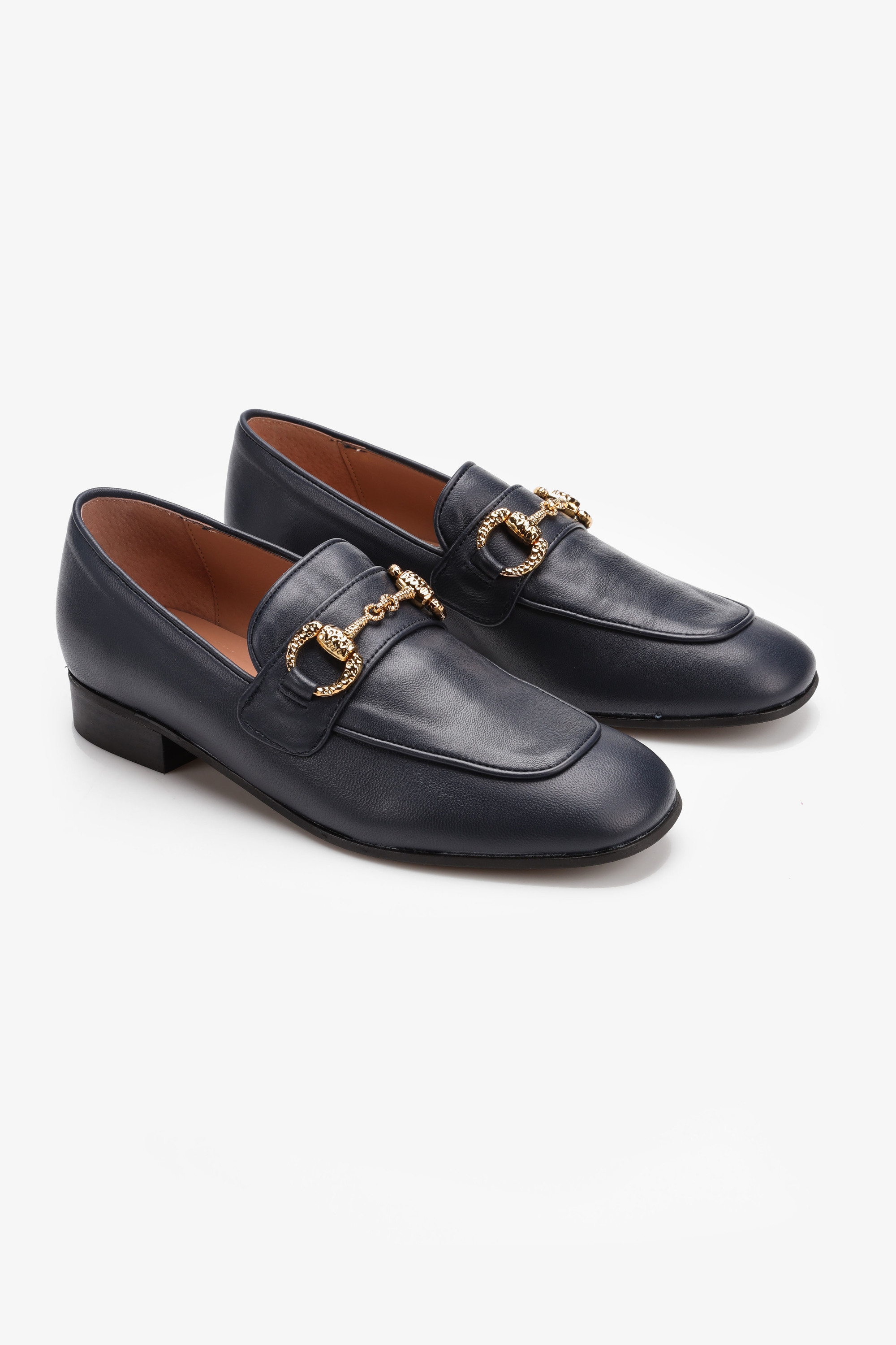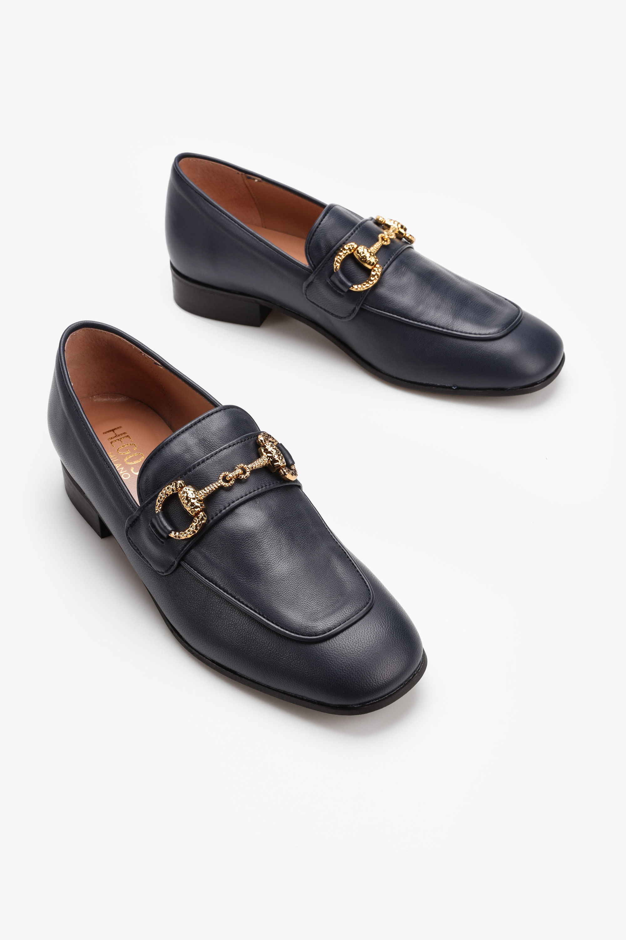Mokasyny HEGO'S są najlepszym wyborem dla kobiet ceniących sobie elegancję, minimalizm oraz wygodę na codzień. Wykonane są z najlepszej gatunkowo skóry gładkiej. Ścięty czubek uzupełniony został o delikatną ozdobę w kolorze złotym. Granatowy kolor ułatwi dopasowanie do każdego typu stylizacji na codzień.