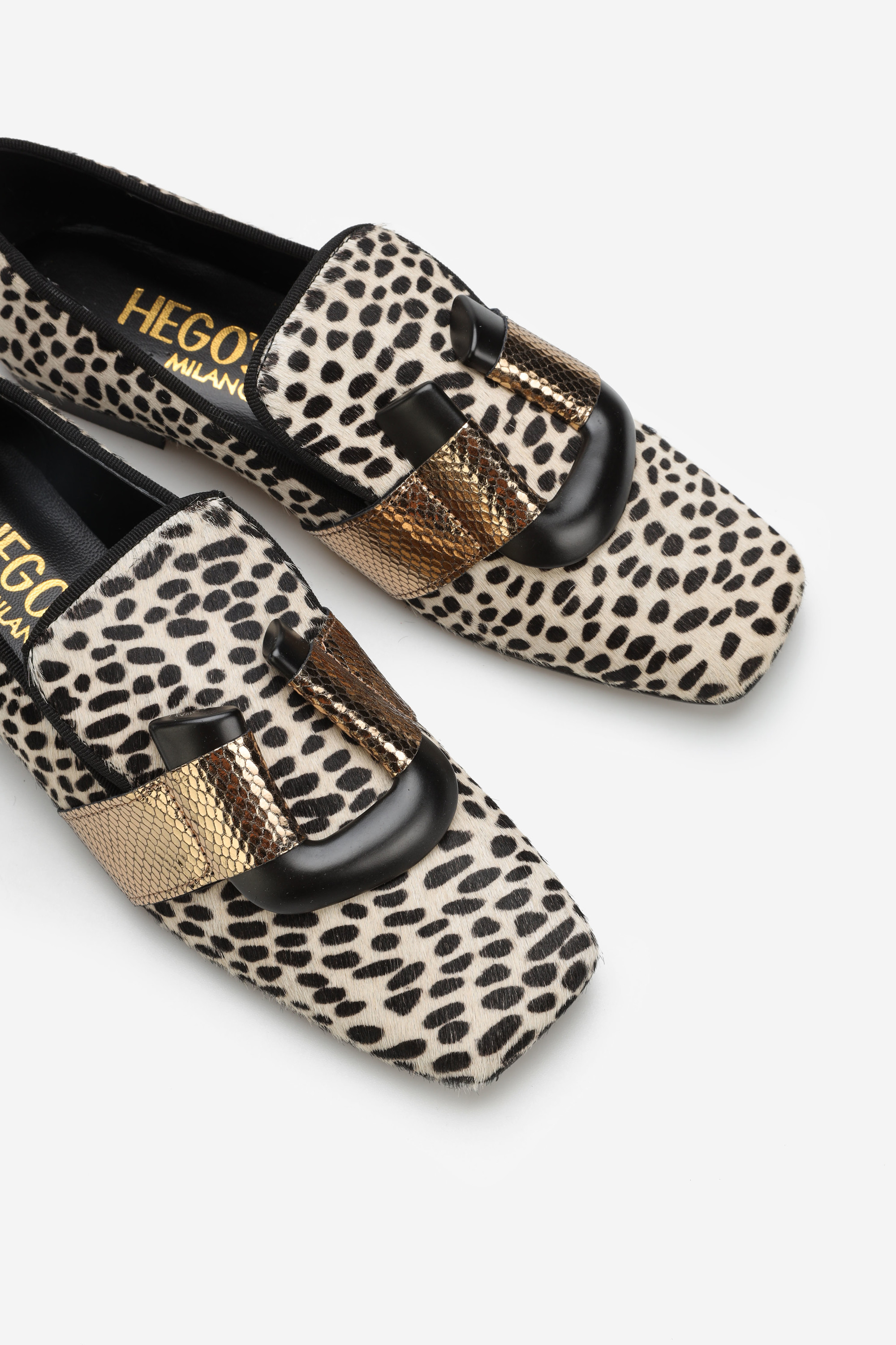 Limitowane serie obuwia HEGO'S Milano słyną z łączenia największych trendów z wyrazistymi detalami, co czyni je doskonałym wyborem dla kobiet stawiających w swoich stylizacjach na oryginalność, szyk oraz elegancję. Mokasyny HEGO'S są wykonane z najwyższej jakości skór, co czyni je najlepszym wyborem na wiele godzin eksploatacji. Końskie włosie w połączeniu ze zwierzęcym printem, elektryzującą fuksją oraz kwadratowym noskiem stanowi zestawienie najgorętszych trendów ostatnich lat w jednym modelu. Uzupełnione o mocno kontrastującą ozdobę, która przypomina literę U stanowią wyrazisty akcent stylizacji na każdą okazję.