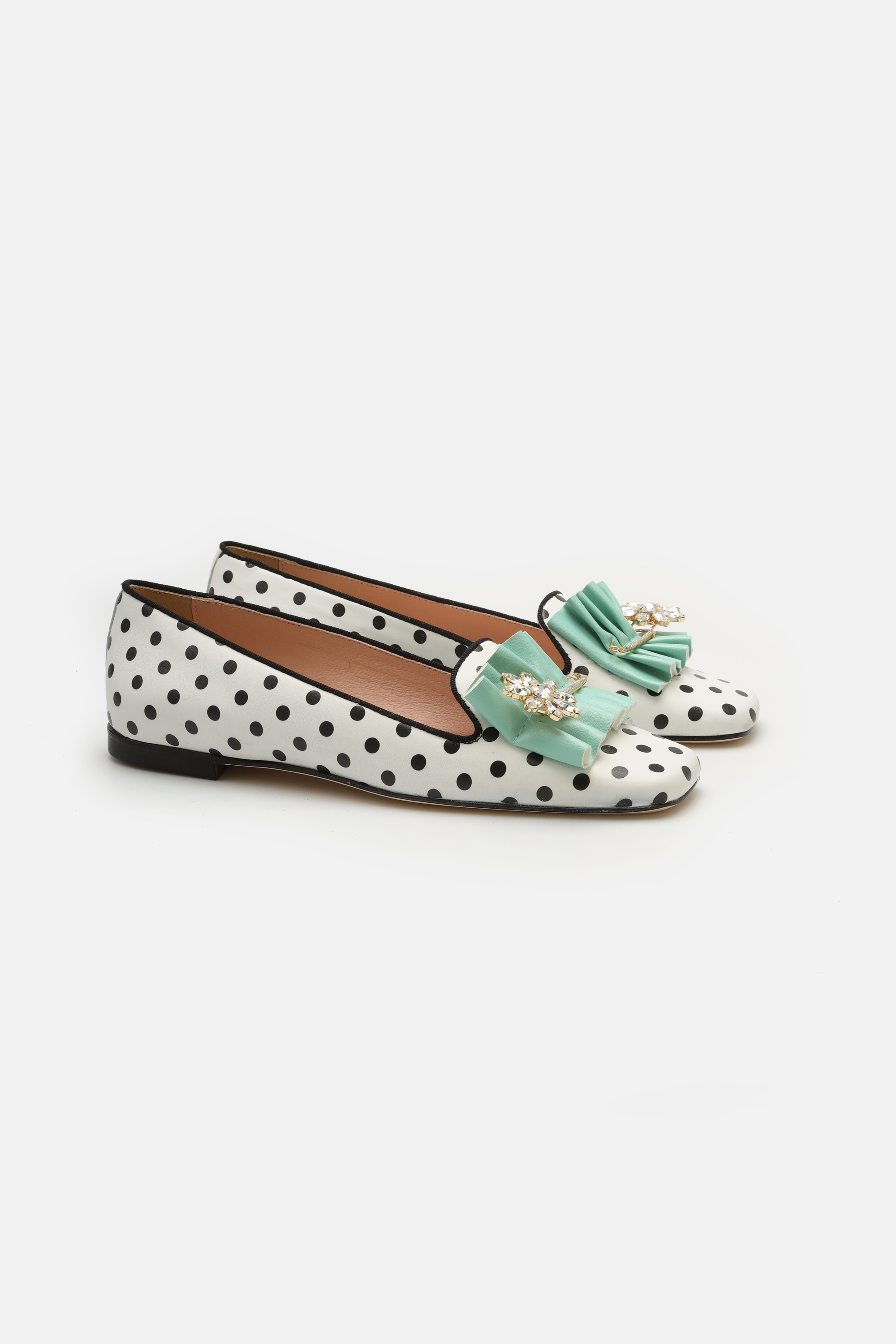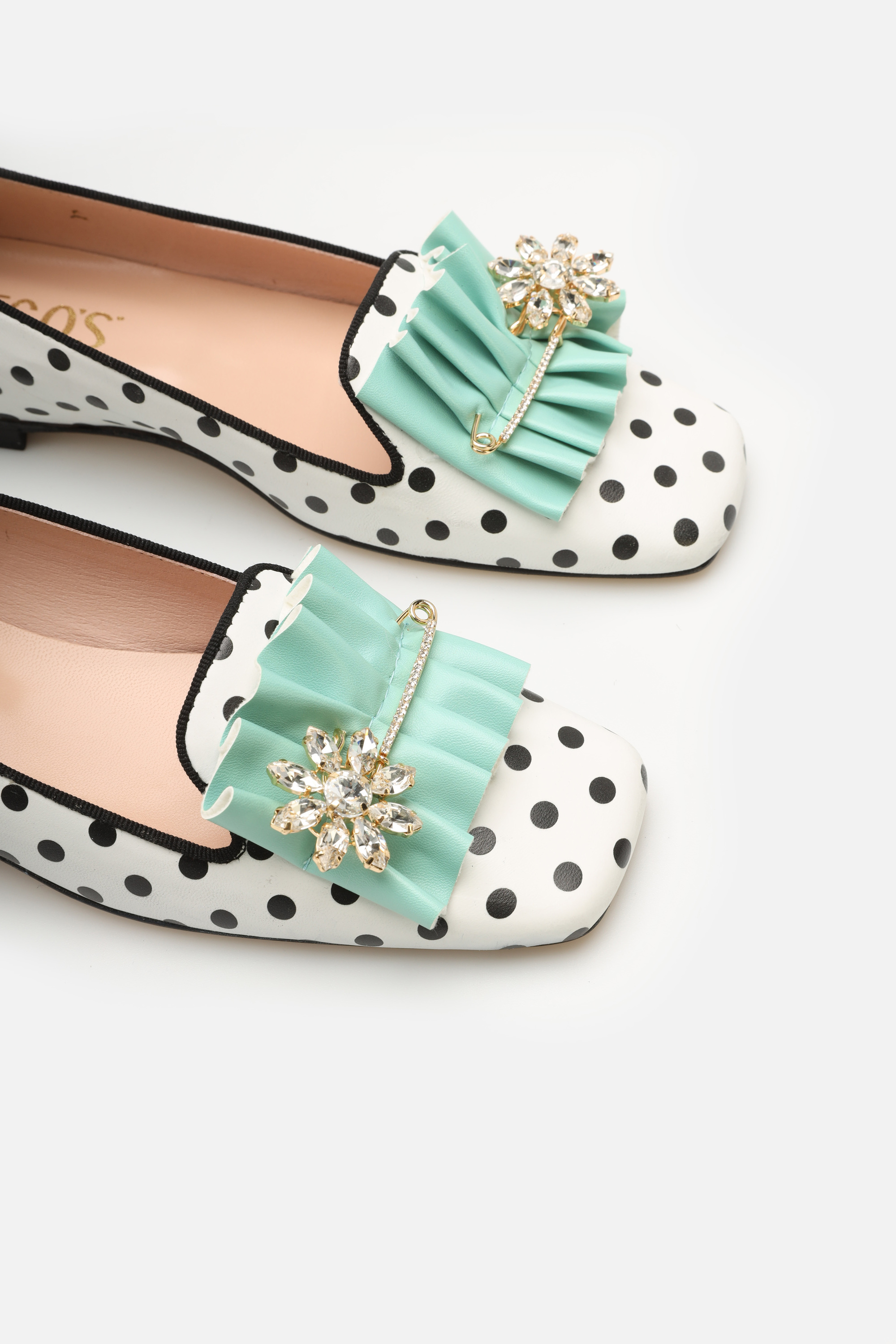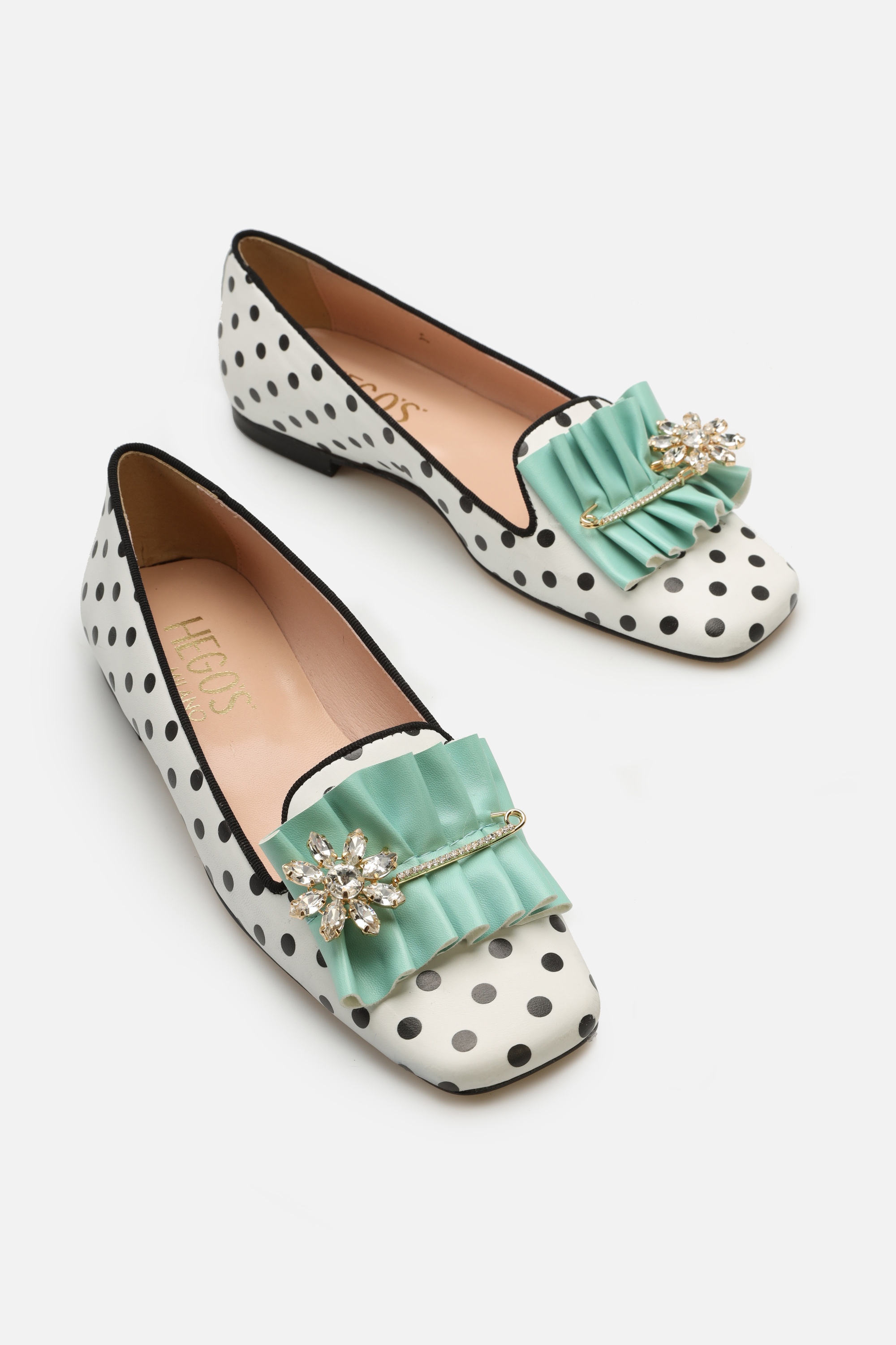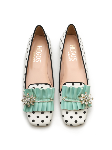 Mokasyny HEGO'S są właśnie tym czego szukasz! Cholewka w kropeczki z miękkiej skóry w połączeniu ze skórzaną wkładką zapewniają komfort noszenia przez wiele godzin oraz szybkie dopasowanie się do stopy! Ich ponadczasowy kształt został w iście włoski sposób przełamany agrafką z cyrkoniami.