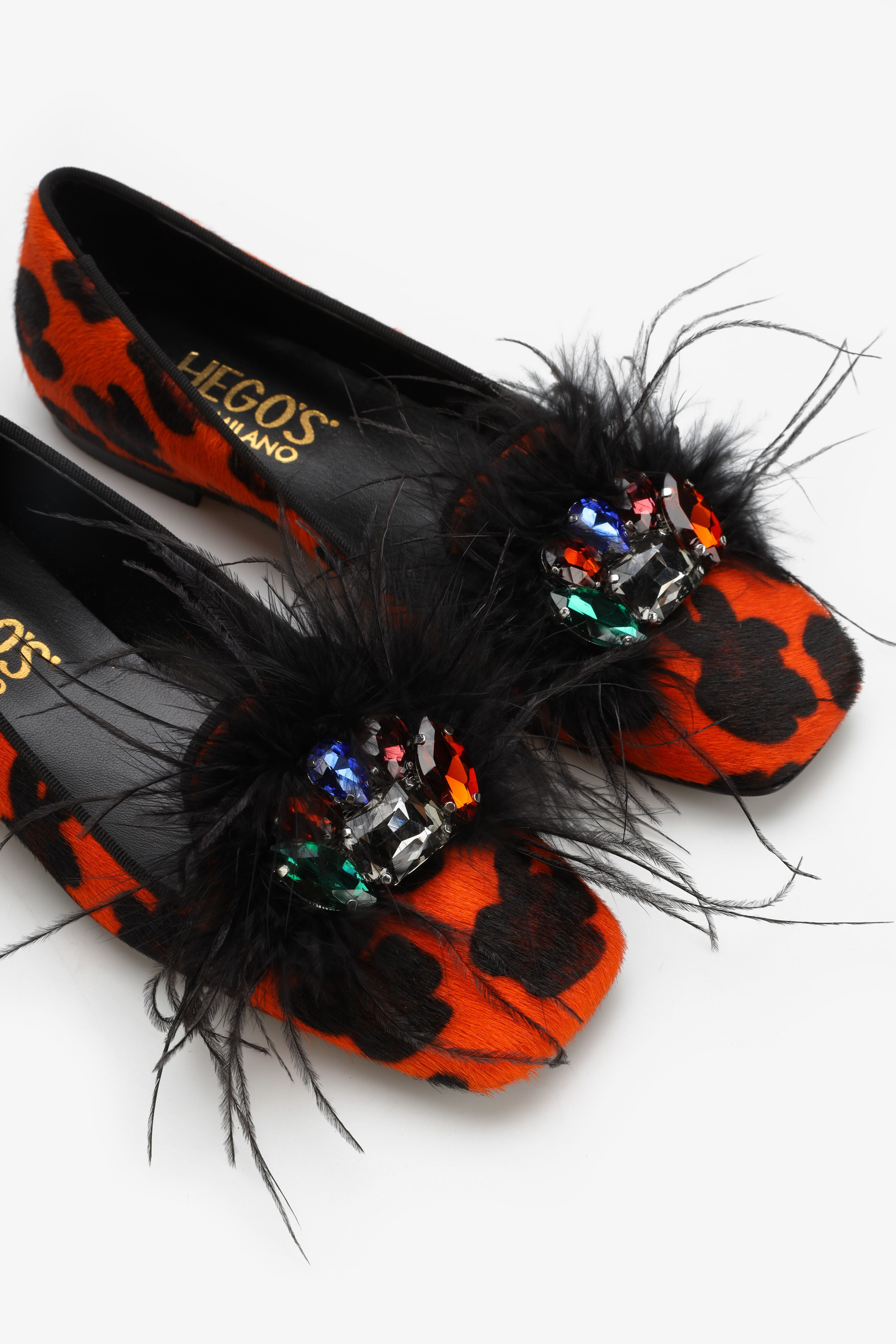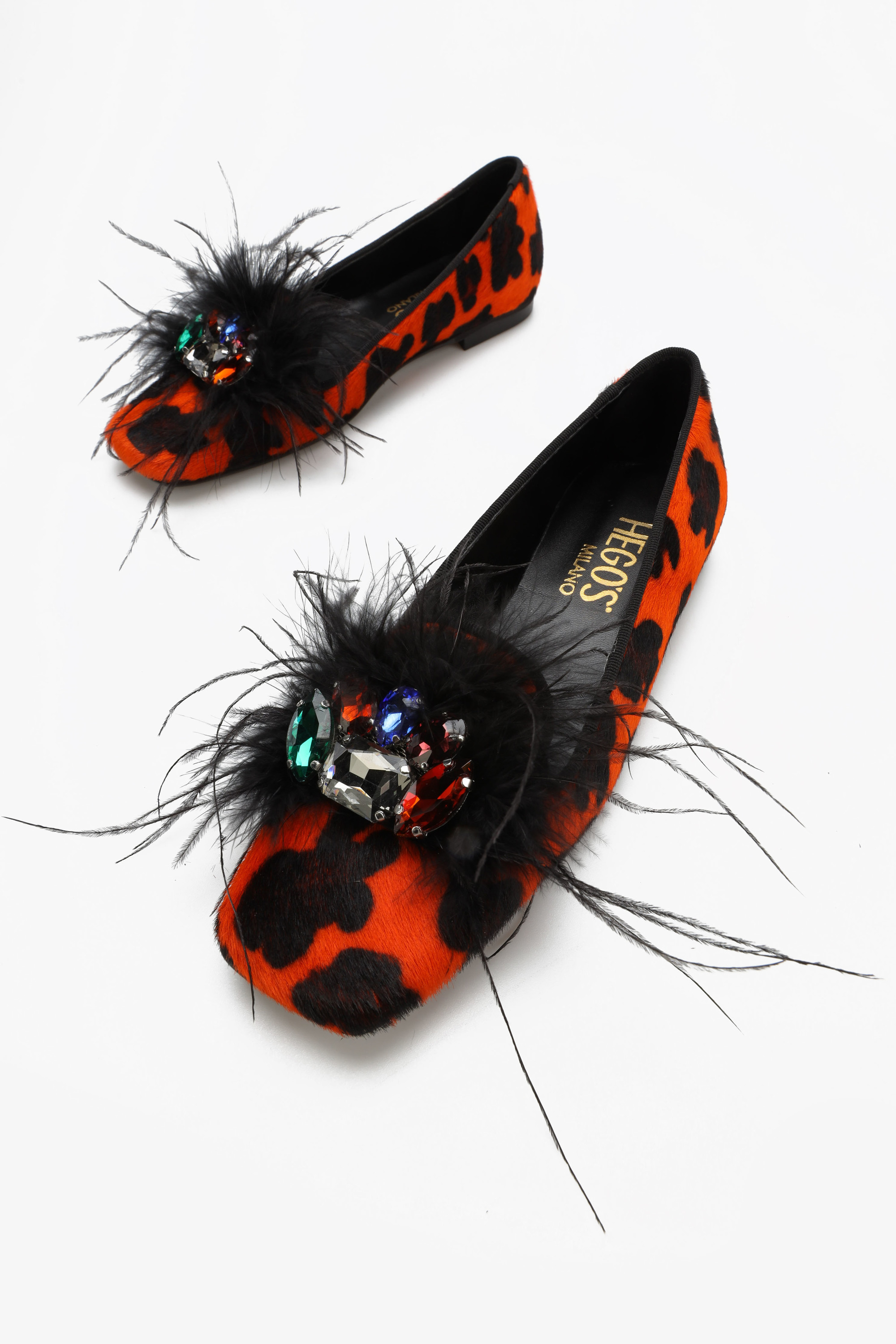Limitowana kolekcja mokasynów HEGO'S ze ściętym noskiem zauroczy każdą kobietę, która na co dzień stawia na mocne akcenty w stylizacjach. Wyprawiane z najwyższej jakości skóry gwarantują wygodę na wiele godzin eksploatacji. Wyrazisty zwierzęcy print w połączeniu z końskim włosiem nadaje im wytworności oraz klasy. Biżuteryjna broszka z piórami kontrastuje z cholewą obuwia, co sprawia, że nie da się obok nich przejść obojętnie.