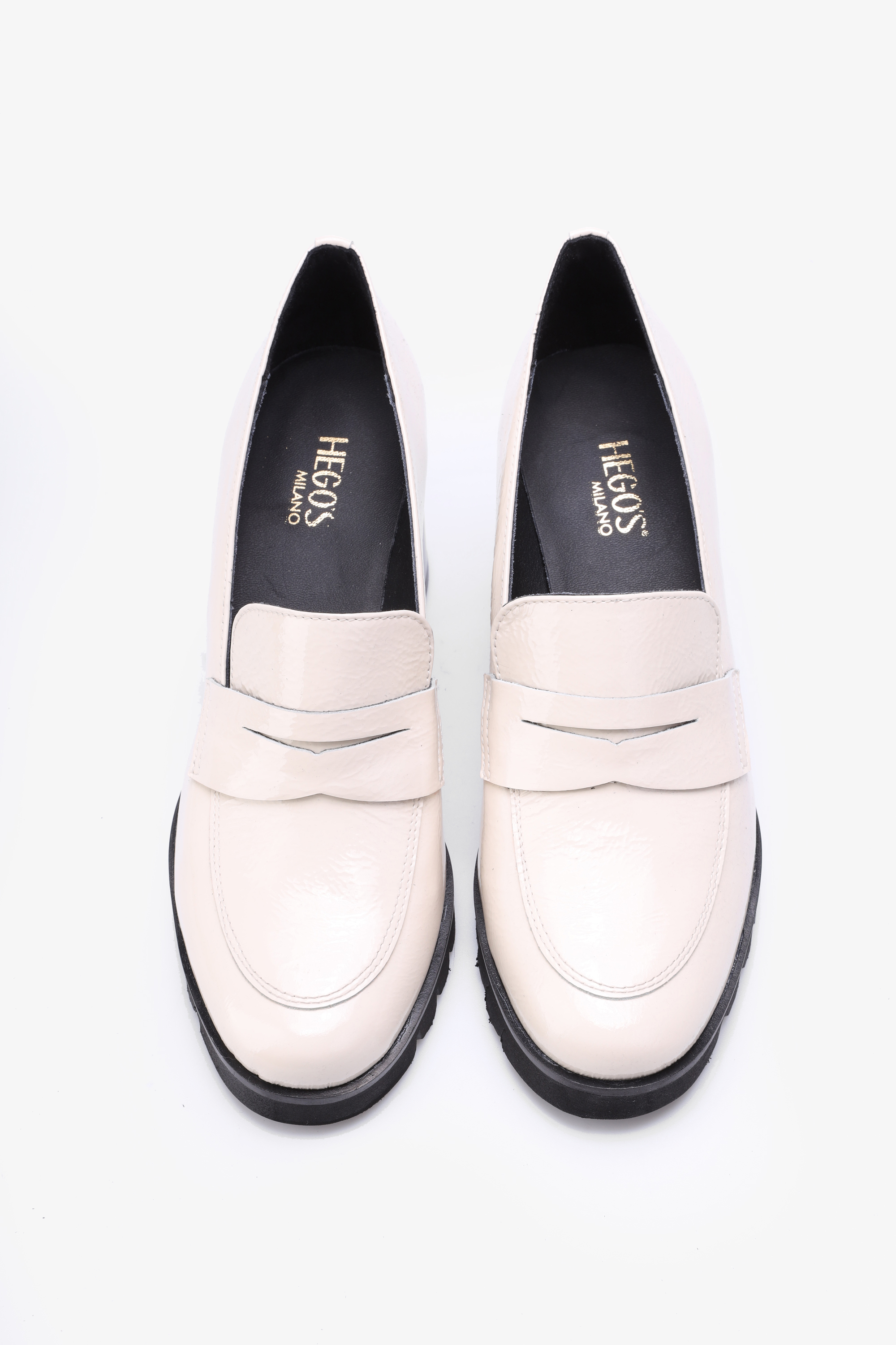 KREMOWE MOKASYNY NA SŁUPKU HEGO'S MILANO