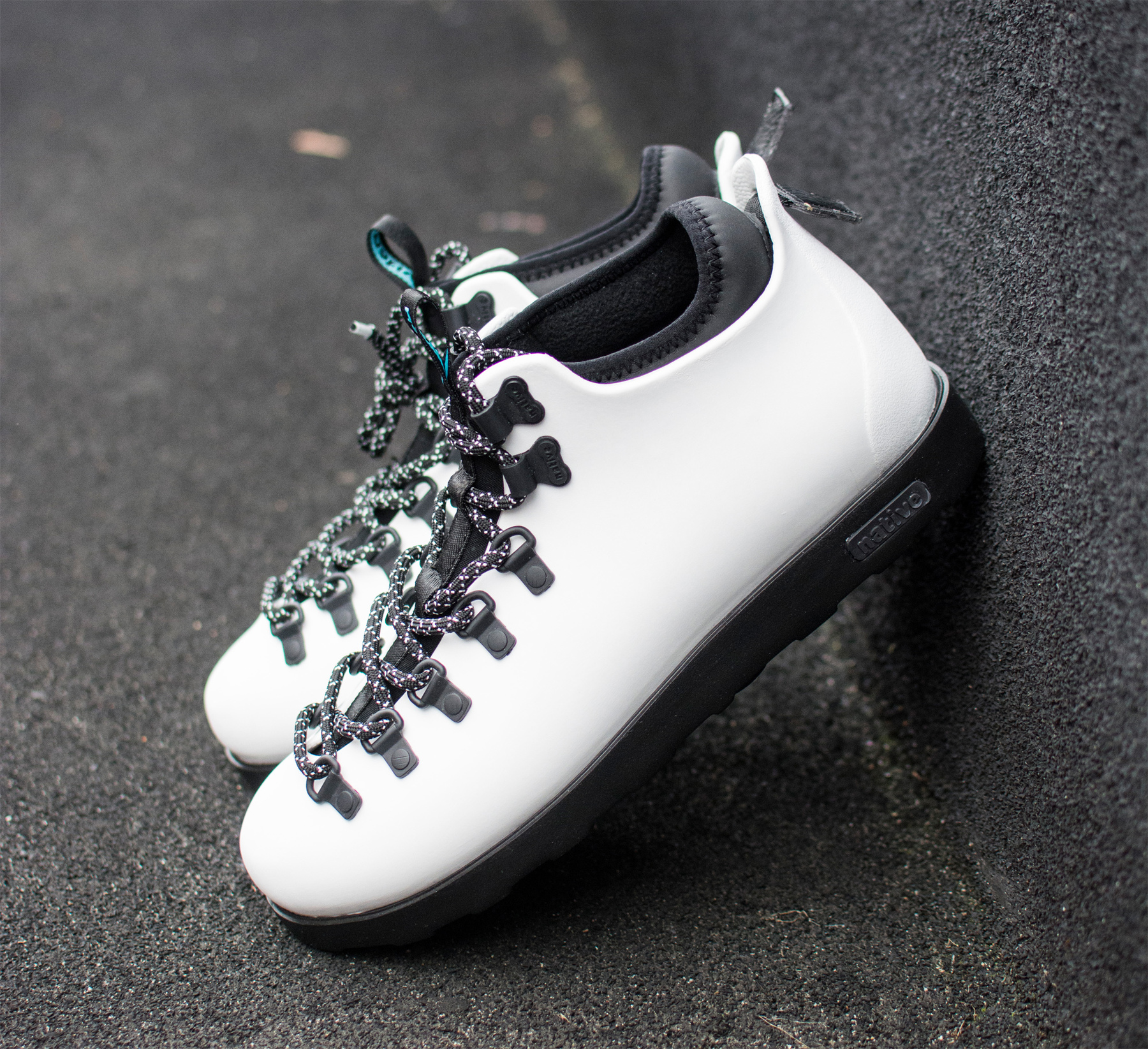 Native Fitzsimmons to wytrzymałe buty na mokrą jesień i typową polską zimę. Posiadają oryginalną cholewkę z pianki EVA z powłoką ułatwiającą czyszczenie, do tego wewnętrzną polarową wkładkę, która zapewnia stopom ciepło i odprowadza wilgoć. Podeszwa zapewnia odpowiednią przyczepność. Pasek na pięcie ułatwia zkaładnie obuwia. W zestawie są 2 pary sznurówek.