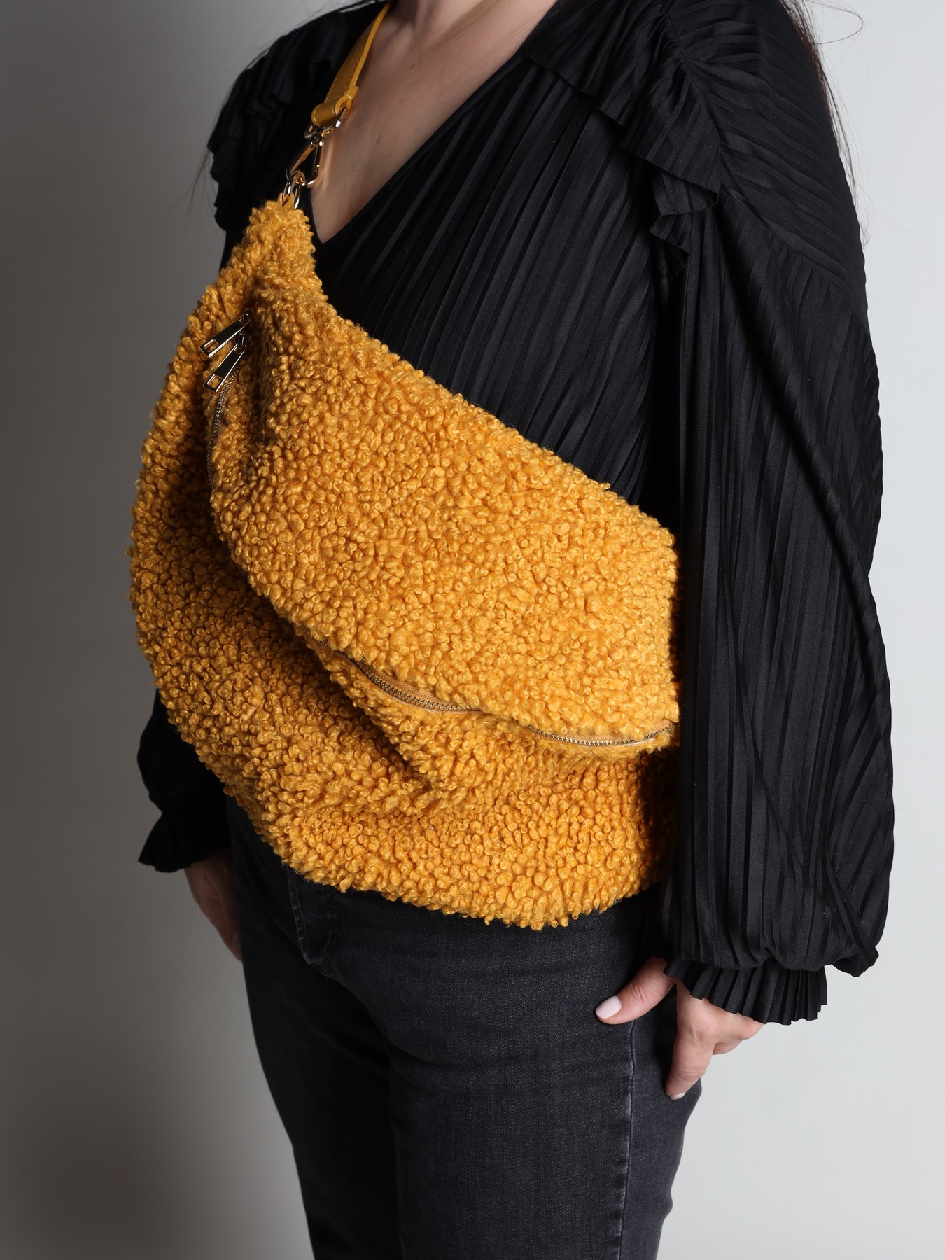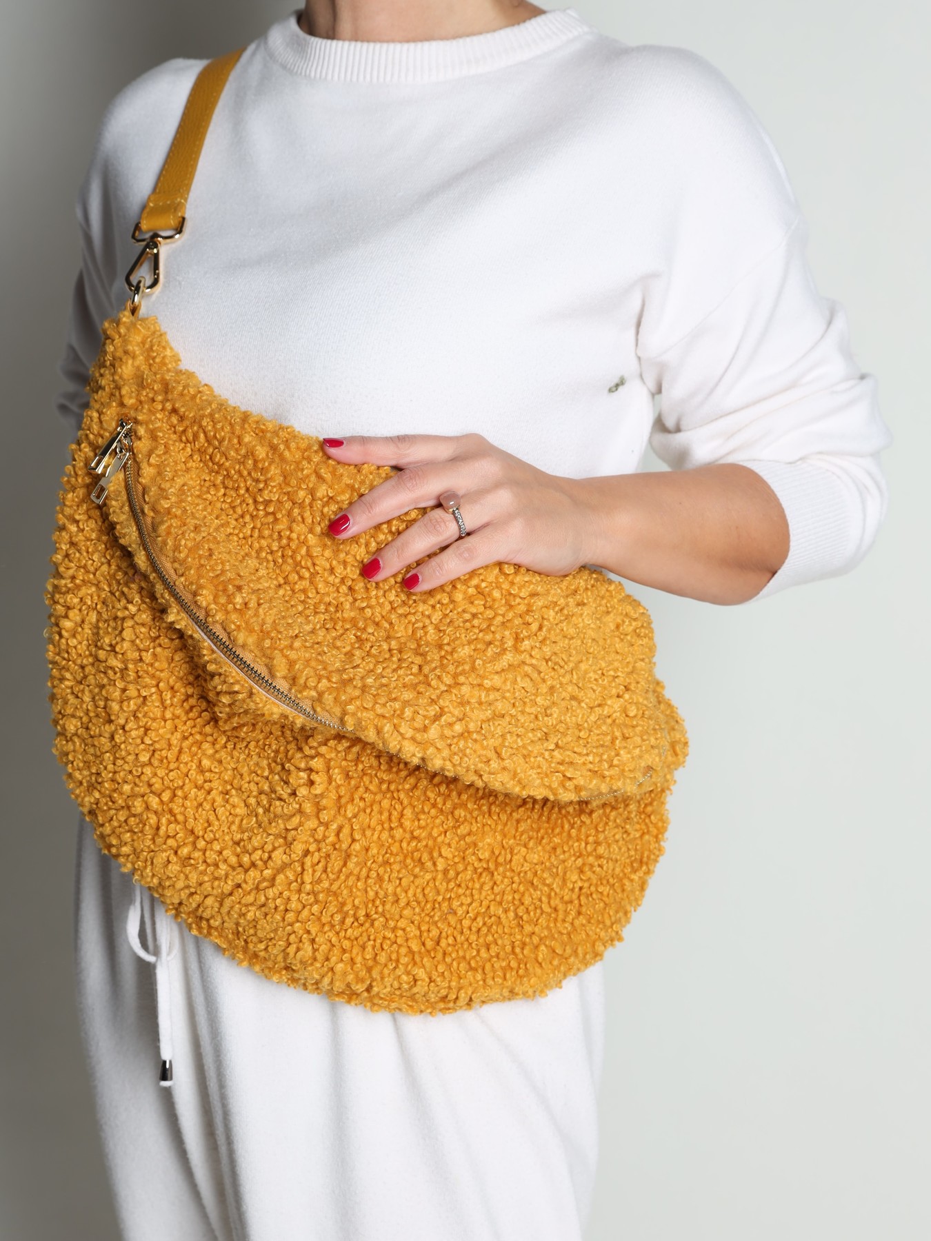 Duża nerka damska wykonana jest z miękkiej takniny TEDDY.  To must have sezonu. Wnętrze to jedna, pojemna kieszeń, która pomieści wiele rzeczy. Nerka zapinana jest na zamek błyskawiczny. Posiada regulowany pasek. Dostępna w kilku wariantach kolorystycznych do wyboru.