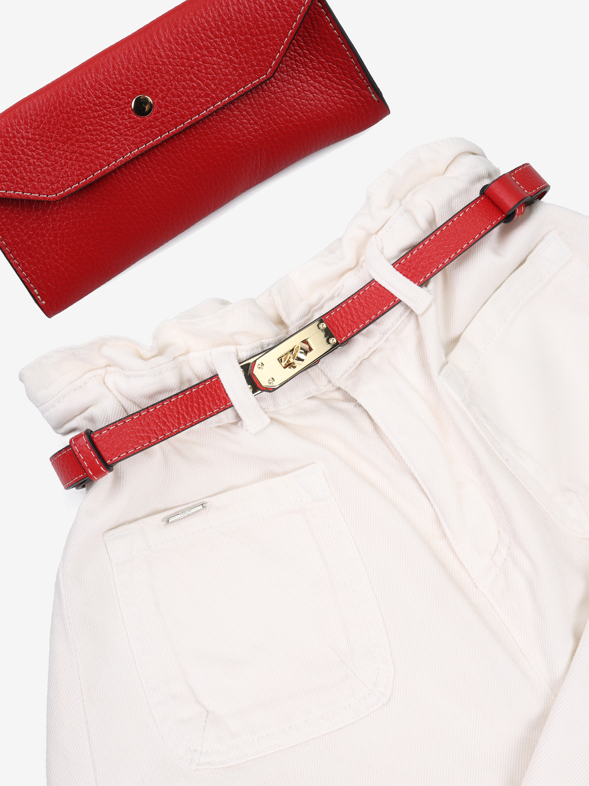Skórzana, wielofunkcyjna nerka z odpinanym paskiem. Można nosić na dwa sposoby: jako nerka lub pasek do spodni, sukienki czy żakietu.