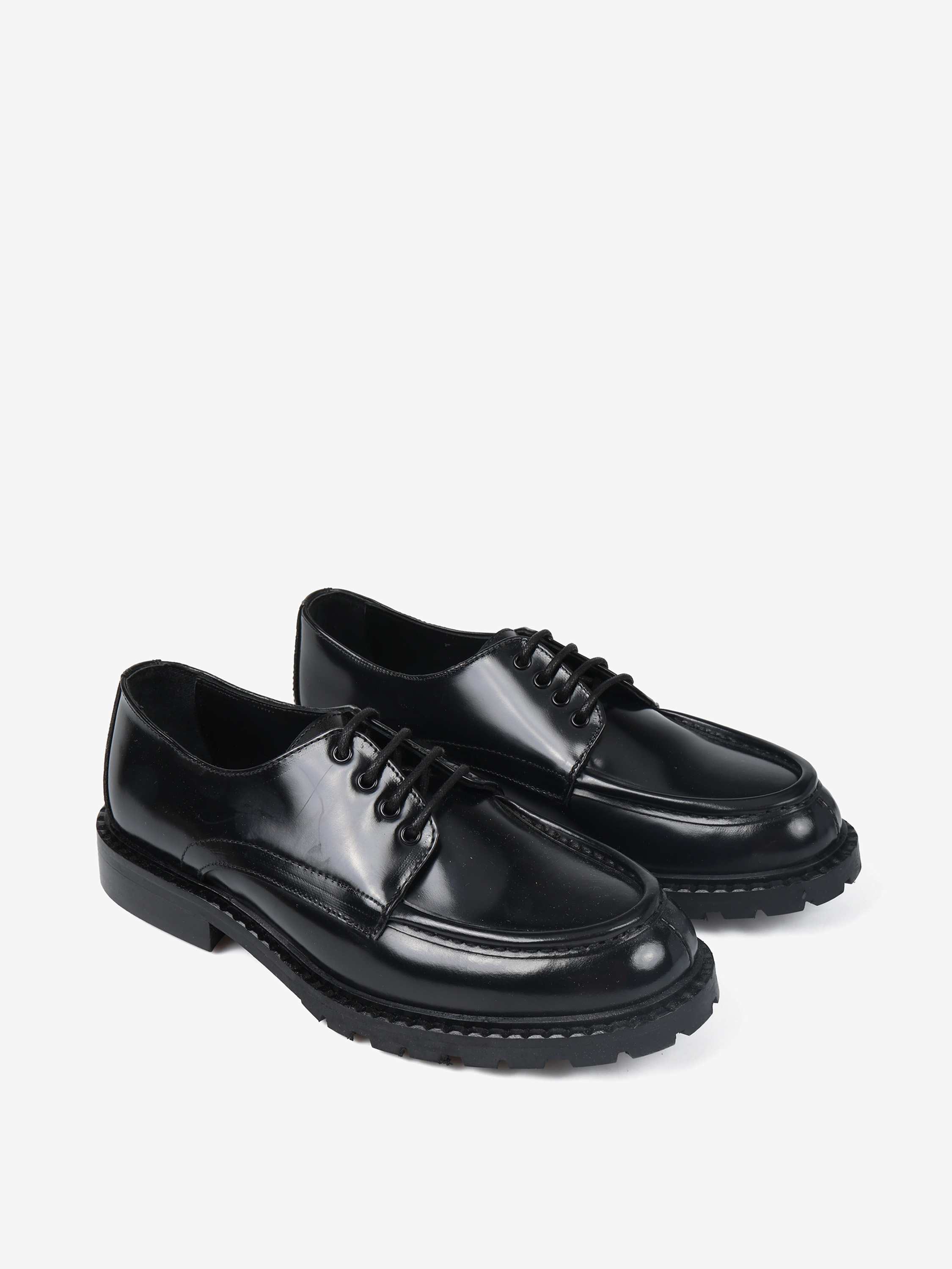 Klasyczne, sznurowane półbuty oxford wykonane z wysokopolerowanej skóry.