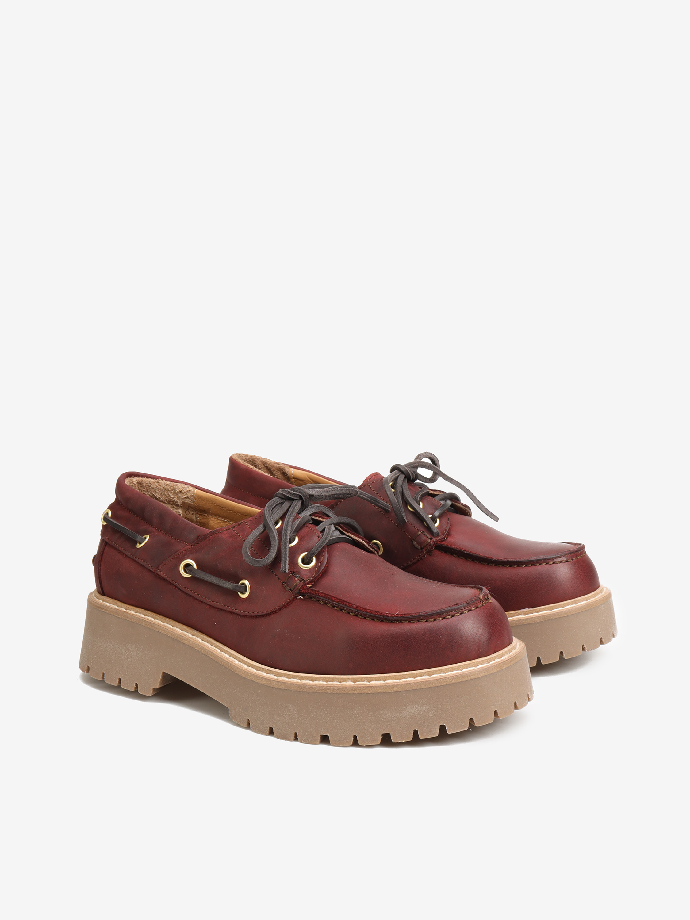 Mokasyny na platformie z wiązaniem umożliwiającym idealne dopasowanie. Dodatkowe sznurowadła w kontrastującym, różowym kolorze.