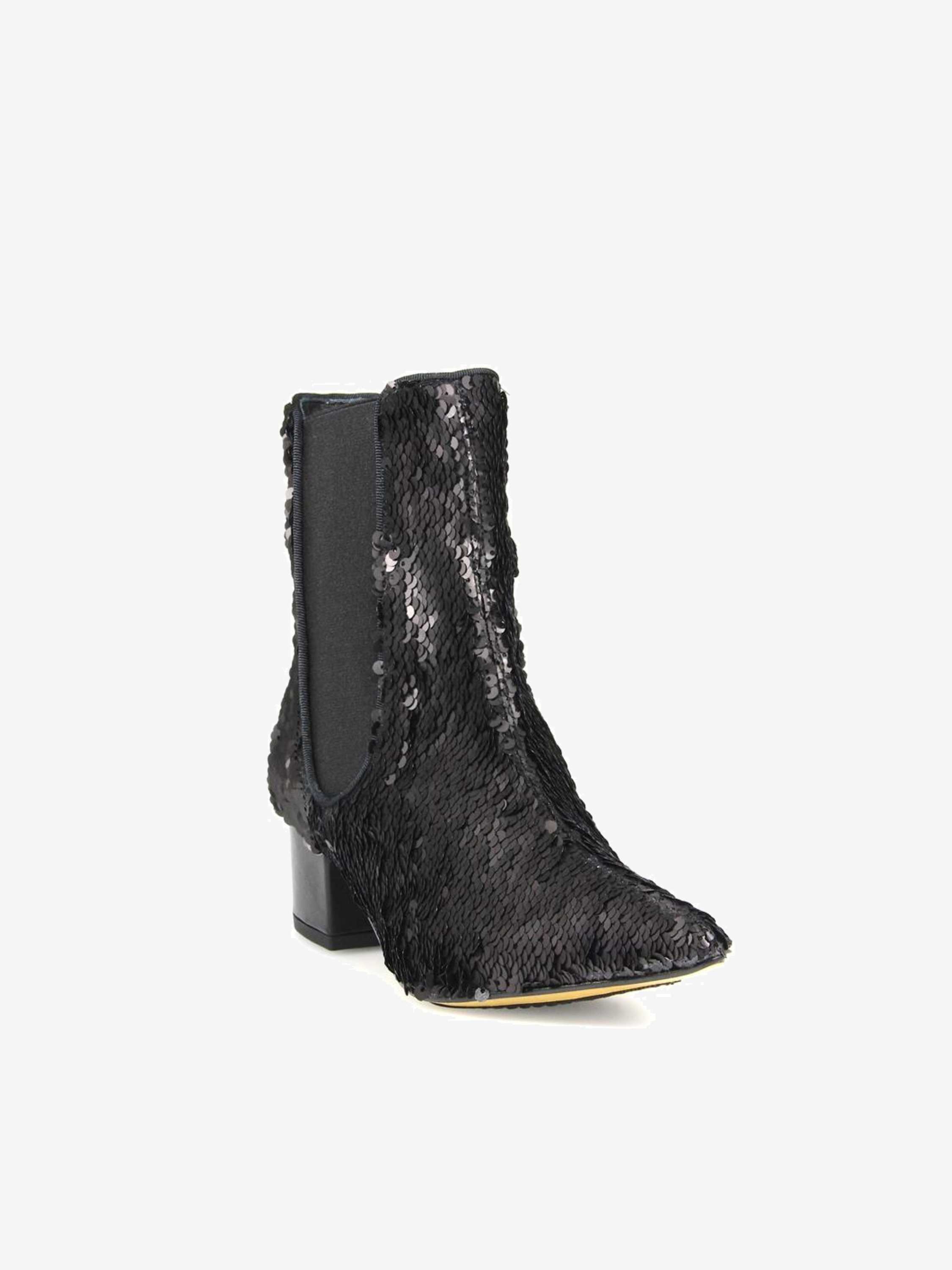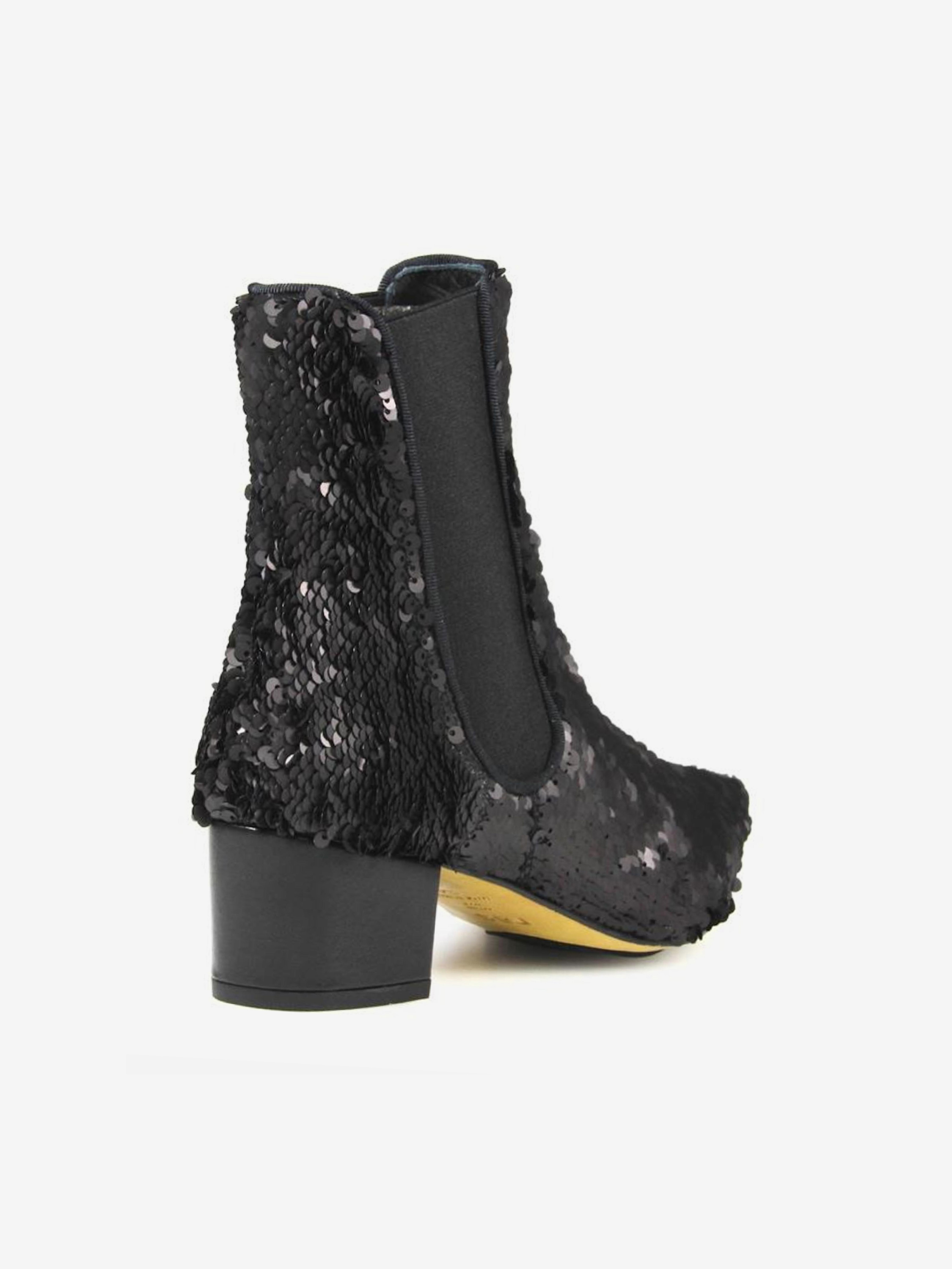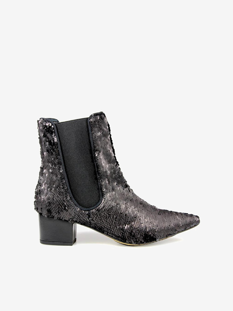 Szykowne botki w szpic wykonane z materiału typu cekiny,w kolorze czarnym. Jednym ruchem ręki możesz je zmienić na kolor szary:)