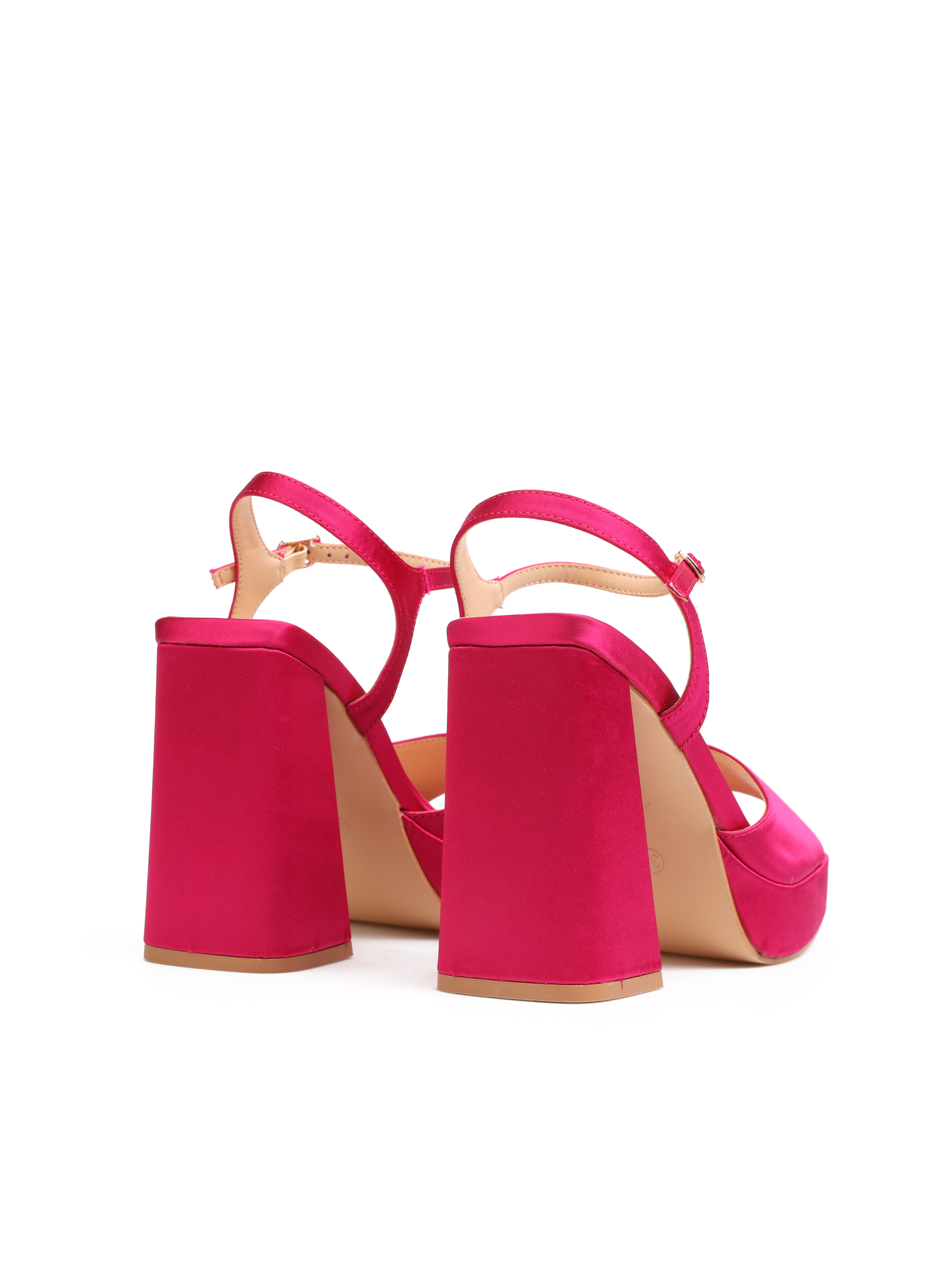 Sandały na platformie  to TOP Trend sezonu. Cholewka wykonana jest z takniny satynowej. Model w modowym kolorze z wygodnym obcasem na słupku. Zapinany regulowanym paskiem na sprzączkę.