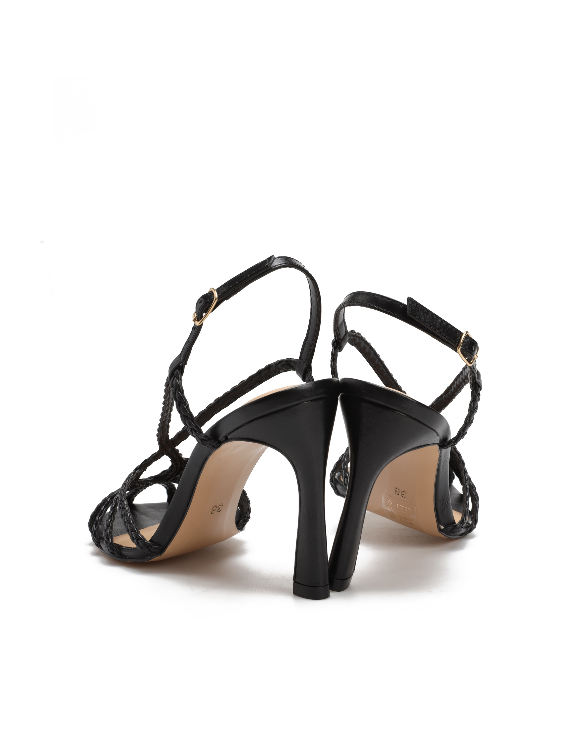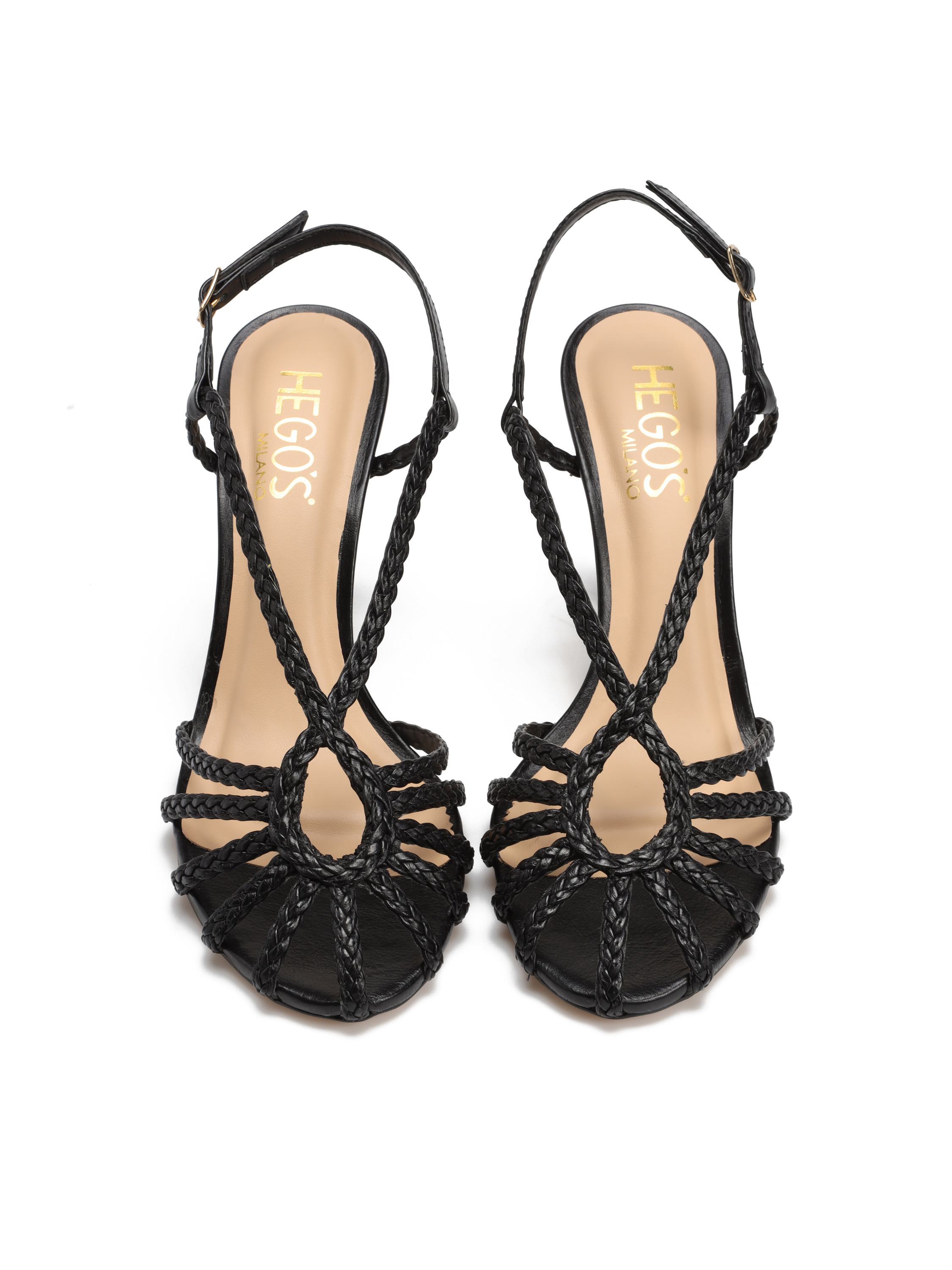 Sandały z odkrytą piętą HEGO'S Milano to model, który pokochały Włoszki. Sandały damskie zaprojektowane z plecionych pasków, wykonane są z naturalnej skóry licowej. Stabilny, szeroki obcas na szpilce w połączeniu ze skórzaną wkładką zapewni komfort podczas użytkowania obuwia. Zapinane wokoł kostki regulowanym paskiem na sprzączkę. Cholewka w ponadczasowym, czarnym kolorze. Fason z zabudowanymi palcami to Trend prosto z włoskich ulic. Idealne na lato.