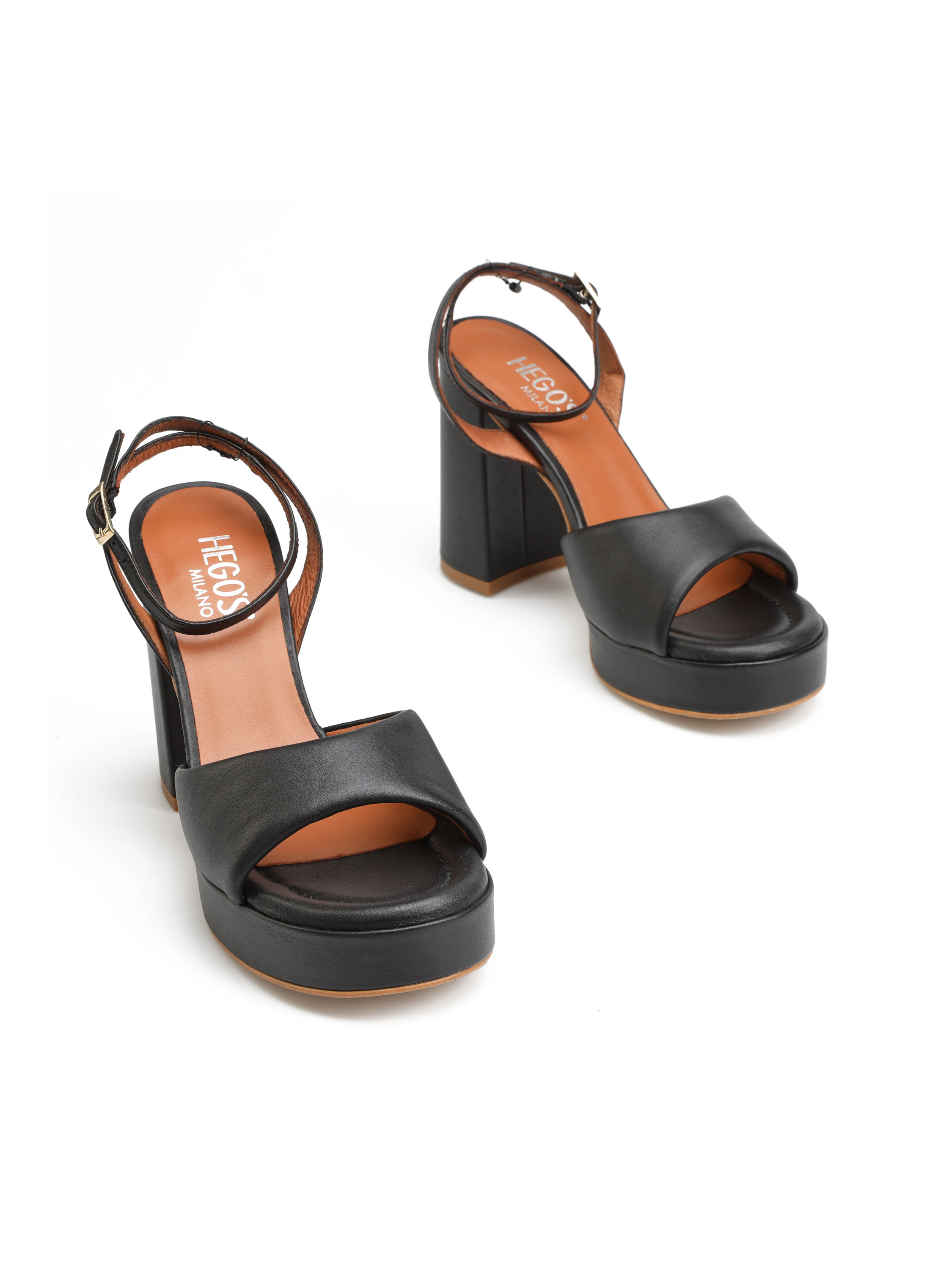 Sandały na platformie HEGO'S Milano to TOP Trend sezonu. Sandały w klasycznym czarnym kolorze w całości wykonane są z naturalnej skóry Nappa. Najmodniejsza w tym sezonie platforma i stabilny obcas na słupku to fason zaprojektowany przez włoskich projektantów HEGO'S Milano. Regulowany pasek zapinany wokół kostki odpowiada za stabilny krok.