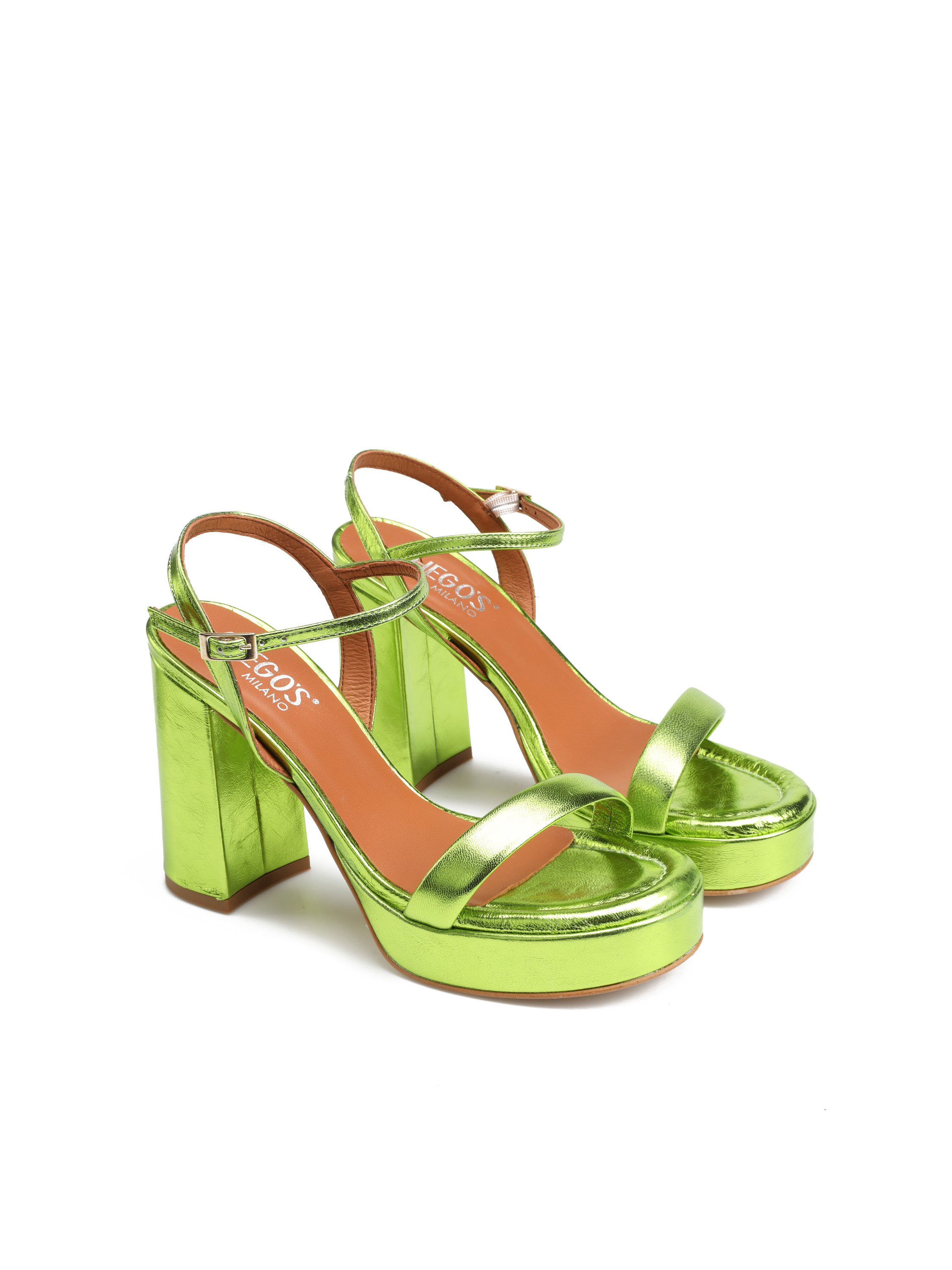 Sandały na platformie HEGO'S Milano to TOP Trend sezonu. Sandały damskie w modowym, metalicznym kolorze w całości wykonane są z naturalnej skóry Nappa. Najmodniejsza w tym sezonie platforma i stabilny obcas na słupku to fason zaprojektowany przez włoskich projektantów HEGO'S Milano. Regulowany pasek zapinany wokół kostki odpowiada za stabilny krok.