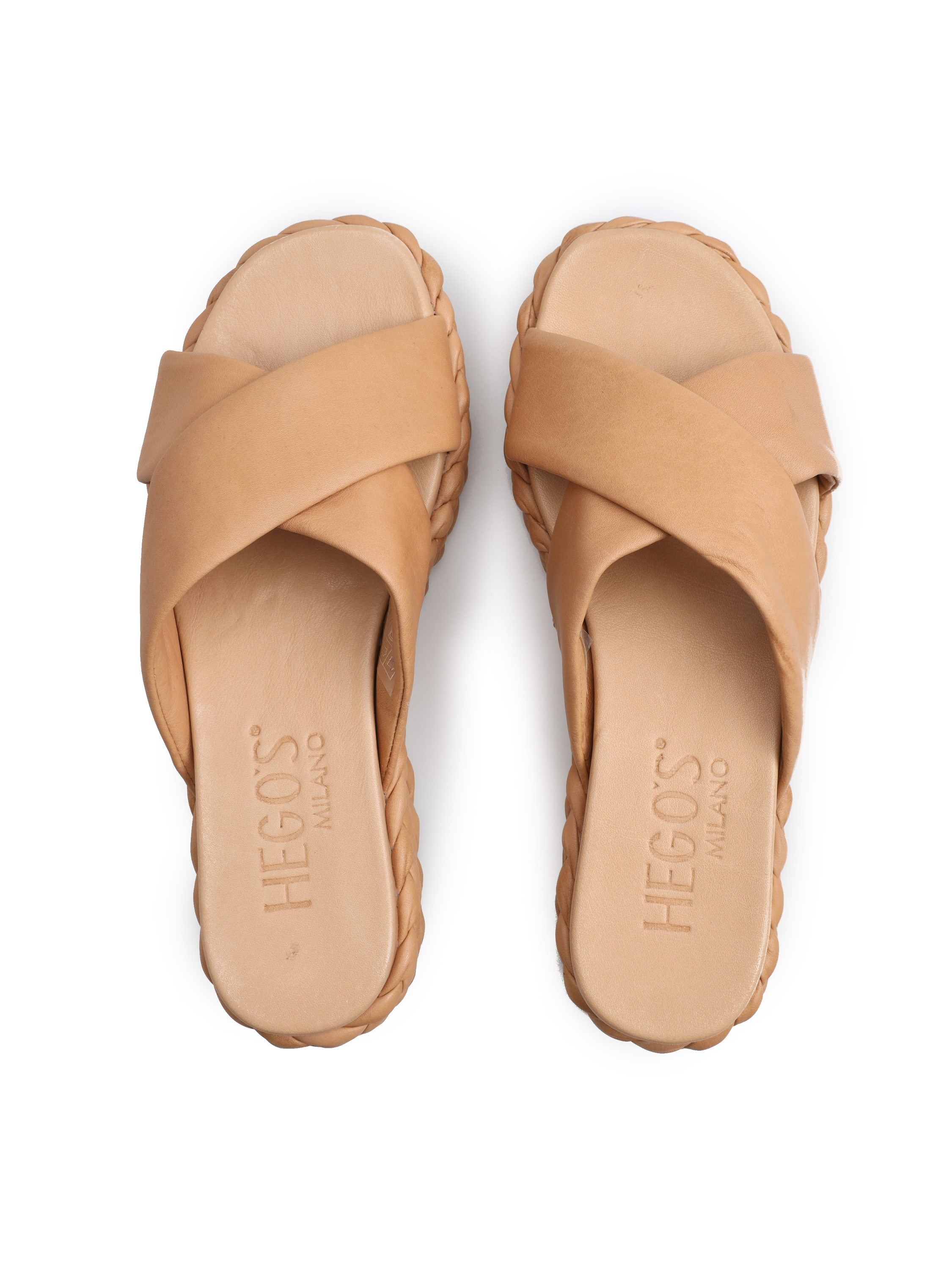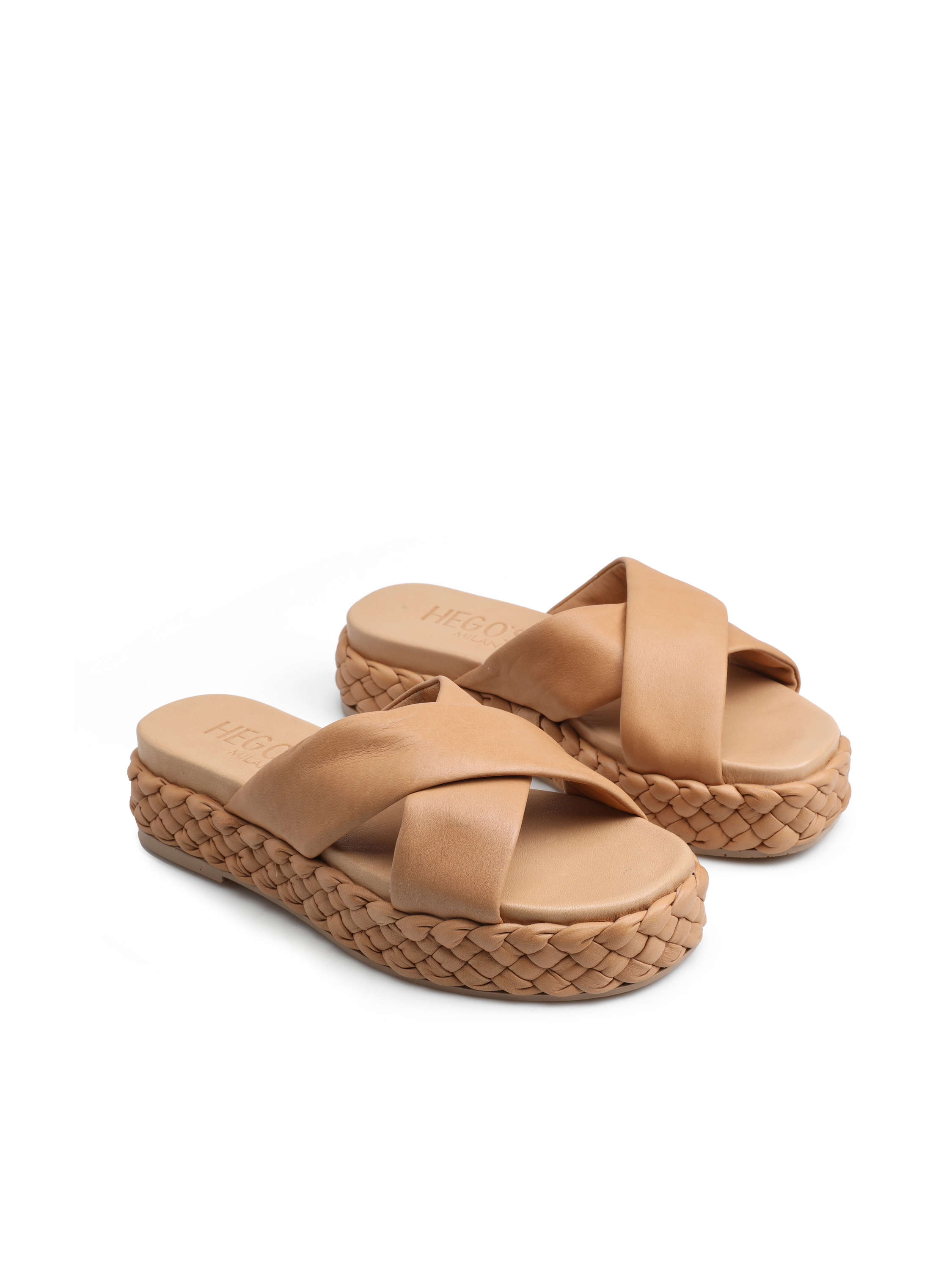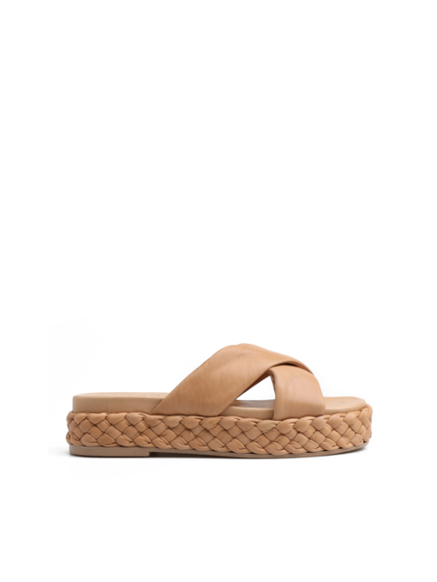 Wsuwane klapki na platformie to model idealny na lato. Prosty fason z dwoma, szerokimi paskami trzyma stopę. Klapki wykonane są z naturalnej skóry. Podeszwa wystająca poza obrys buta zaprojektowana została na wzór modnej plecionki.