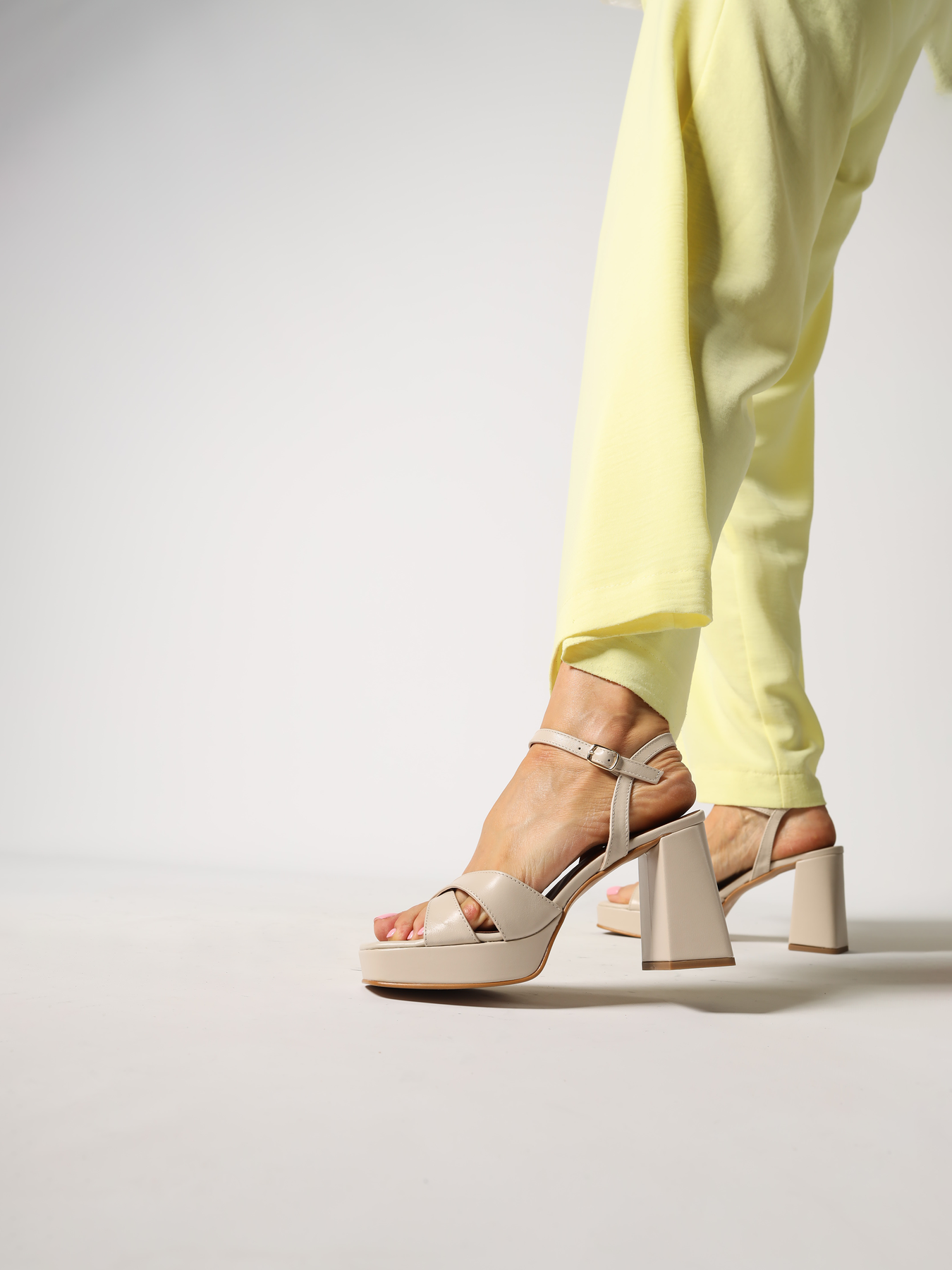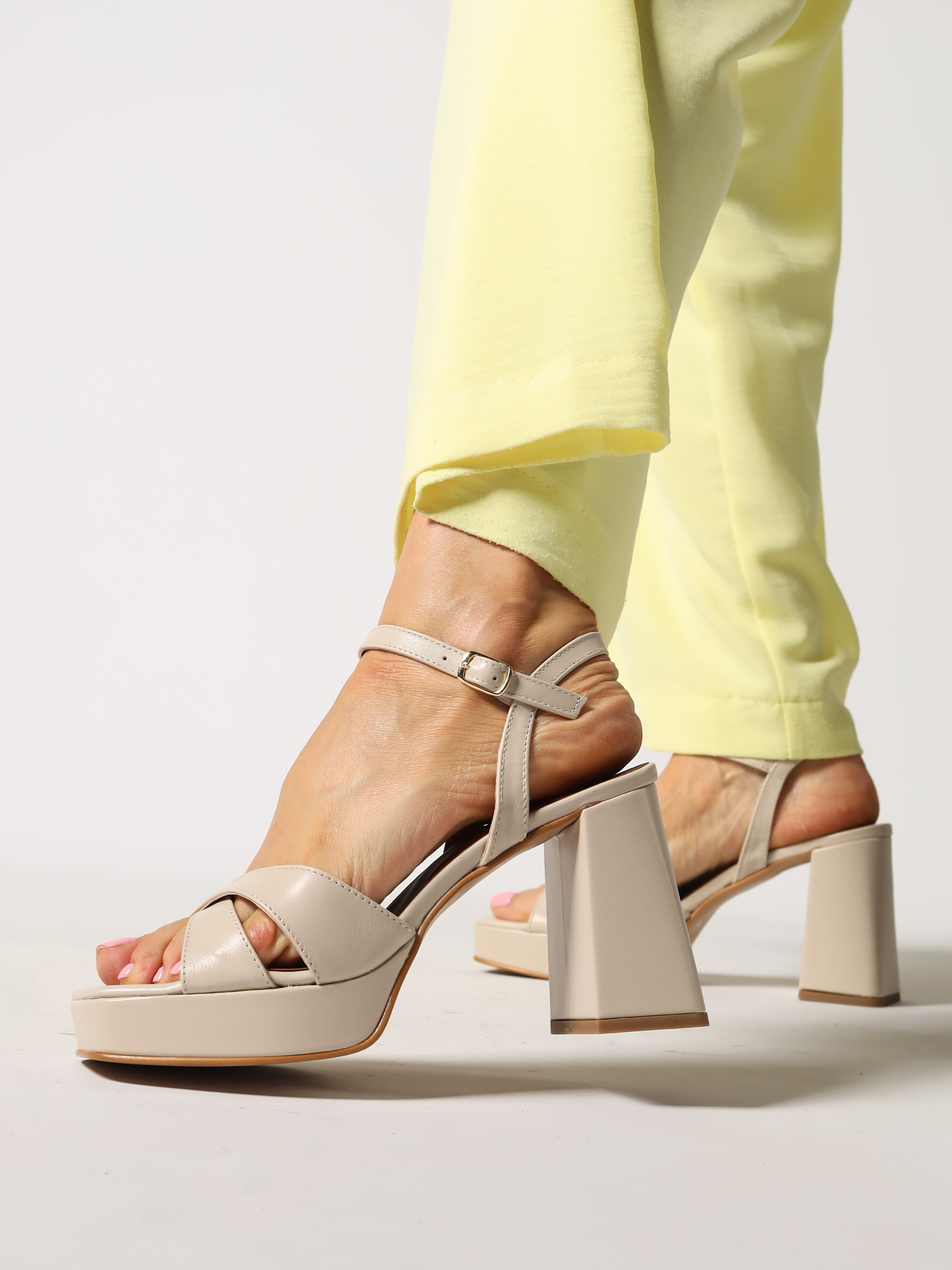 KREMOWY SANDAŁY NA PLATFORMIE HEGO'S Milano