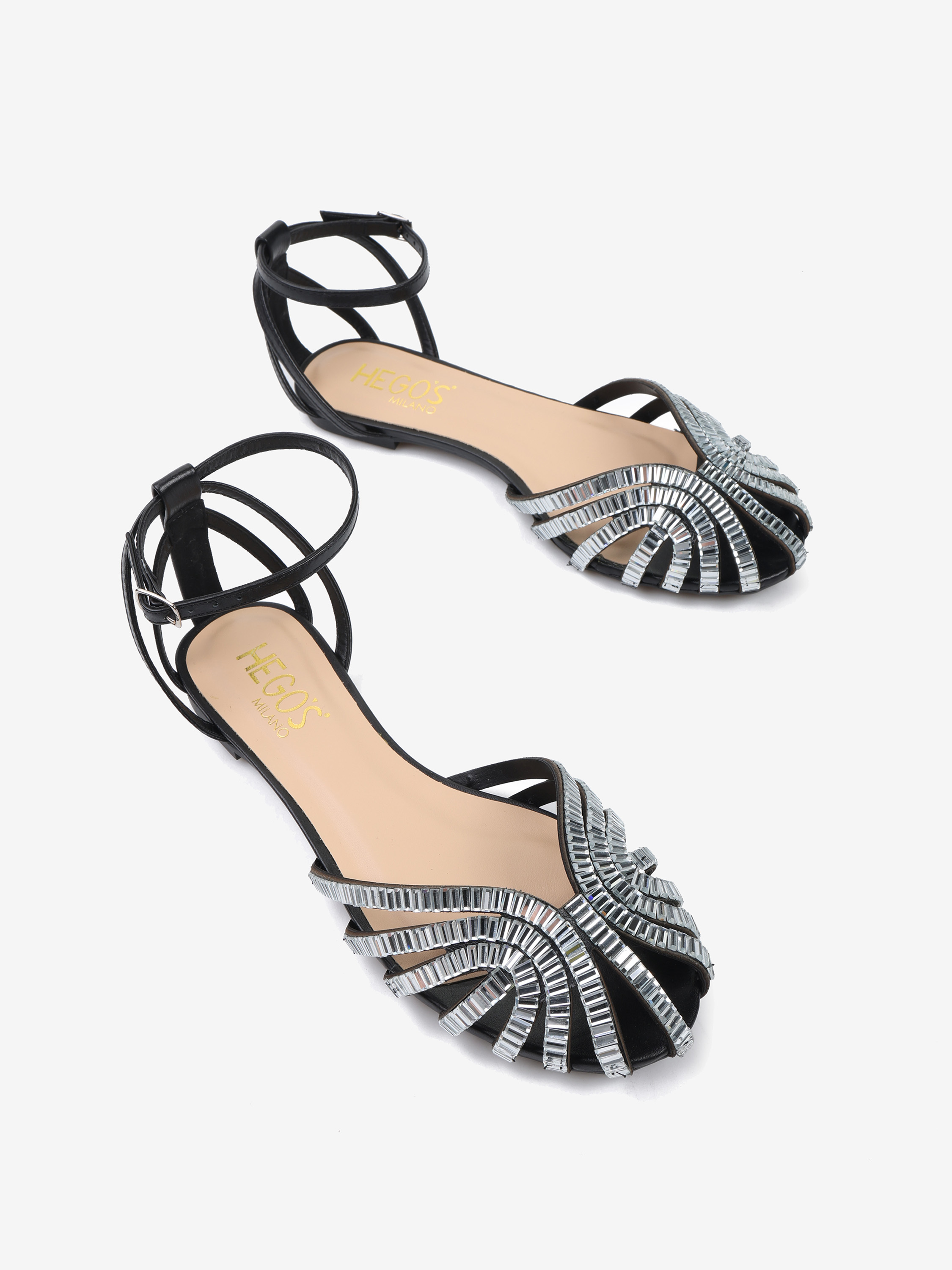 CZARNE SANDAŁY Z KAMIENIAMI HEGO'S Milano