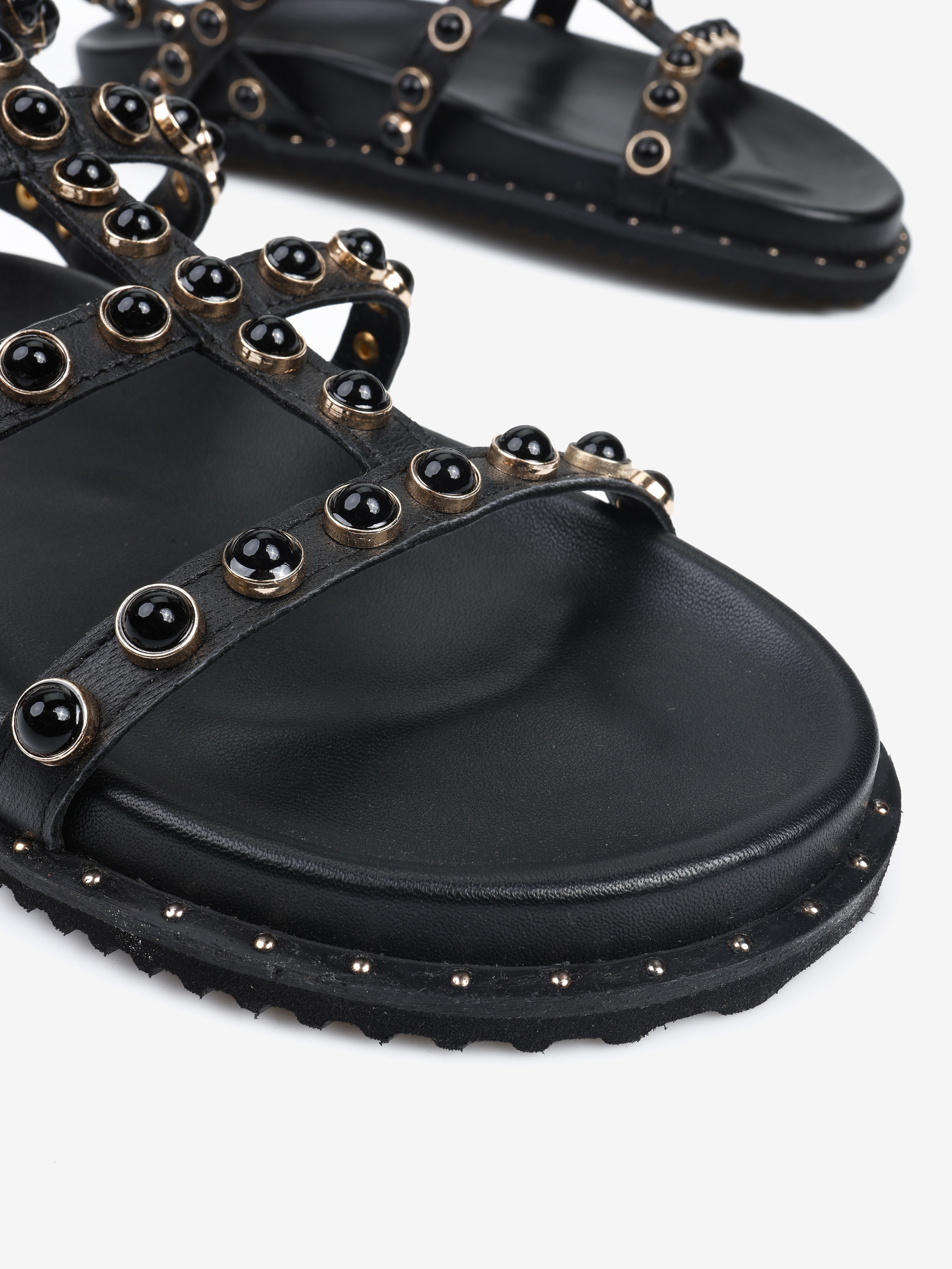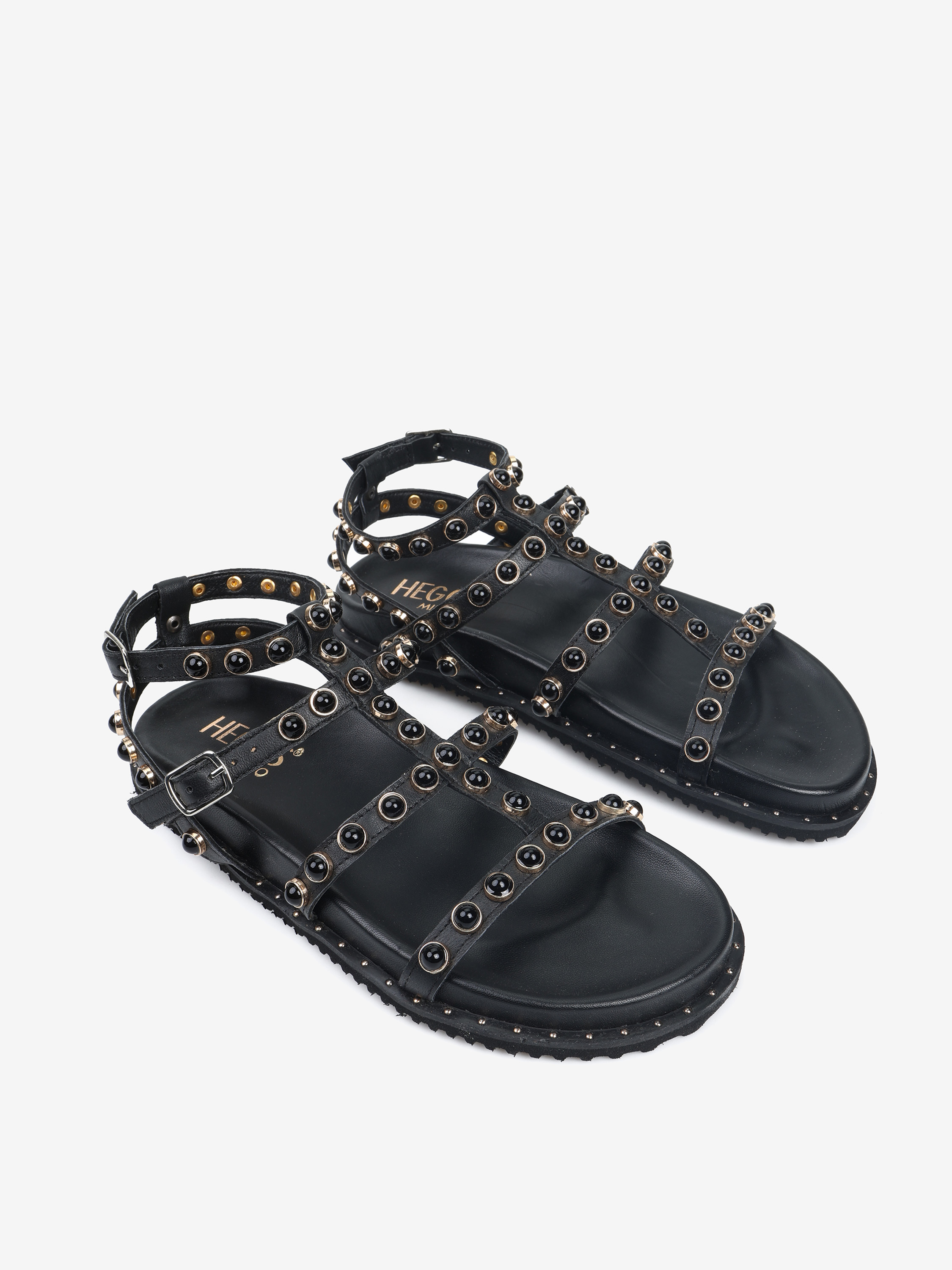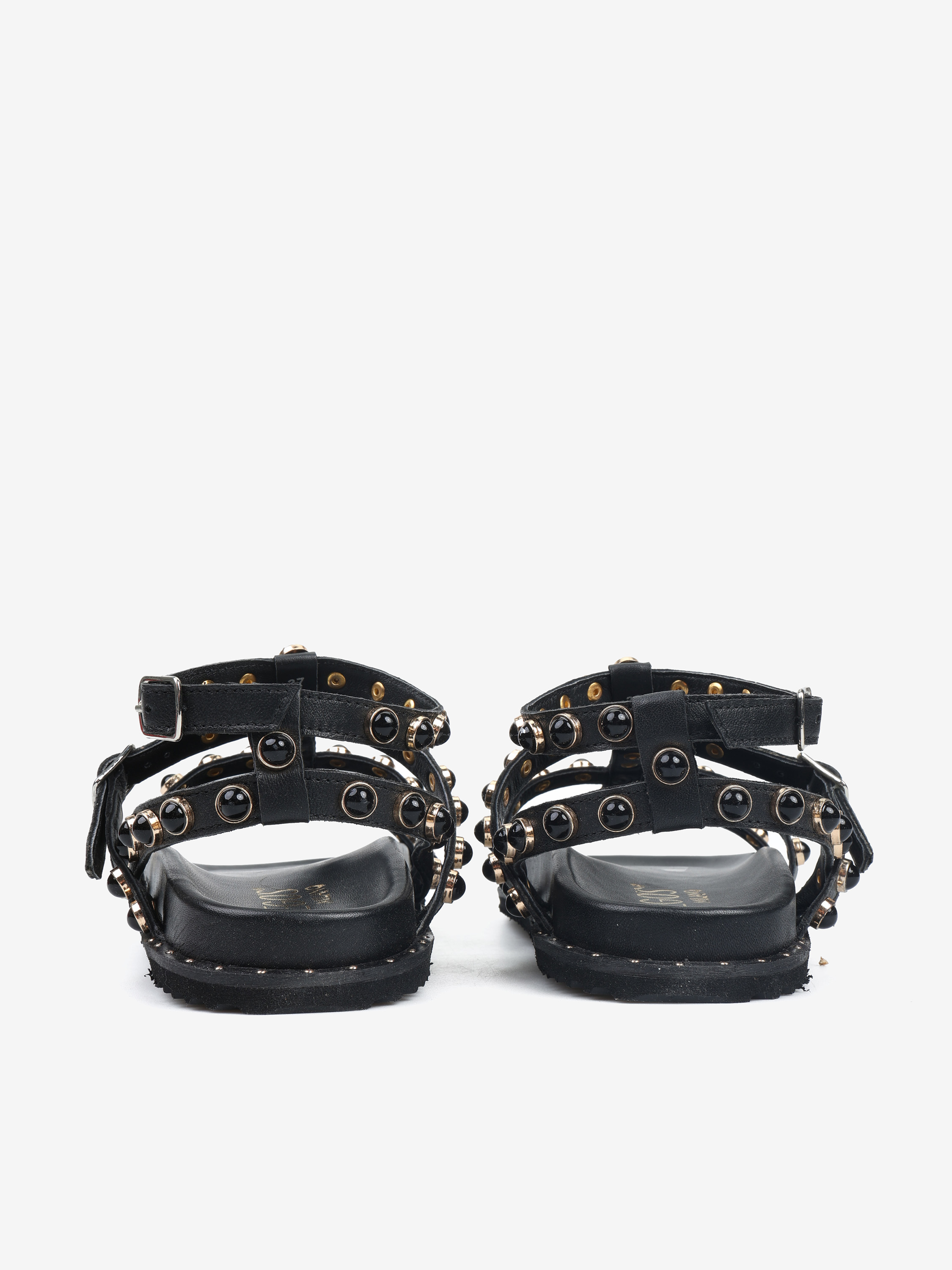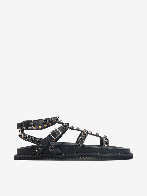 Sandały z ćwiekami wykonane z miękkiej, delikatnej skóry. Regulowane zapięcia przy kostce.