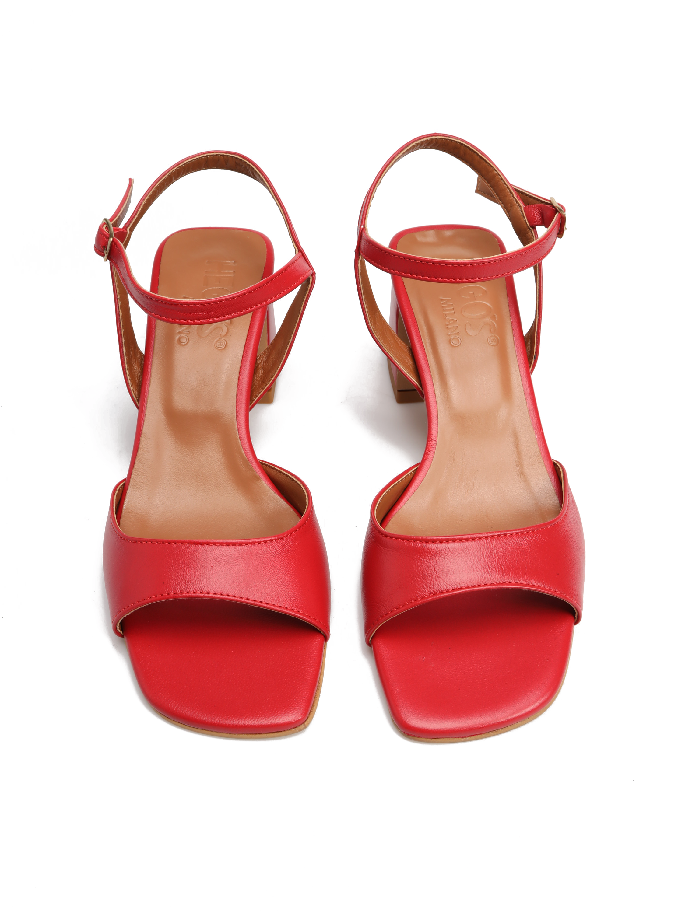 Sandały z kolekcji wiosna-lato wykonane z naturalnej skóry w czerwonym kolorze.