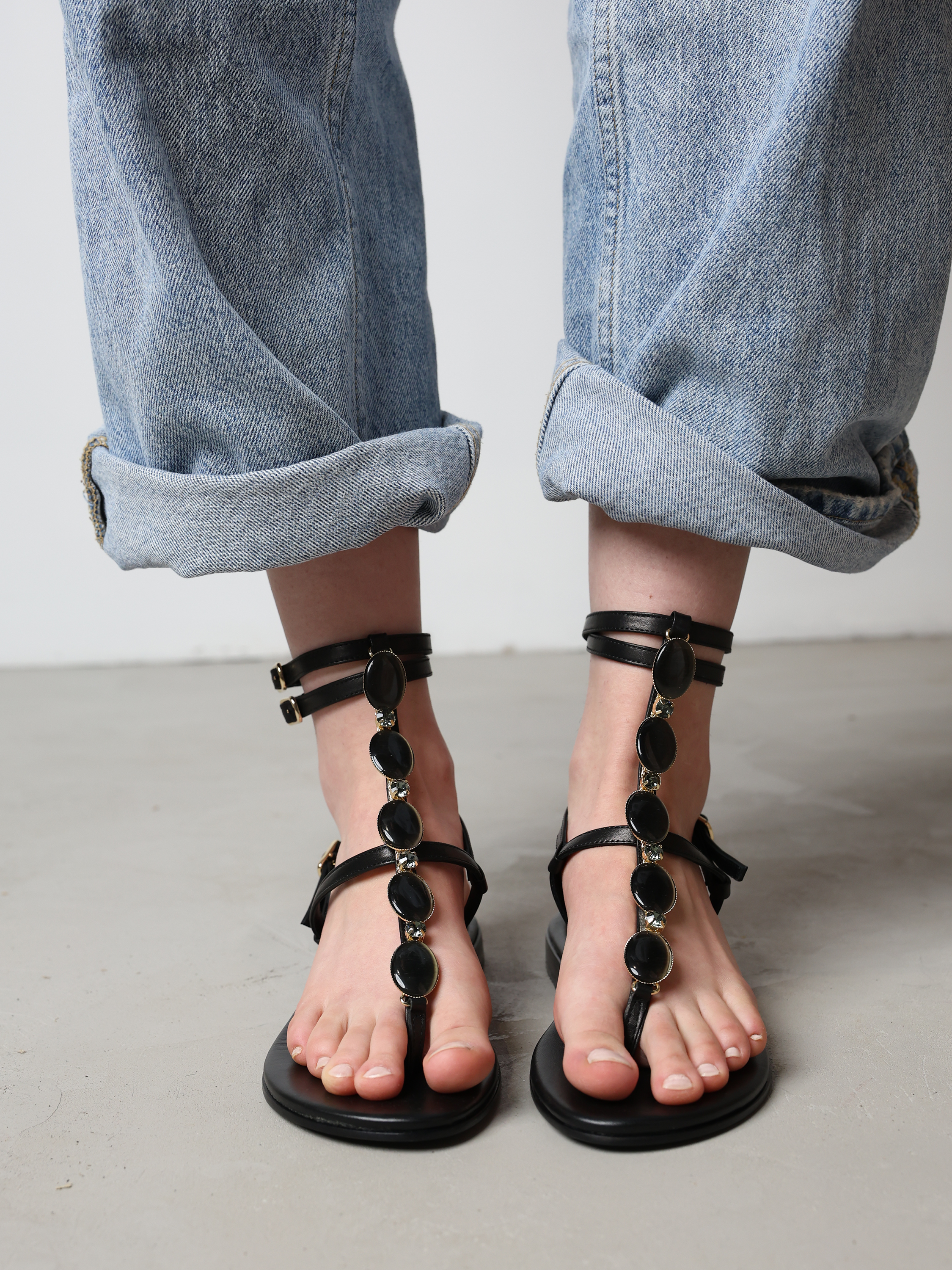 CZARNE SANDAŁY Z KAMIENIAMI HEGO'S Milano
