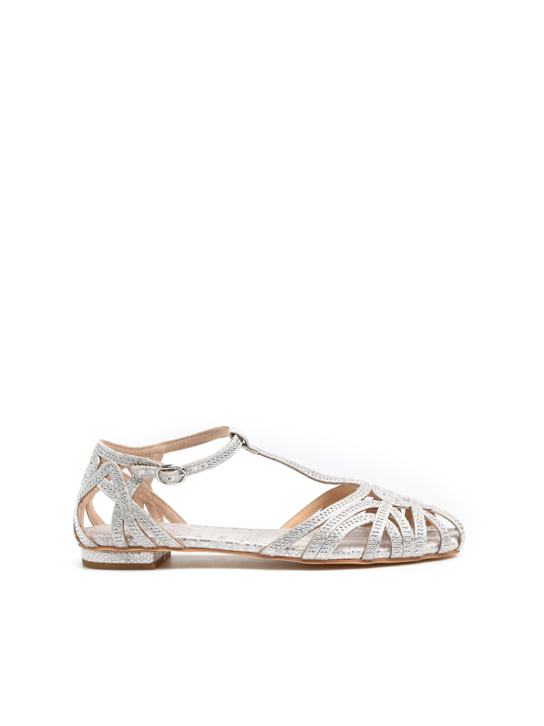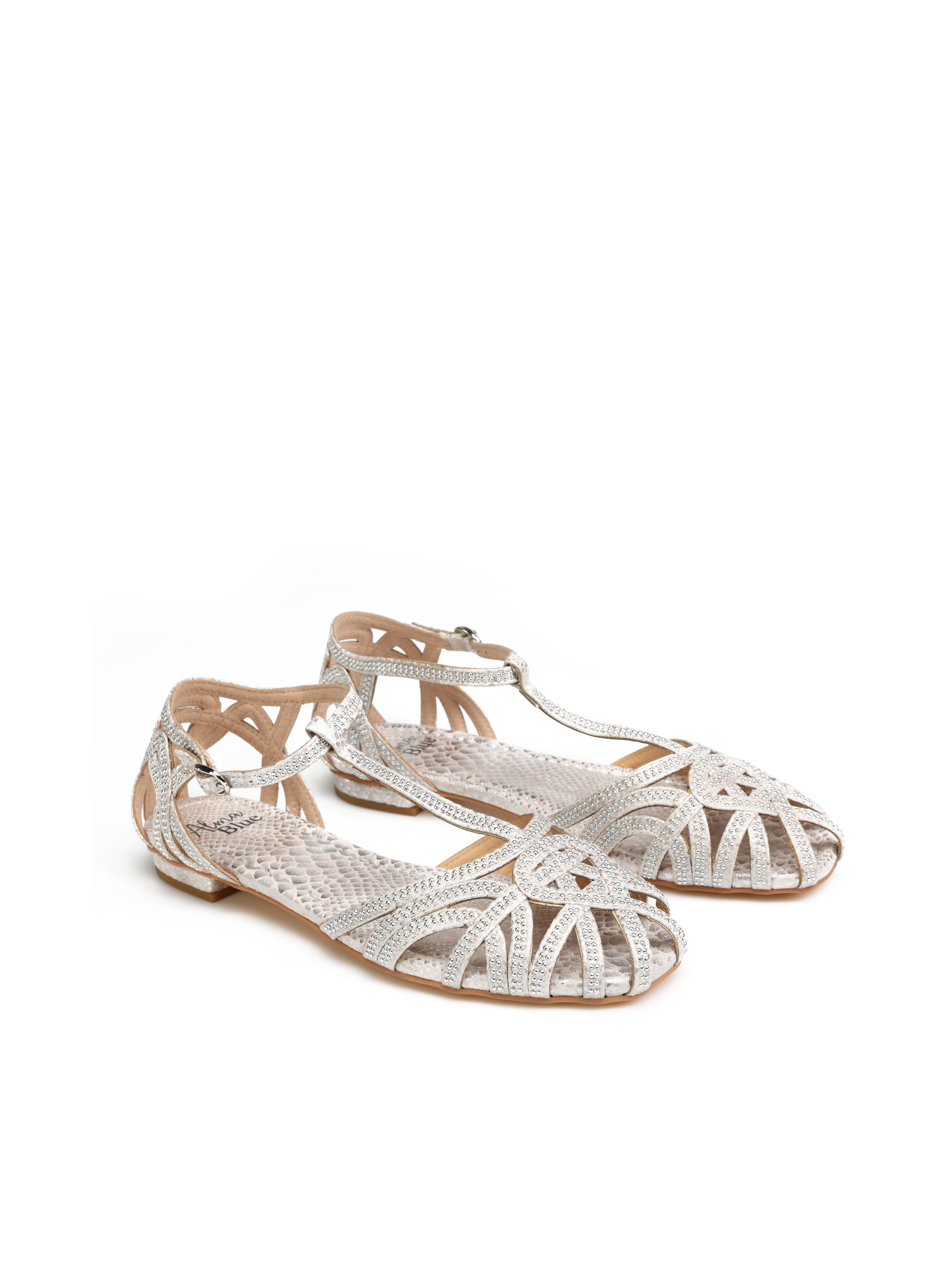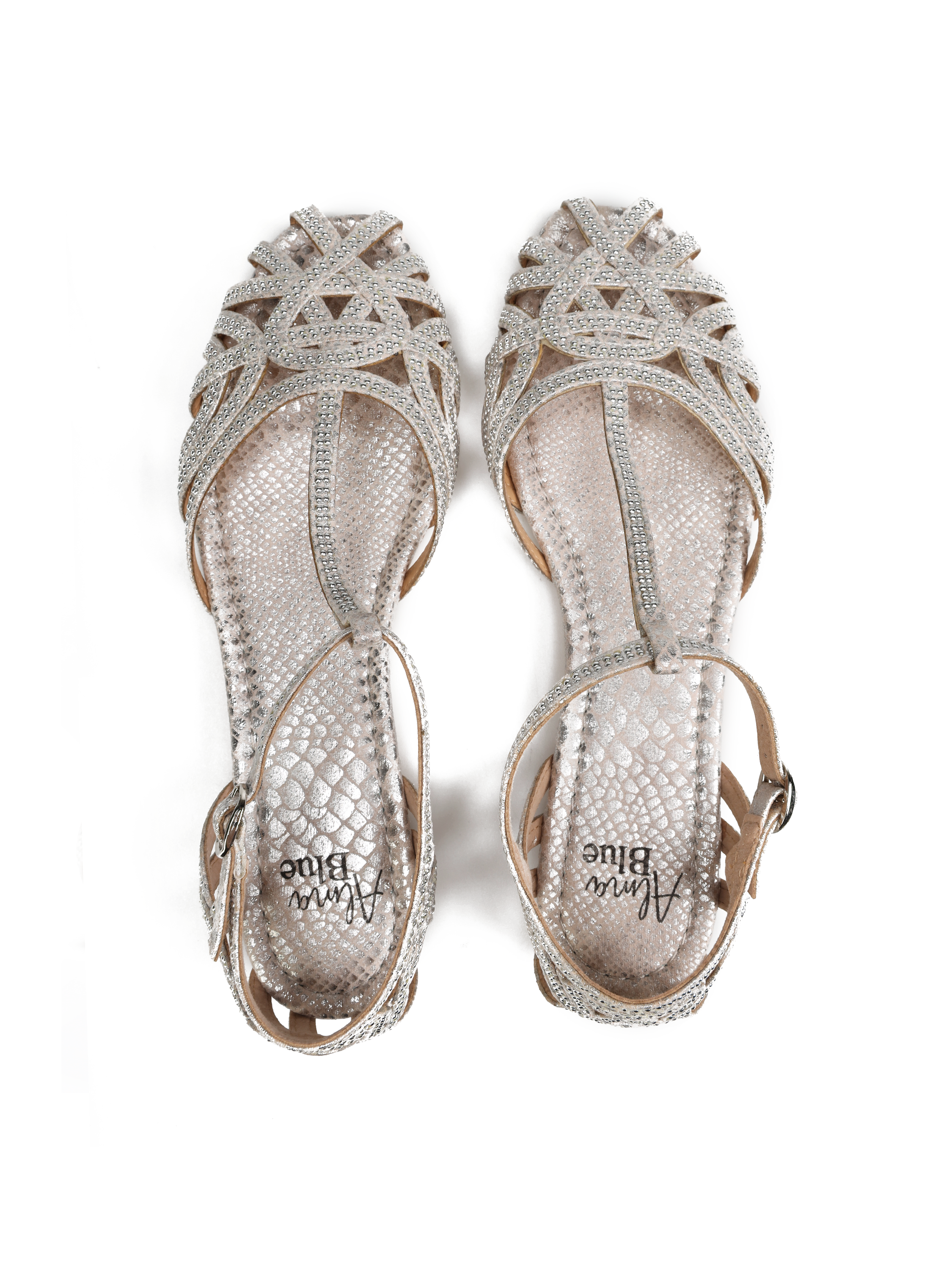 Sandały na płaskim obcasie to model dla kobiet szukjących modnych i wygodnych rozwiązań. W całości zbudowane z pasków pokrytych złotymi dżetami. Miękkie, lekkie, wygodne.  Zapinane regulowanym paskiem na sprzączkę, dopasują się do Twojej stopy. Sandały damskie będą uzupełnieniem letniej garderoby kobiety.