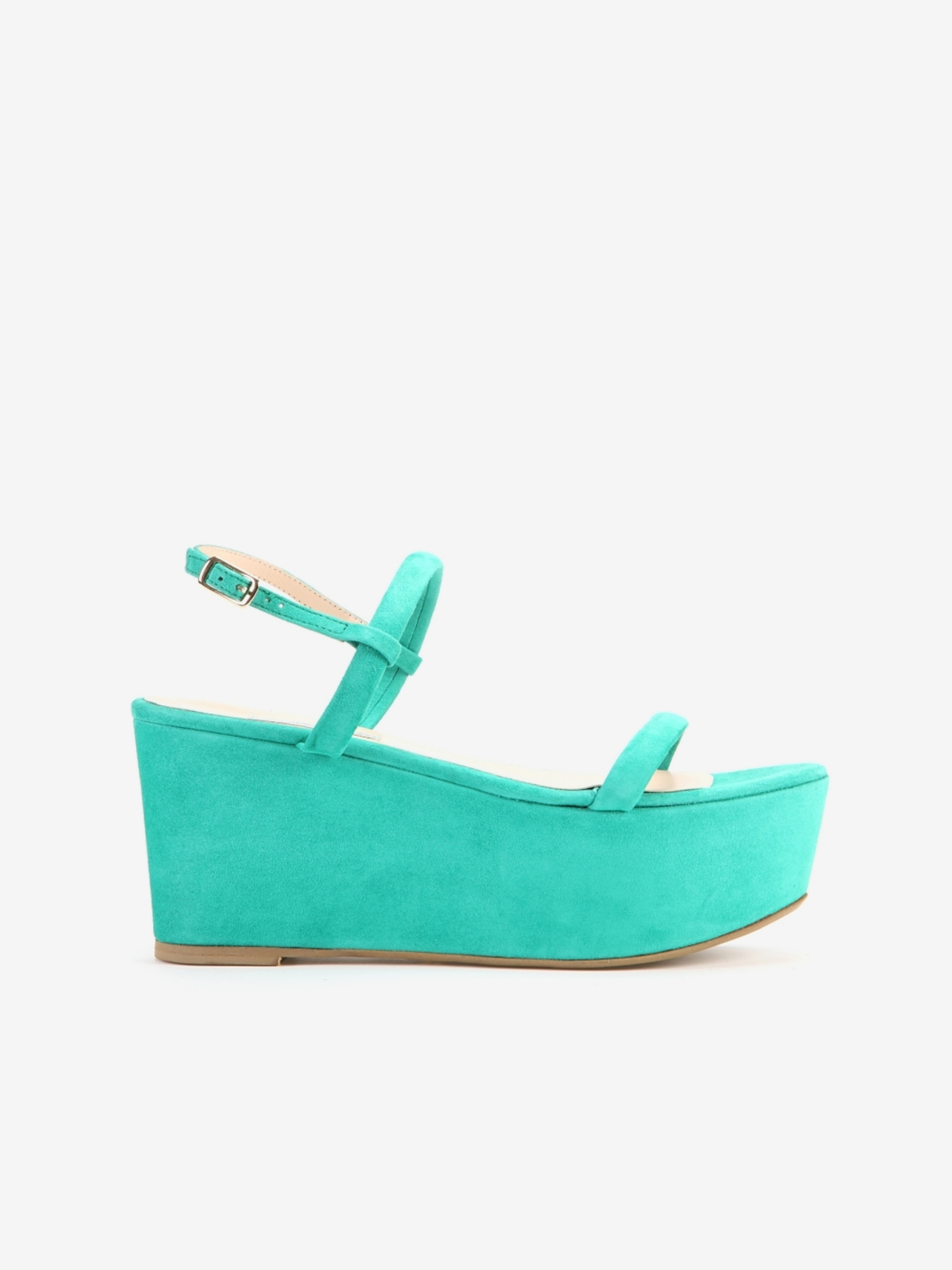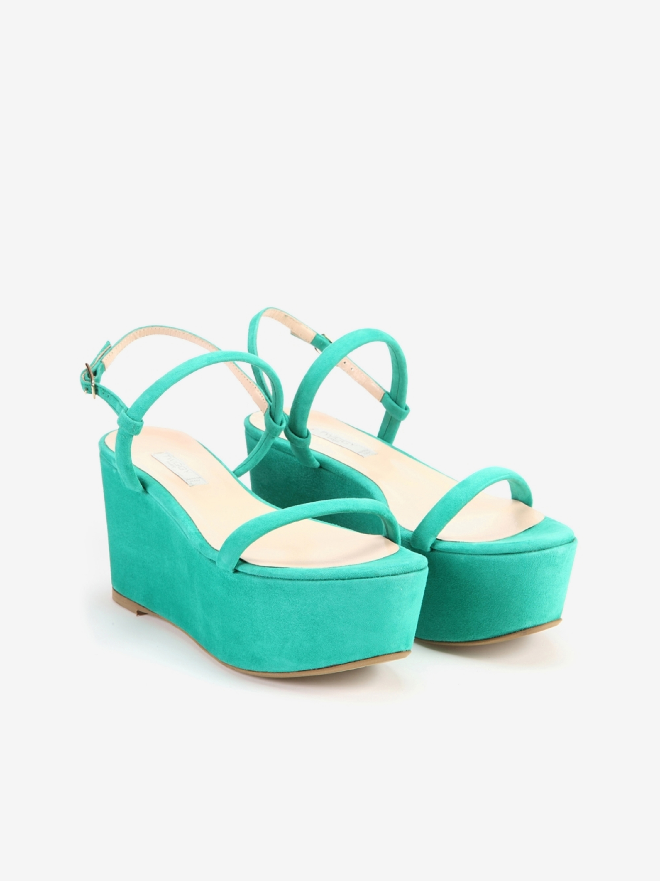 Sandał zwany żelazkiem :) wykonany z czarnego, eleganckiego zamszu na wysokiej platformie