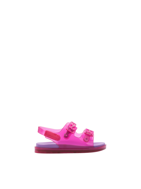 Sandały dziecięce z odkrytymi palcami wykonane są z kultowego tworzywa Mel-Flex, które pachnie gumą balonową. Materiał ten to mieszanka przetworzonego plastiku i kauczuku. Łatwo zachować go w czystości, a jego elastyczność sprawia, że doskonale dopasowują się do stopy. Miękka, wygodna wkładka odpowiada za komfort chodzenia przez cały dzień. Wodoodporne, niezwykle lekkie, zapinane na regulowaną rzepę.