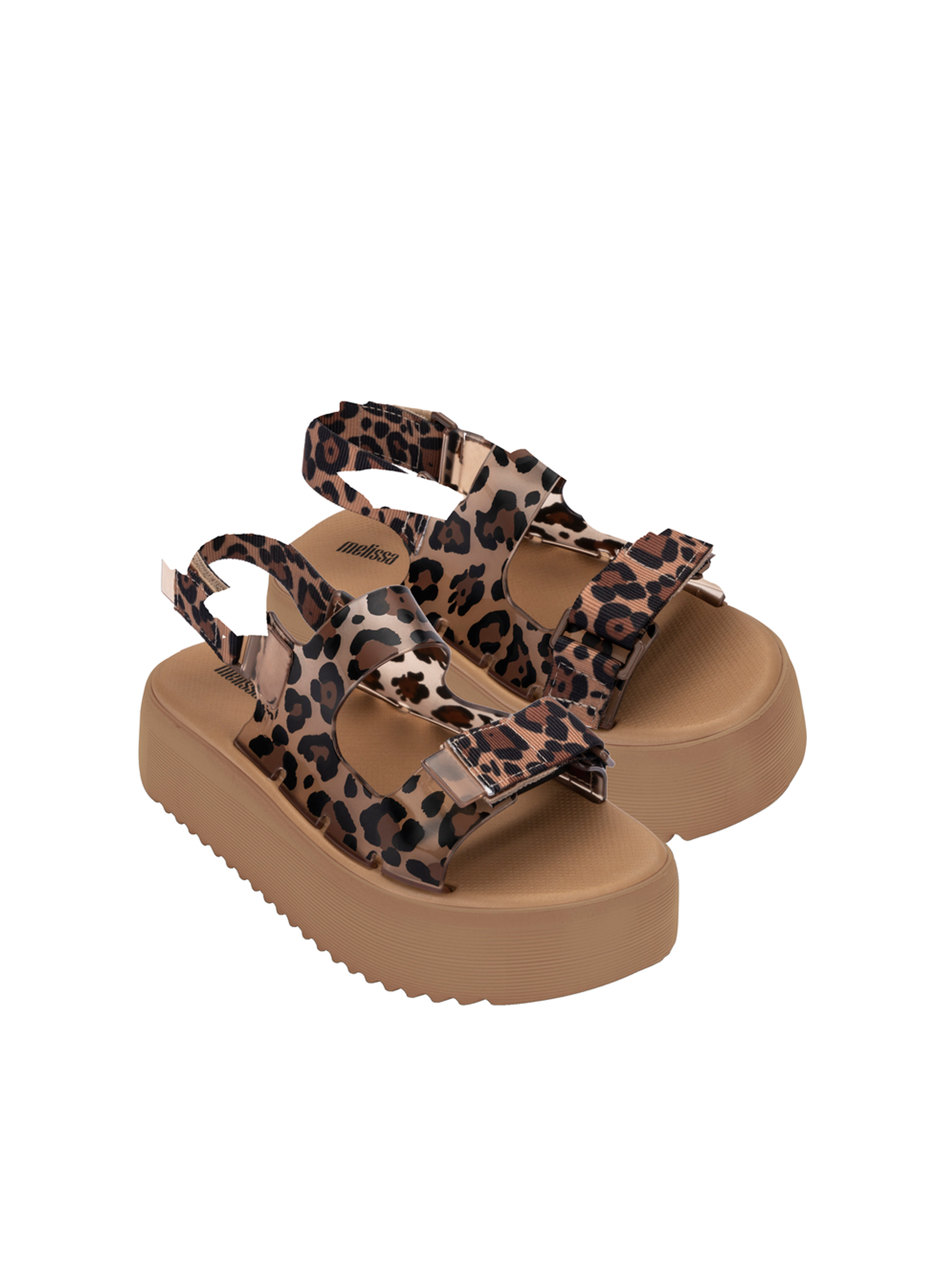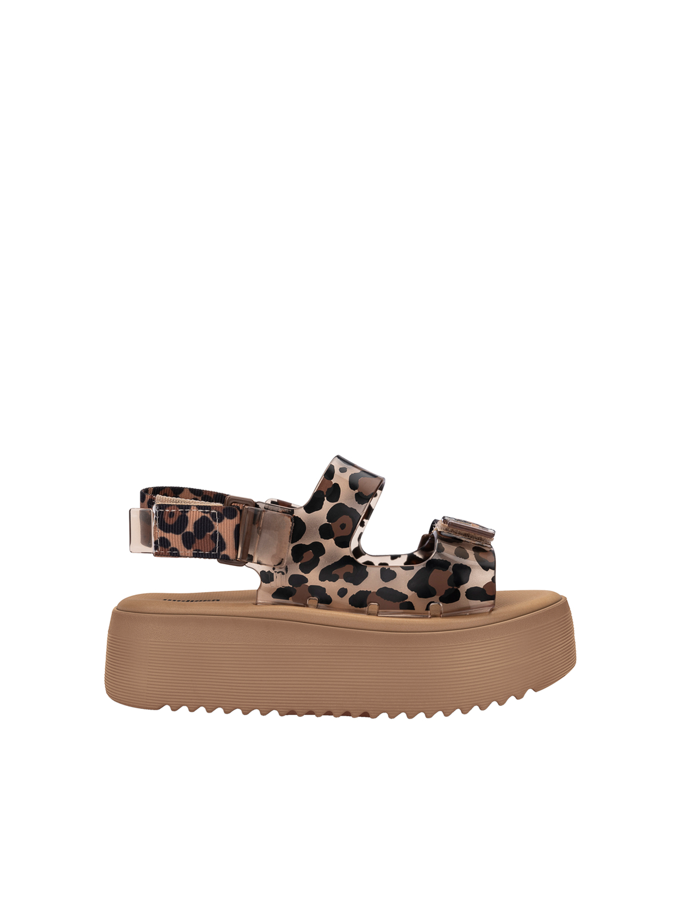 Sandały na platformie Melissa wykonane są z kultowego tworzywa Mel-Flex, które pachnie gumą balonową. Materiał ten to mieszanka przetworzonego plastiku i kauczuku. Łatwo zachować go w czystości, a jego elastyczność sprawia, że doskonale dopasowują się do stopy. Zapinane na regulowany pasek. Wygodna wkładka oraz stabilna podeszwa odpowiada za komfort chodzenia przez cały dzień. Wodoodporne, posiadają najmodniejszy w tym sezonie zwierzęcy print. Będą uzupełnieniem letnich stylizacji.