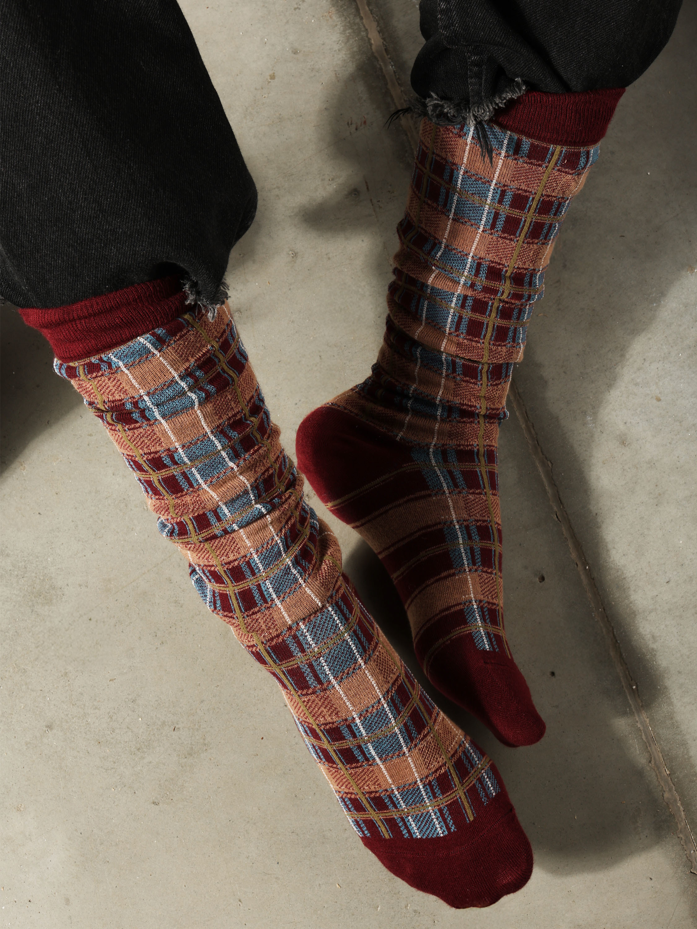 Nr produktu: PODKOLANÓWKI W KRATKĘ BORDOWY/BEŻOWY