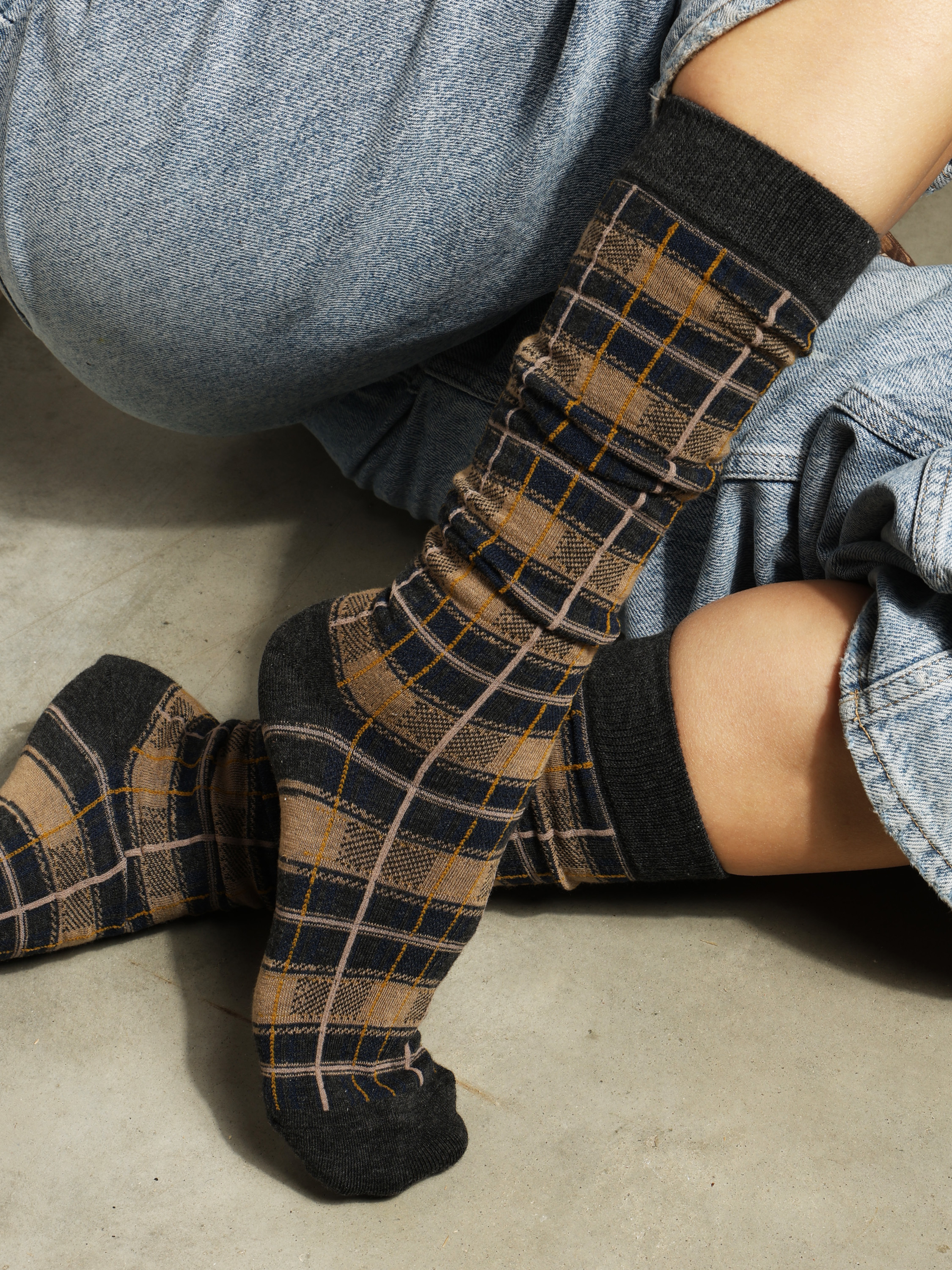 Nr produktu: PODKOLANÓWKI W KRATKĘ SZARY/BEŻOWY