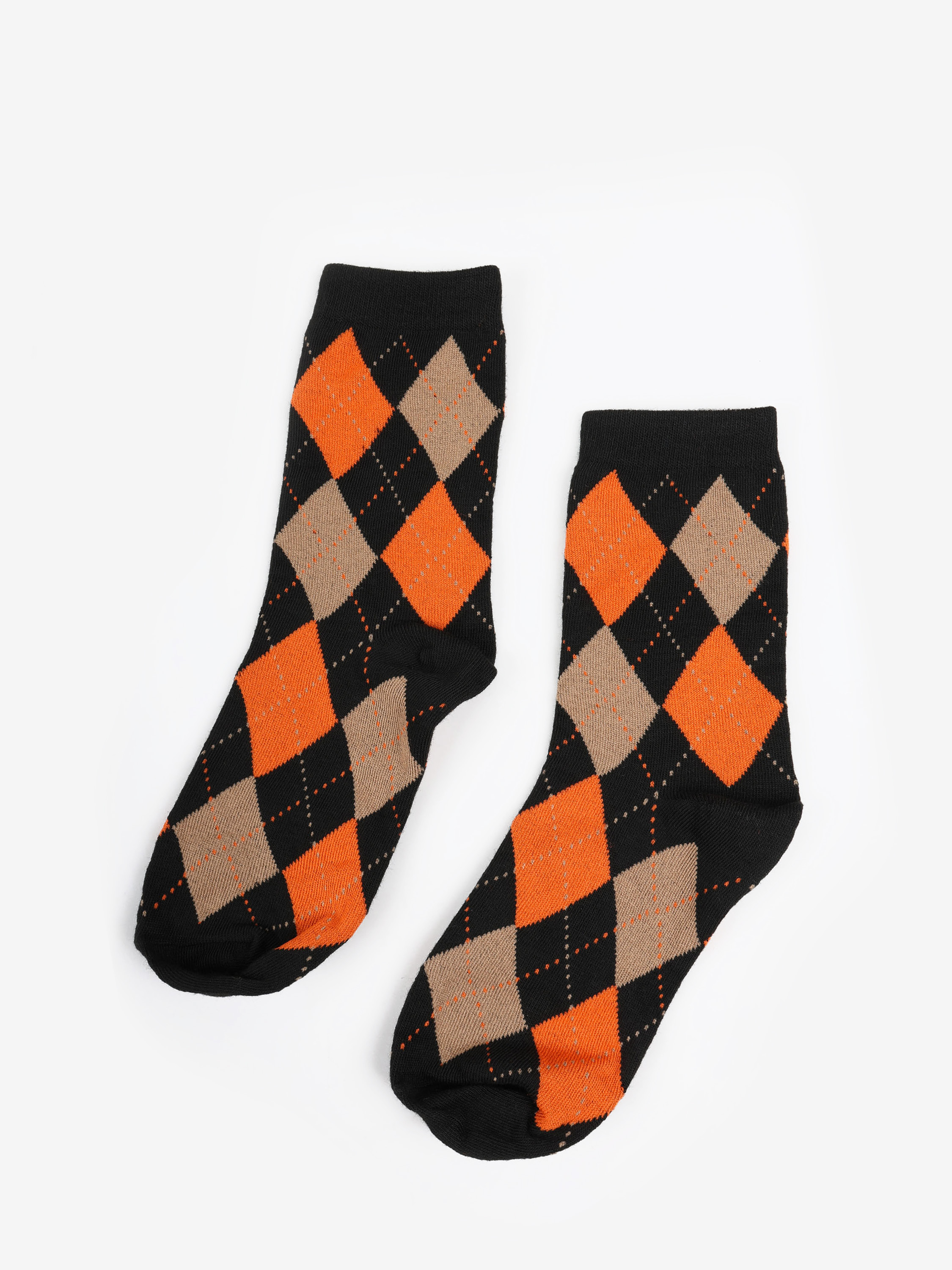 Nr produktu: SKARPETKI W ROMBY CZARNY/POMARAŃCZOWY