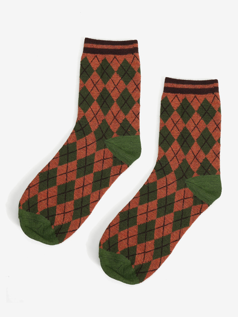 SKARPETKI W ROMBY ZIELONY/RUDY
