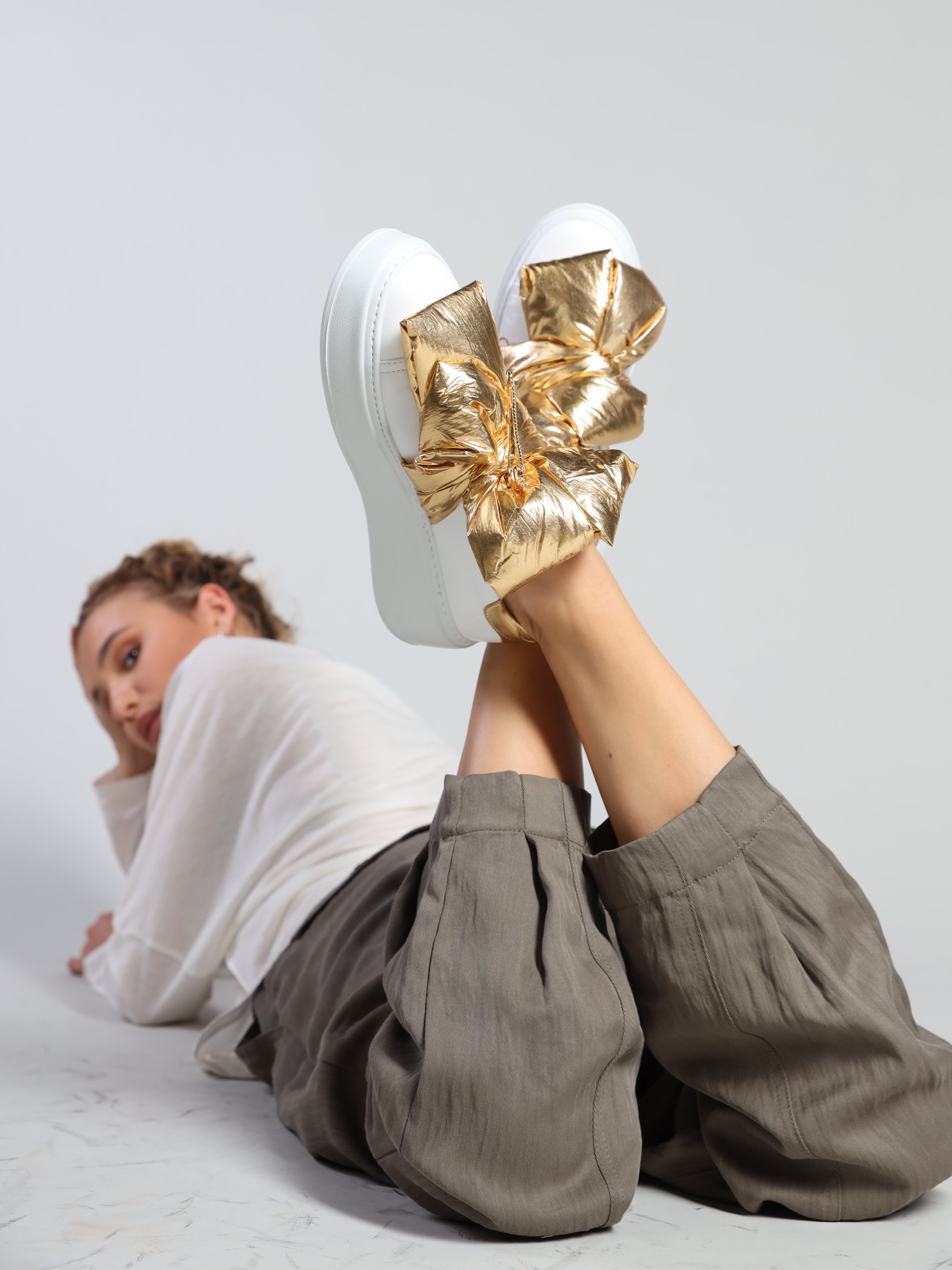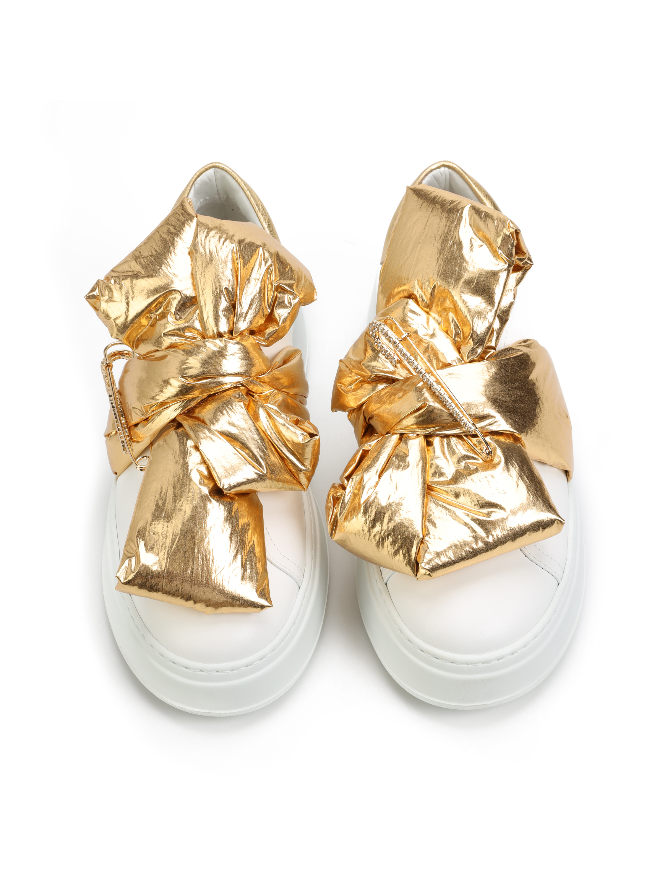 Sneakersy na platformie GIO+ to połączenie eleganckiego i sportowego stylu. Wykonane z włoskiej naturalnej skóry. Klasyczny fason uzupełniony został o charakterystyczną kokardę na przodzie. To model dla kobiet kochających modę i swobodny styl.
