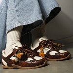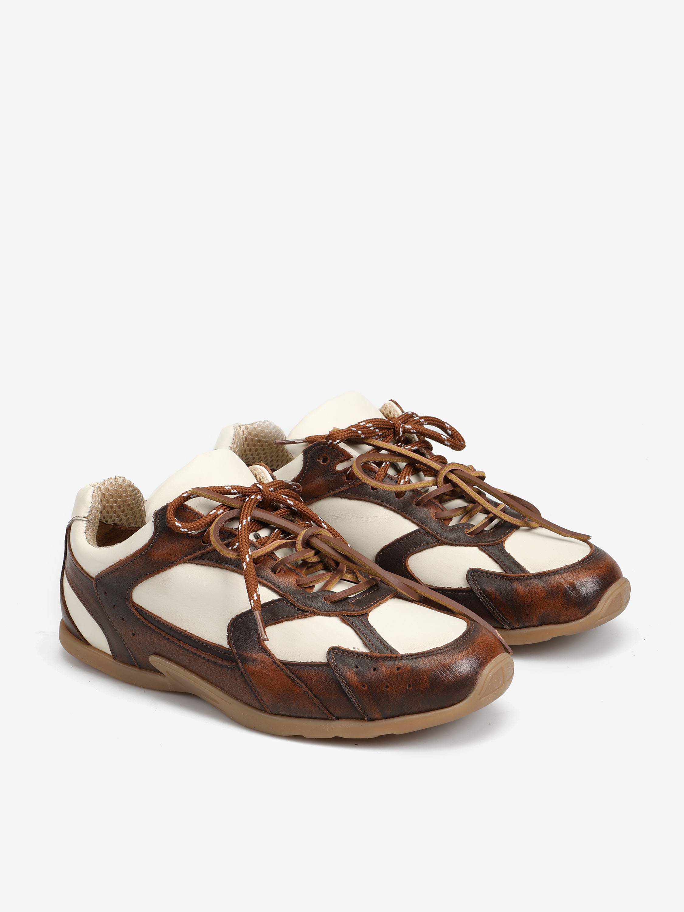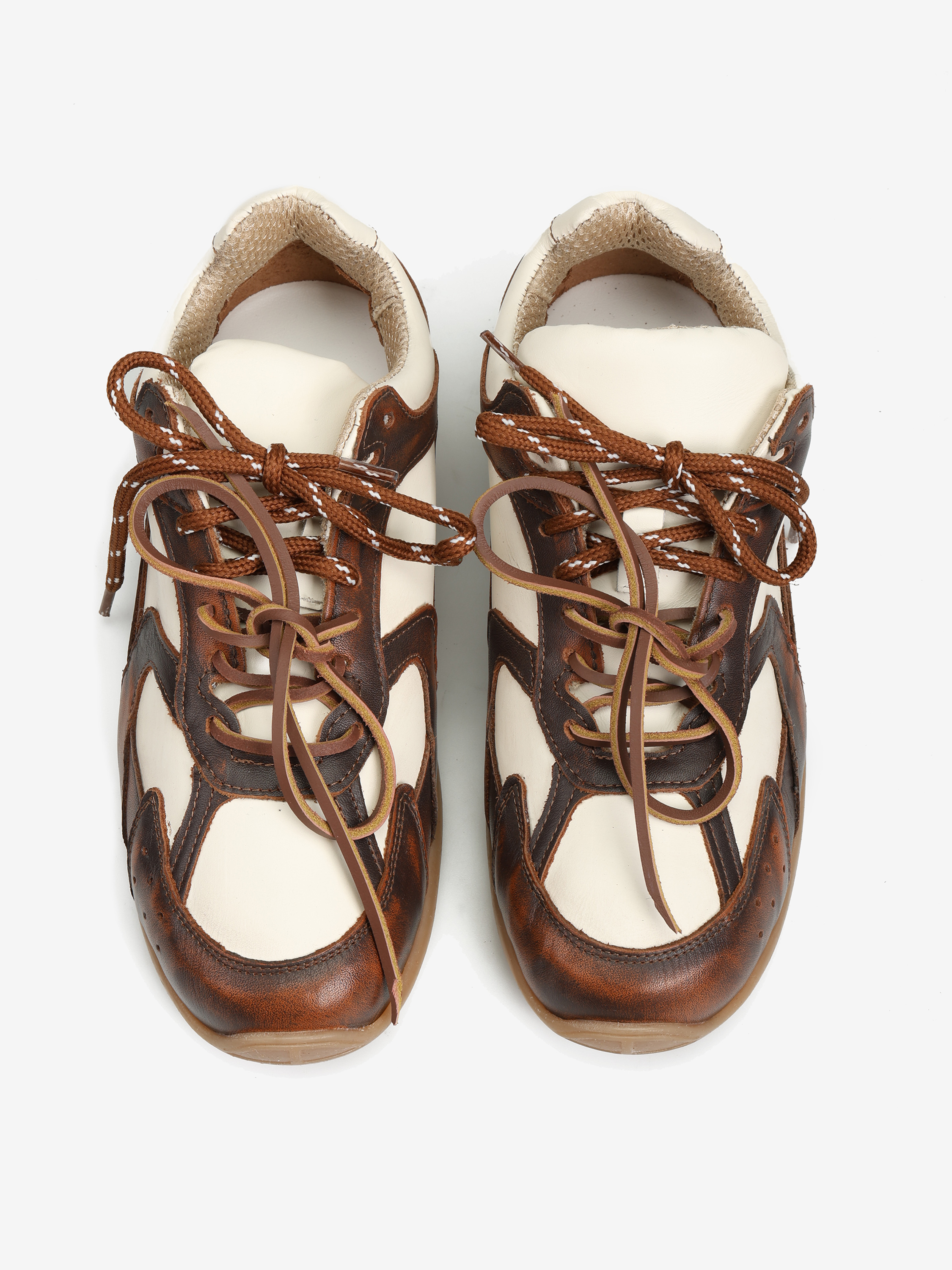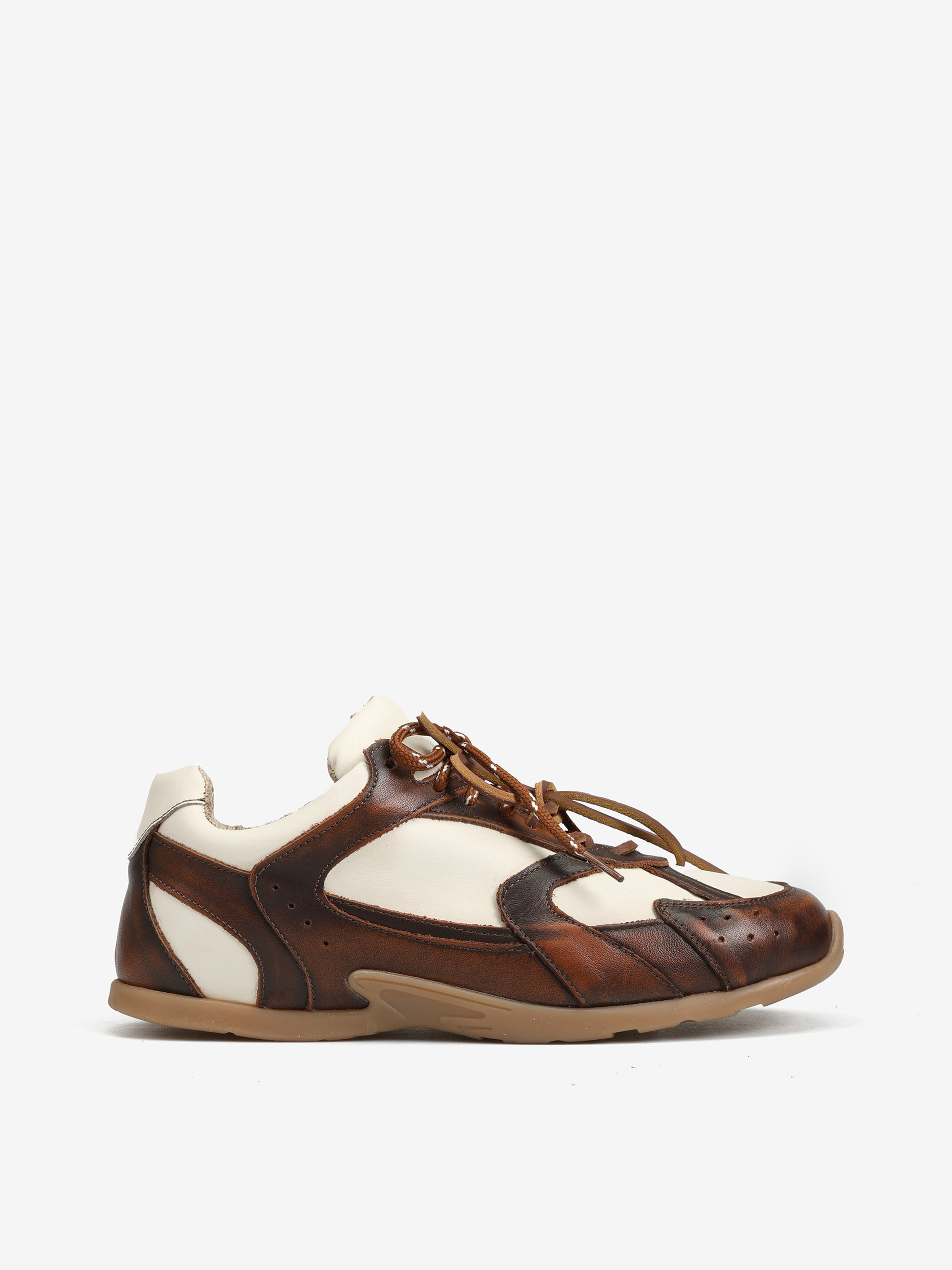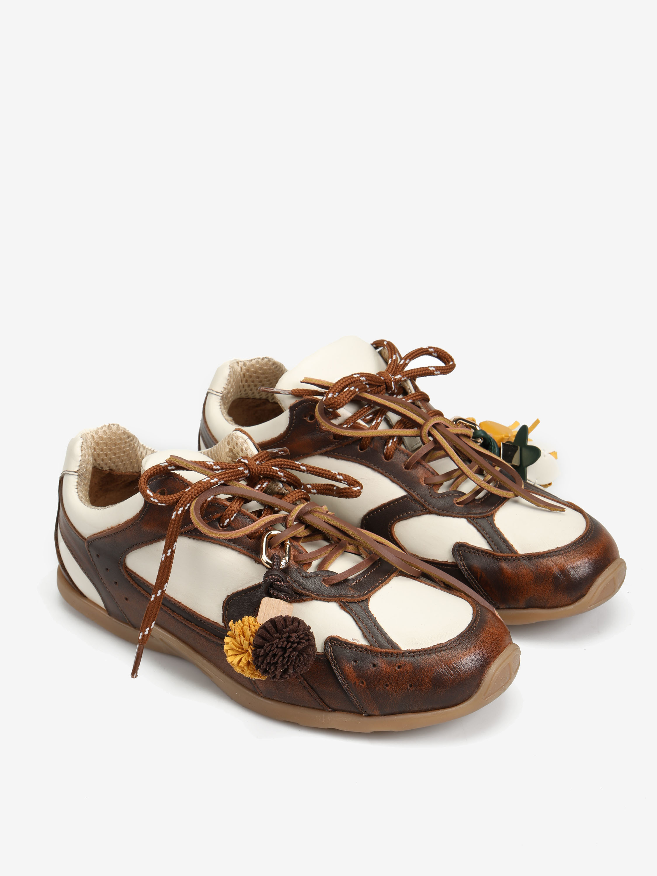 Dwukolorowe, skórzane sneakersy z przeszyciami, wiązane na rzemyk. W komplecie druga para sznurowadeł. Zawieszki dostępne oddzielnie.