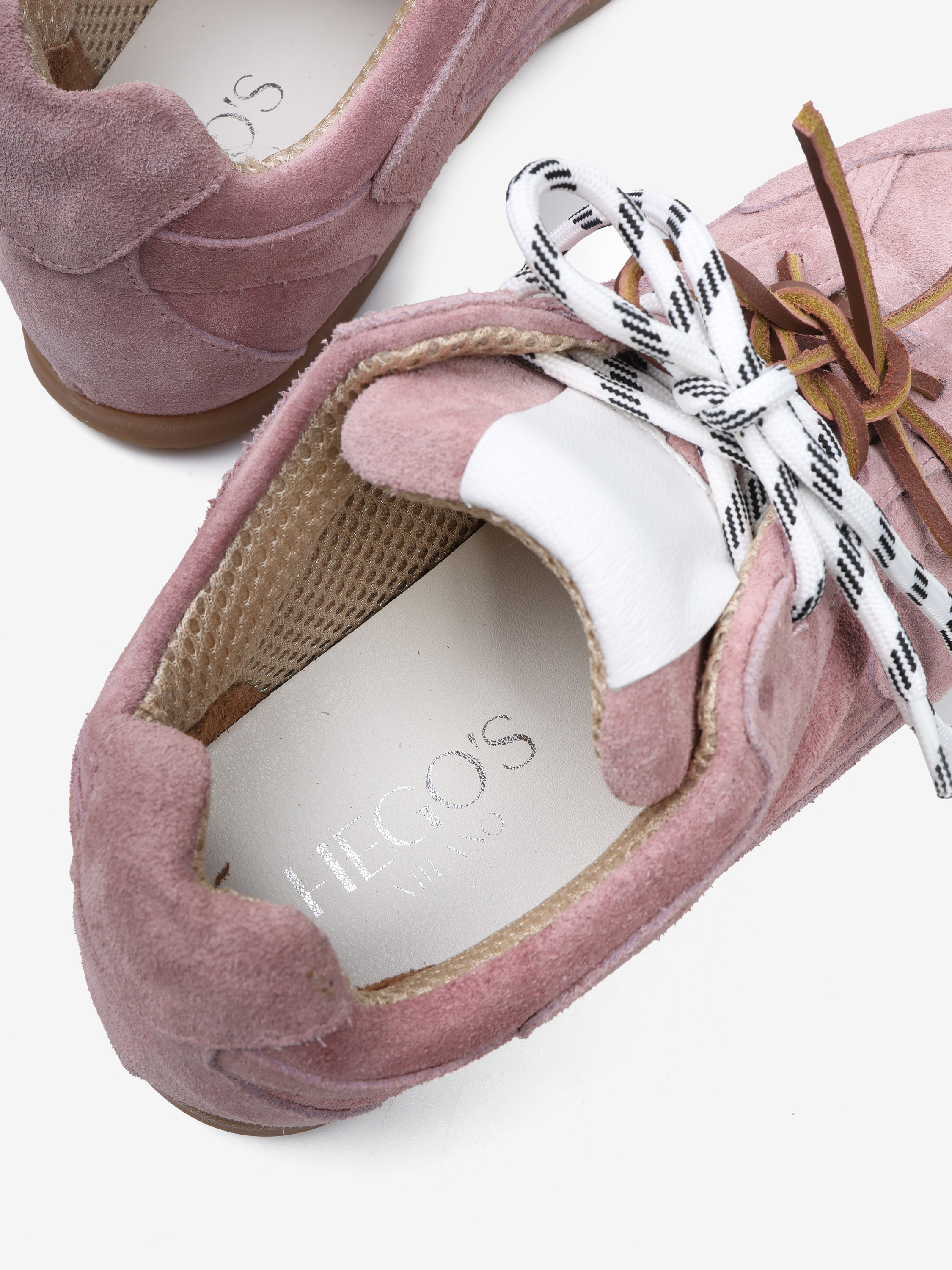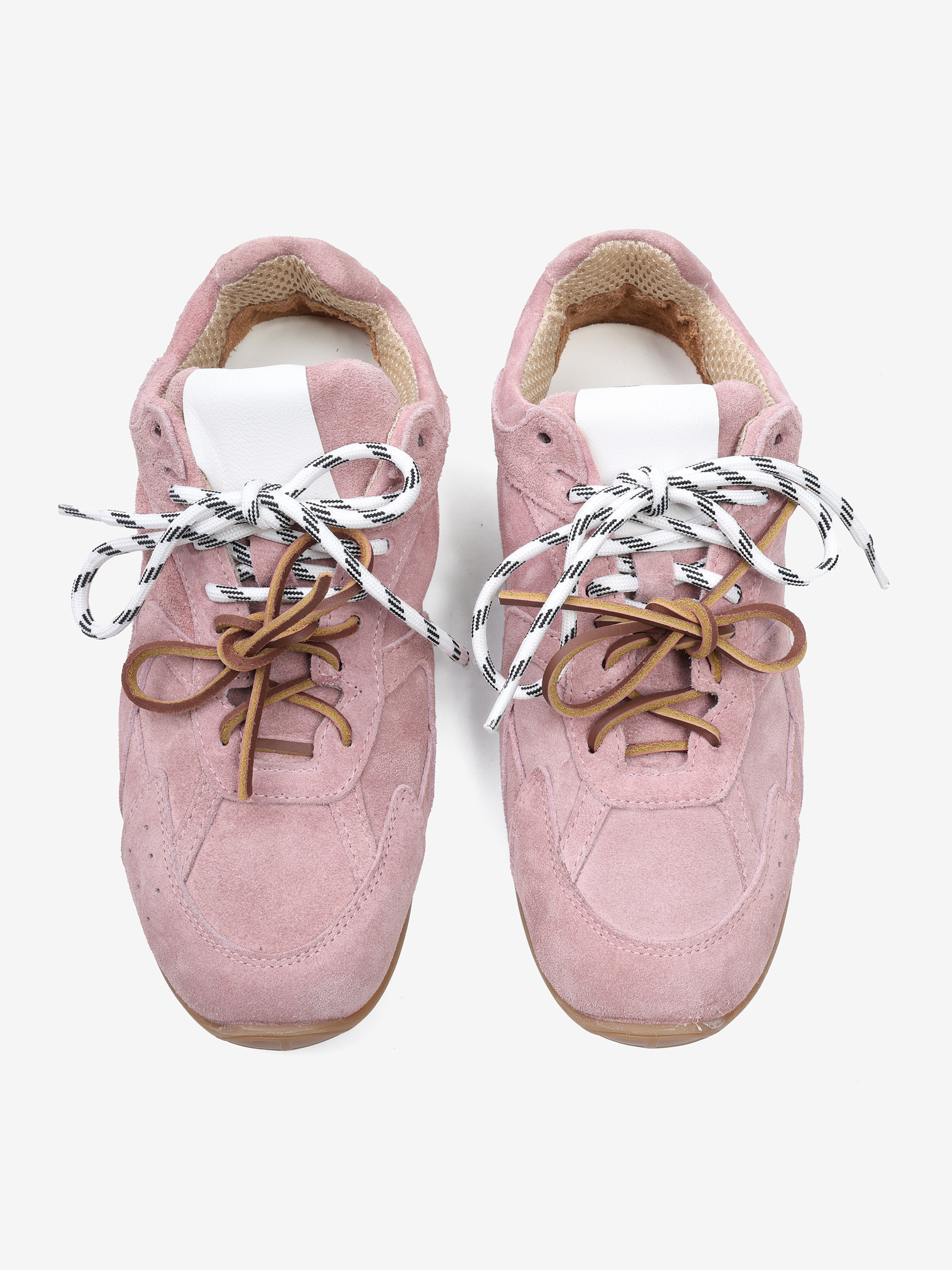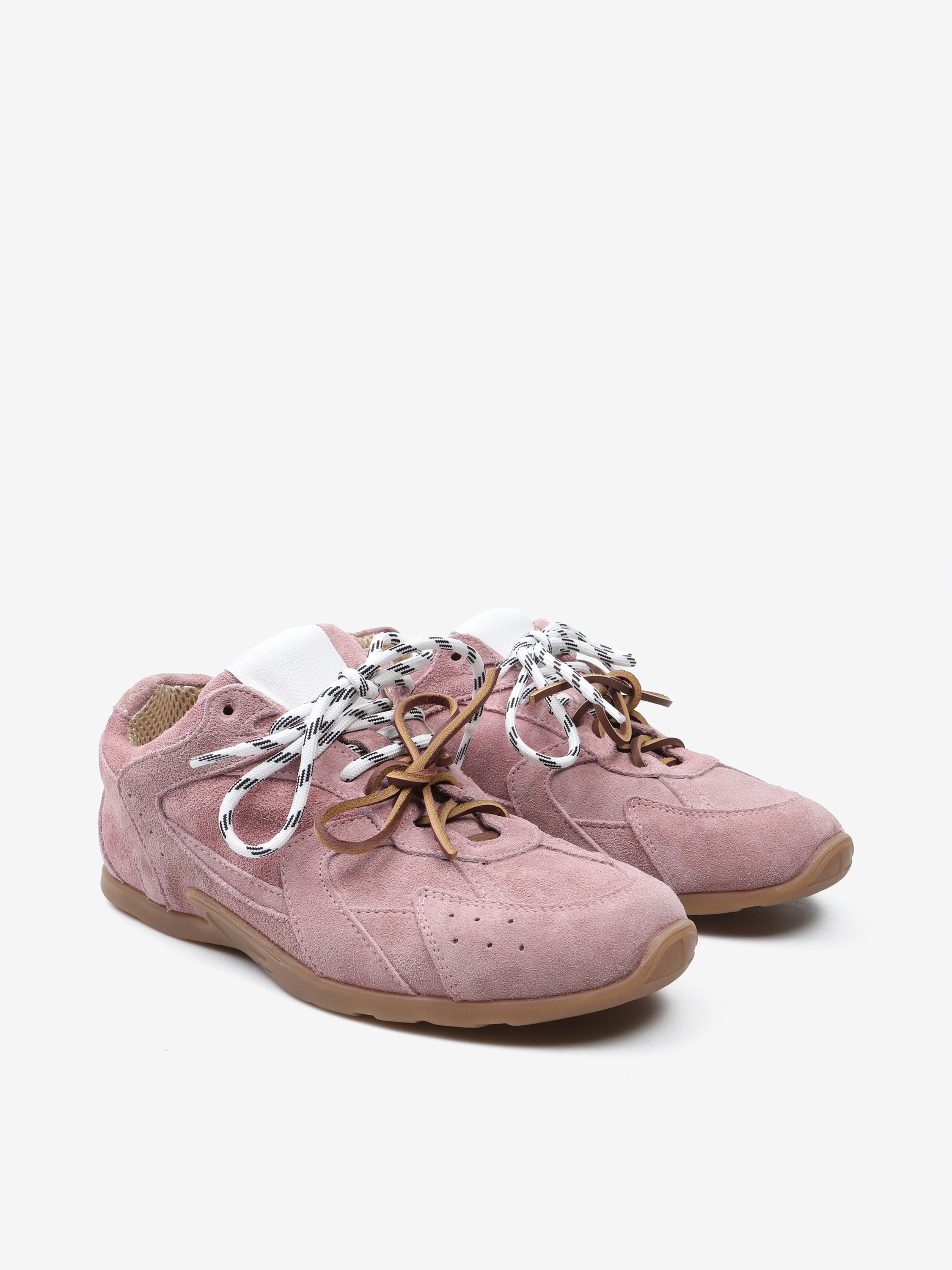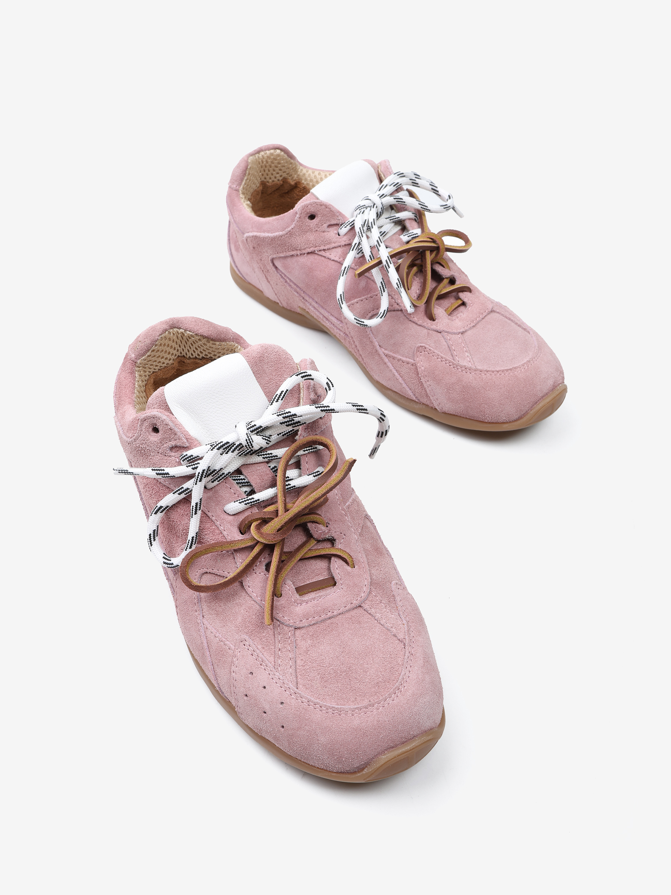 Zamszowe sneakersy z przeszyciami, wiązane na rzemyk. W komplecie druga para sznurowadeł.