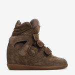 Zamszowe sneakersy z ukrytym koturnem (ok. 5 cm). Zapięcie na rzepy i miękki język ze skóry licowej.