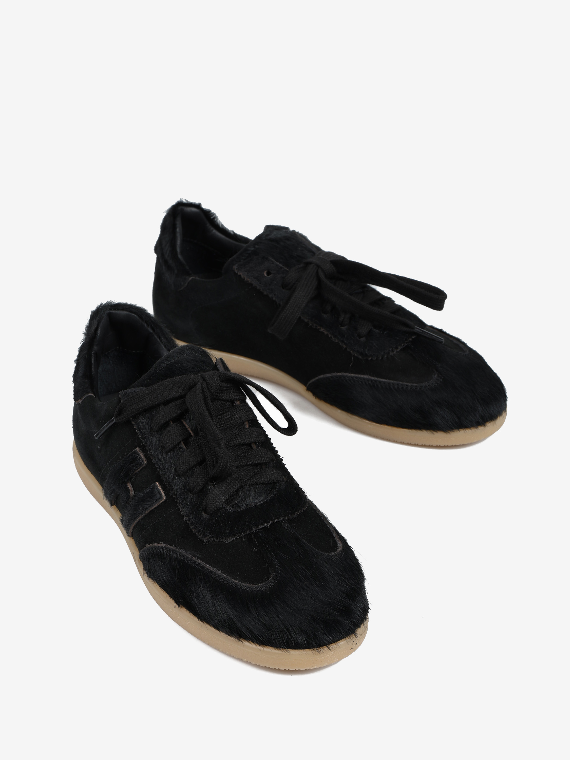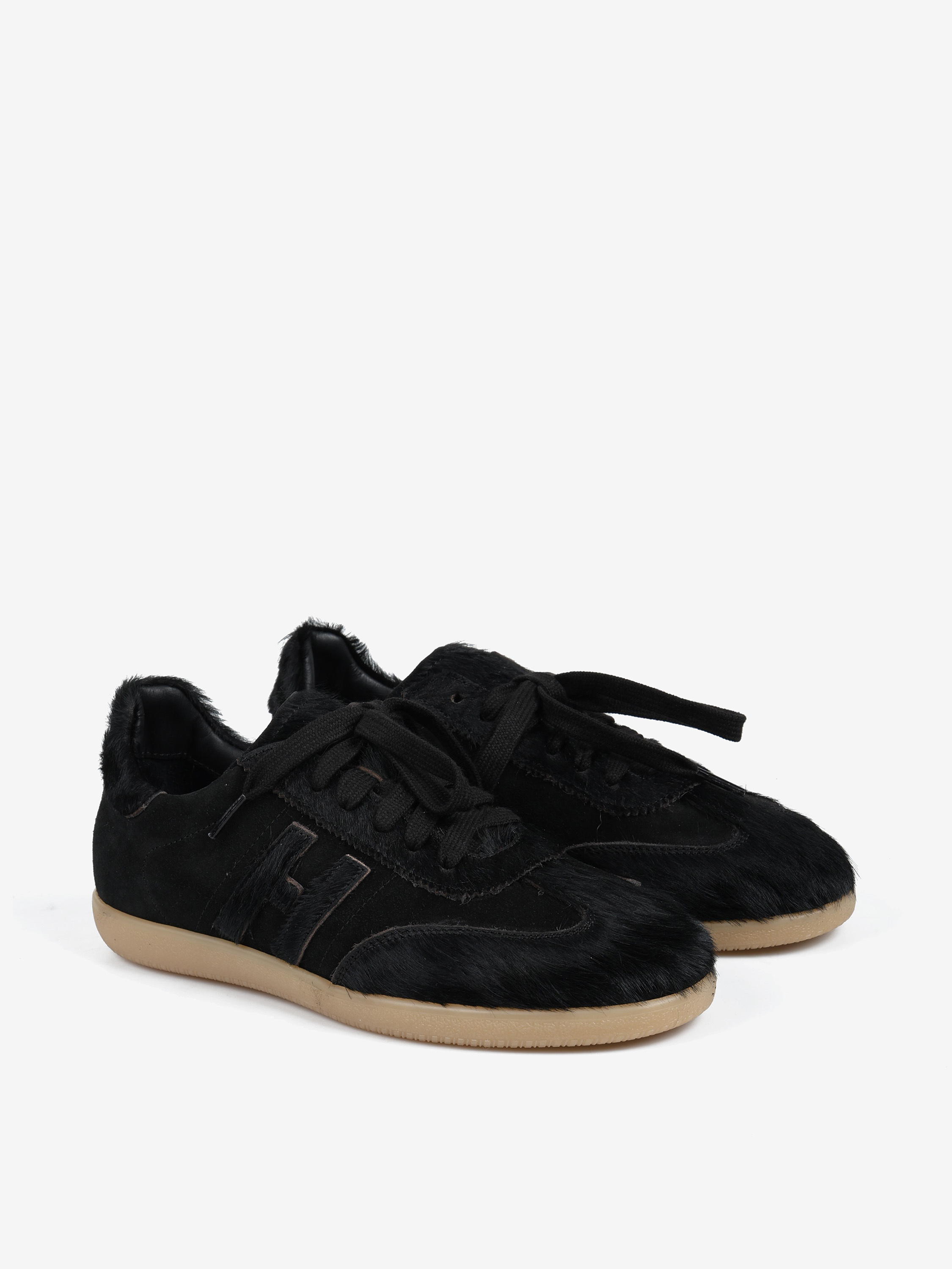 Autorskie sneakersy sygnowane literą H, wykonane z zamszu i naturalnej skóry z włosiem. Przywieszka dostępna oddzielnie.