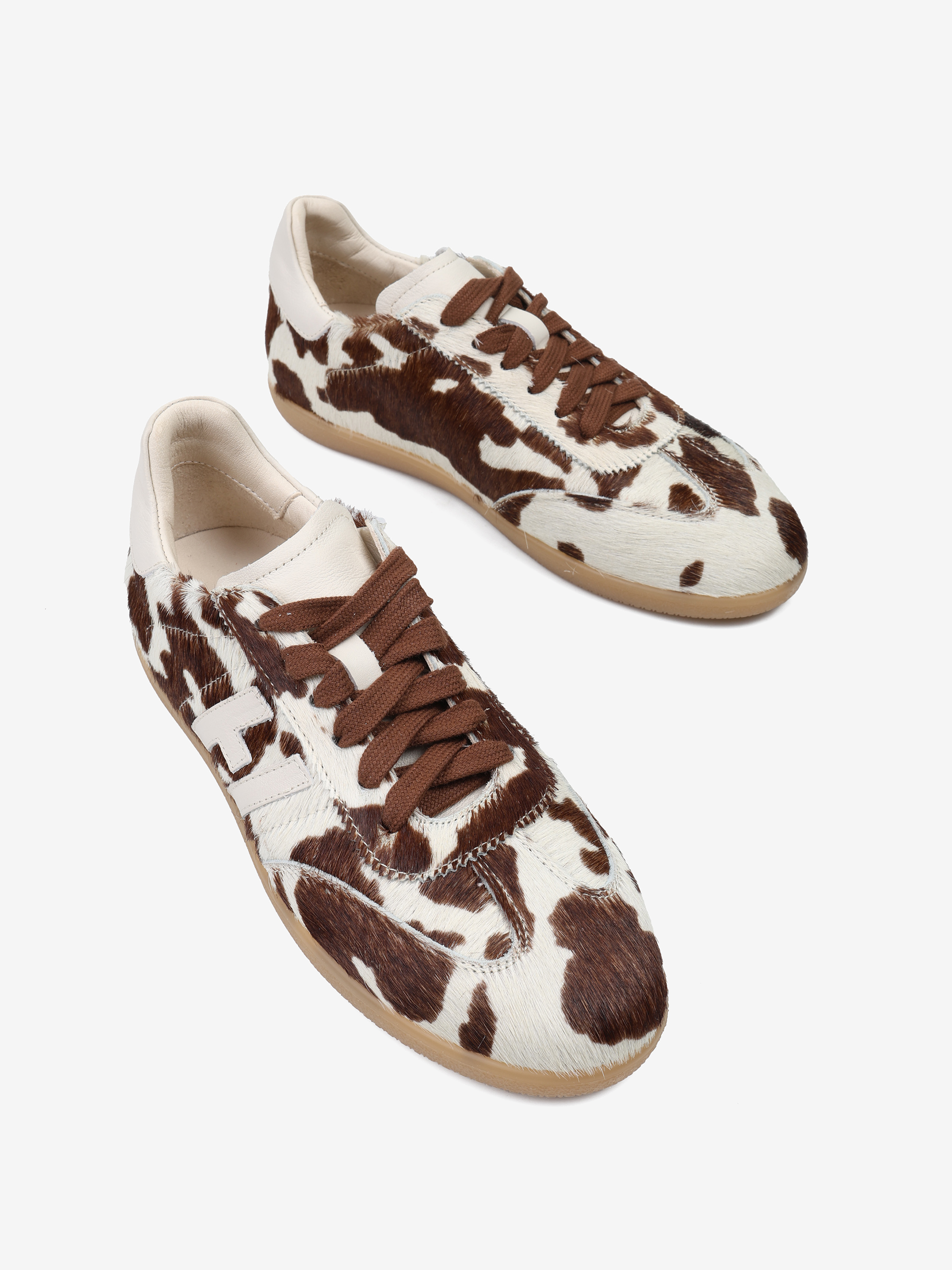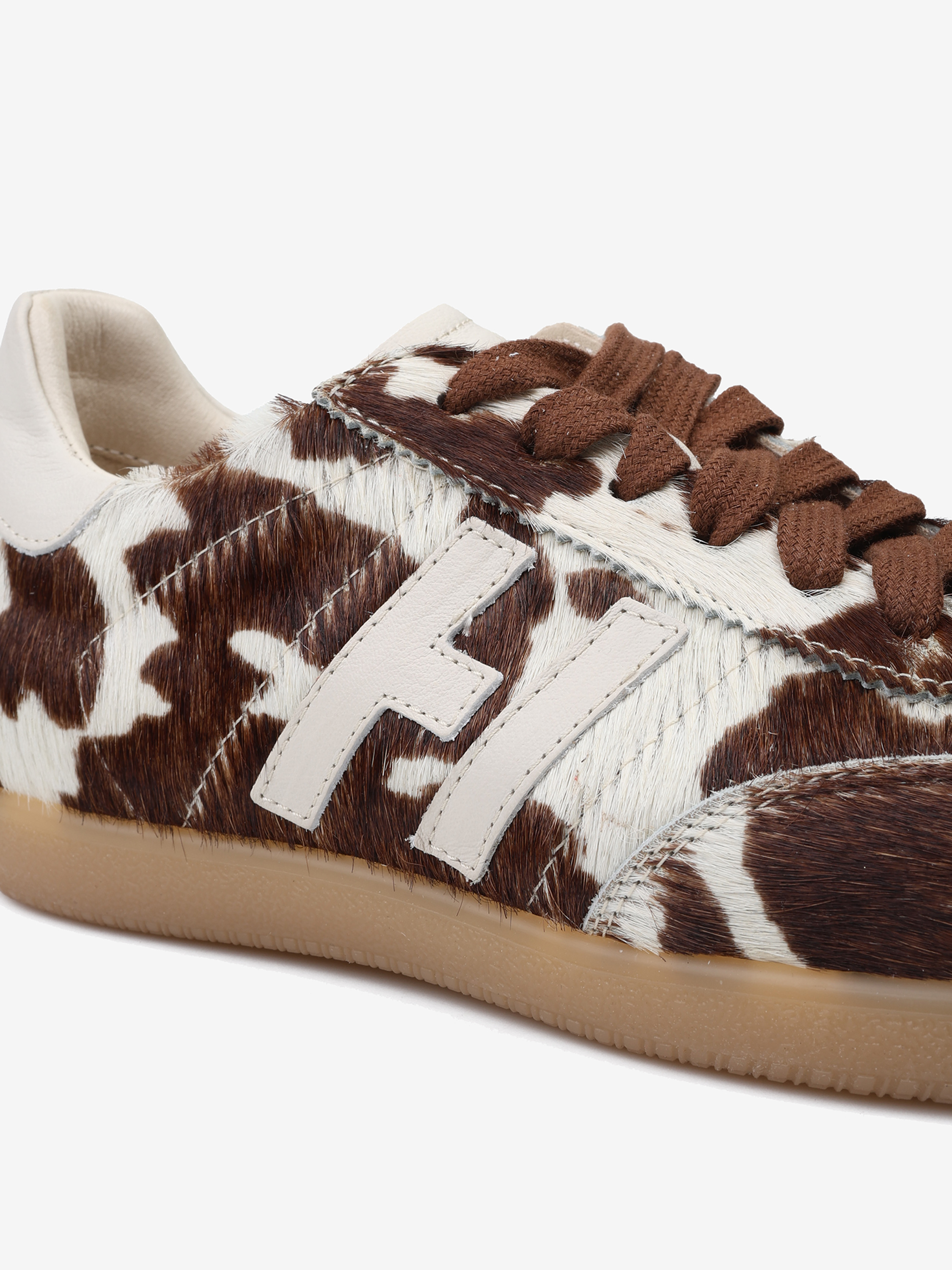 Autorskie sneakersy sygnowane literą H. Wykonane ze skóry naturalnej z włosiem i skóry licowej. Zaprojektowane i wyprodukowane we Włoszech.