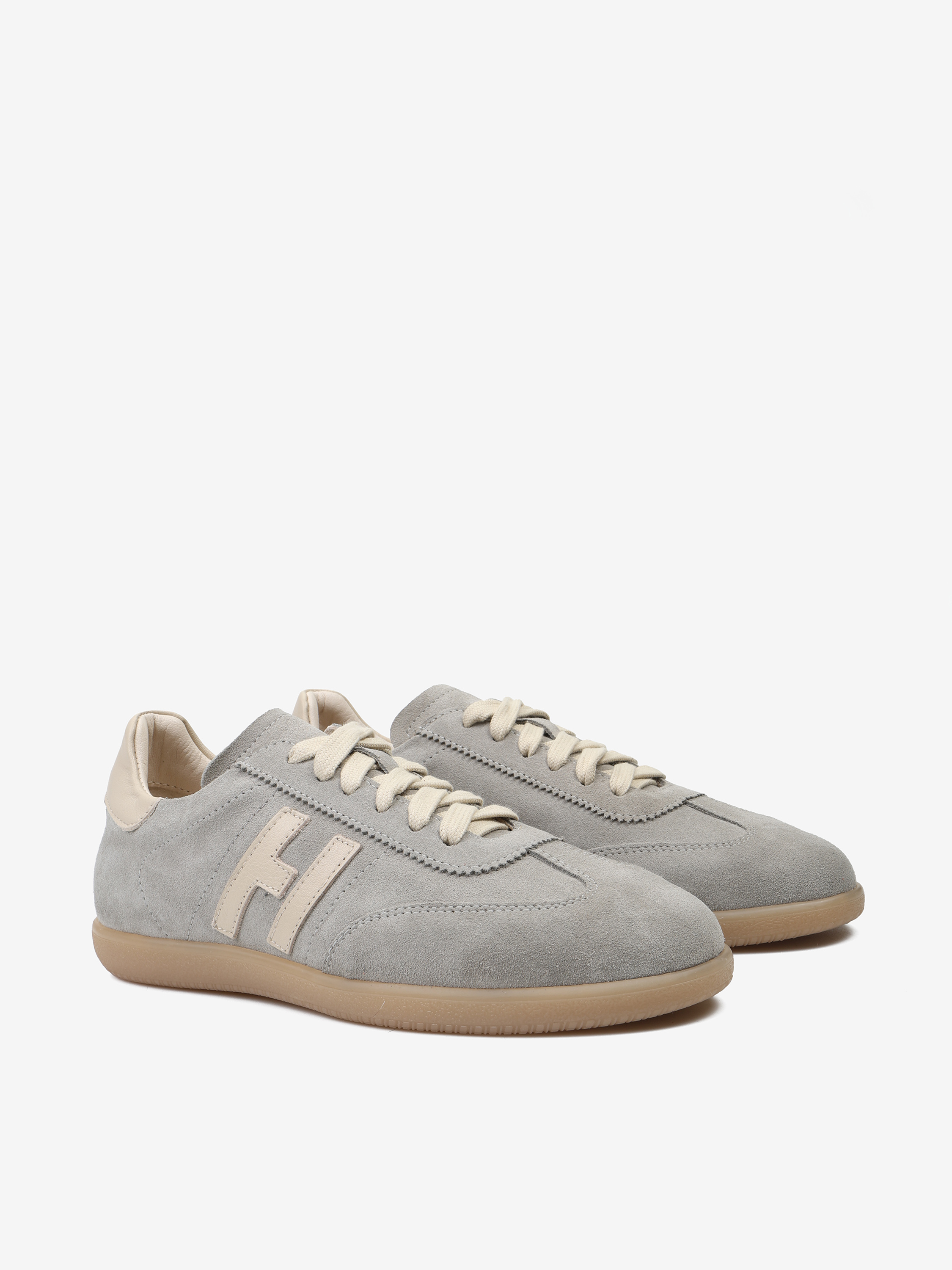 Autorskie sneakersy sygnowane literą H, wykonane z zamszu i skóry licowej. Zaprojektowane i wyprodukowane we Włoszech.