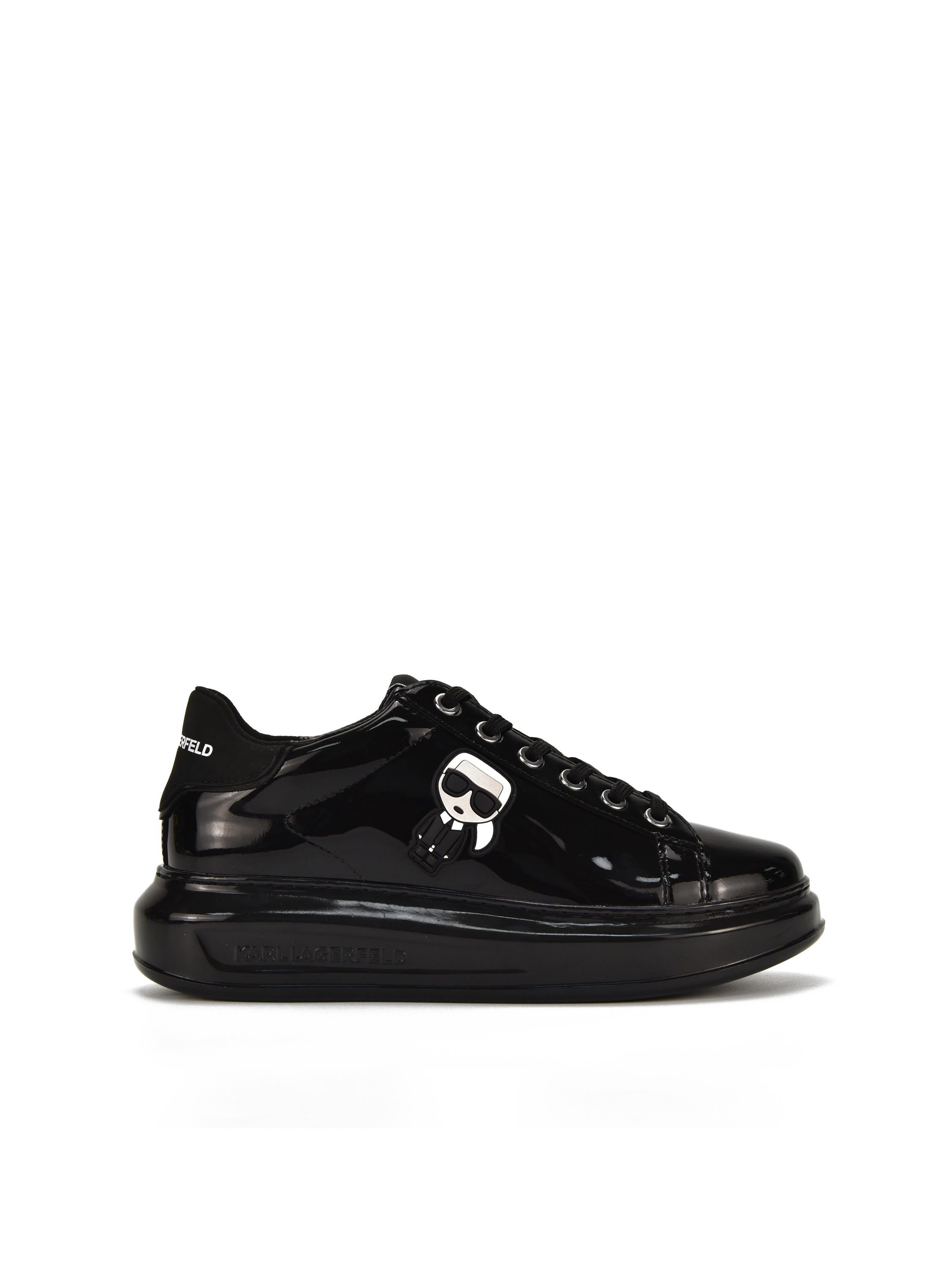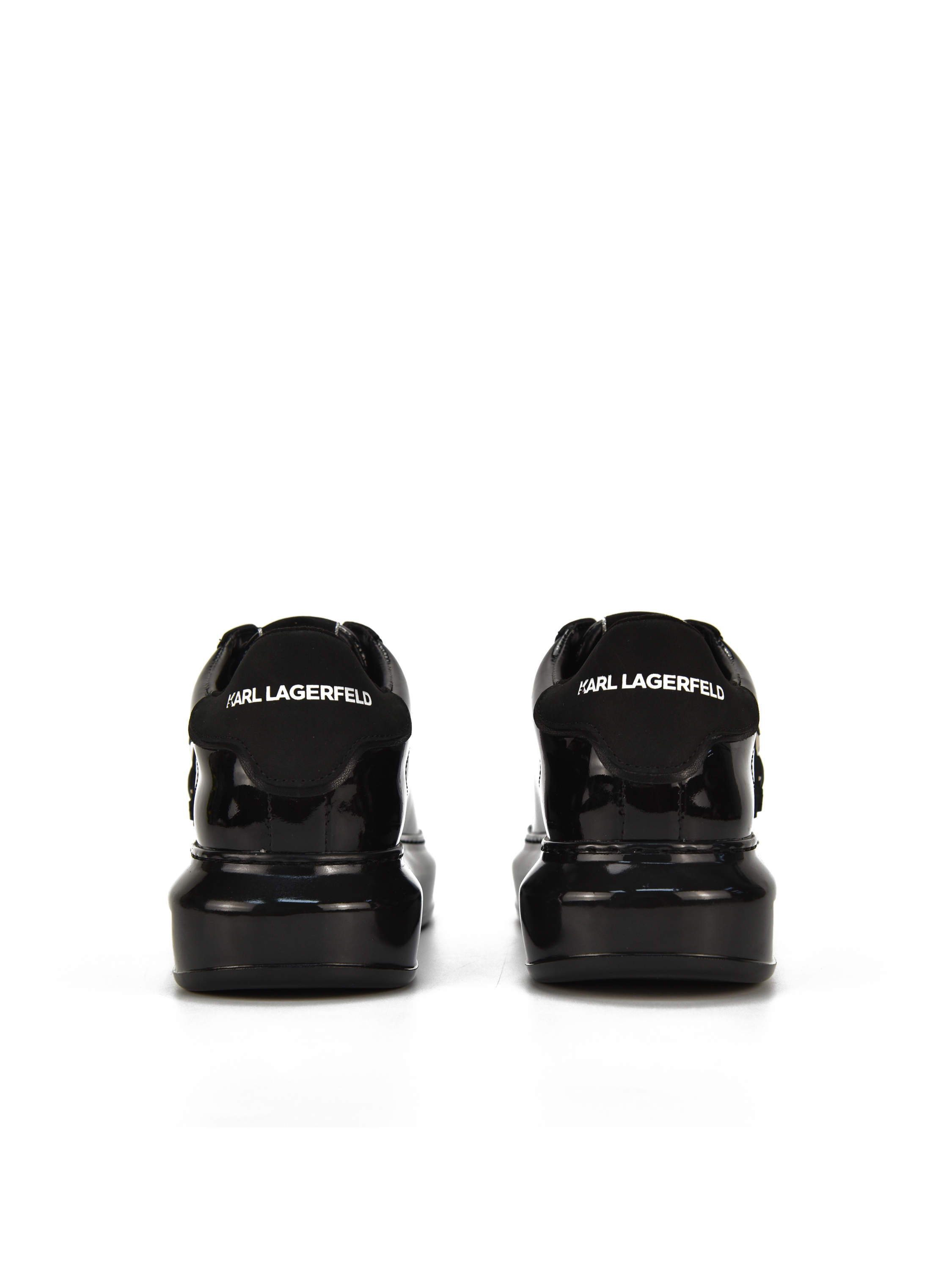 Sneakersy KARL LAGERFELD wykonane są z lakierowanej, naturalnej skóry. Podeszwa na platformie w połączeniu ze skórzaną wkładką odpowiadają za komfort noszenia obuwia. Lekkie i wygodne. Cholewka w klasycznym, czarnym kolorze z charakterystycznym logo marki.