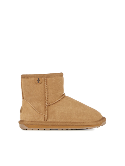 EMU Australia Wallaby Mini Teens to model wykonany najwyżej jakości skóry zamszowej. Wnętrze jest podszyte wełną z australijskich owiec merynosów o oddychających właściwościach. Warto zaimpregnować buty przed pierwszym spacerem preparatem do naturalnego zamszu i nubuku, dzięki temu będą odporne na zachlapania i wilgoć.Materiały użyte w modelu Wallaby Mini utrzymują stopy w cieple nawet przy temperaturze -30°C oraz chłodzą je w te cieplejsze. Ważną zaletą wełny jest to, że nie przegrzewa stóp, dając poczucie komfortu w każdej temperaturze. Skóra na pięcie jest specjalnie wyprofilowana dla lepszego wsparcia, dopasowania i utrwalenia fasonu.